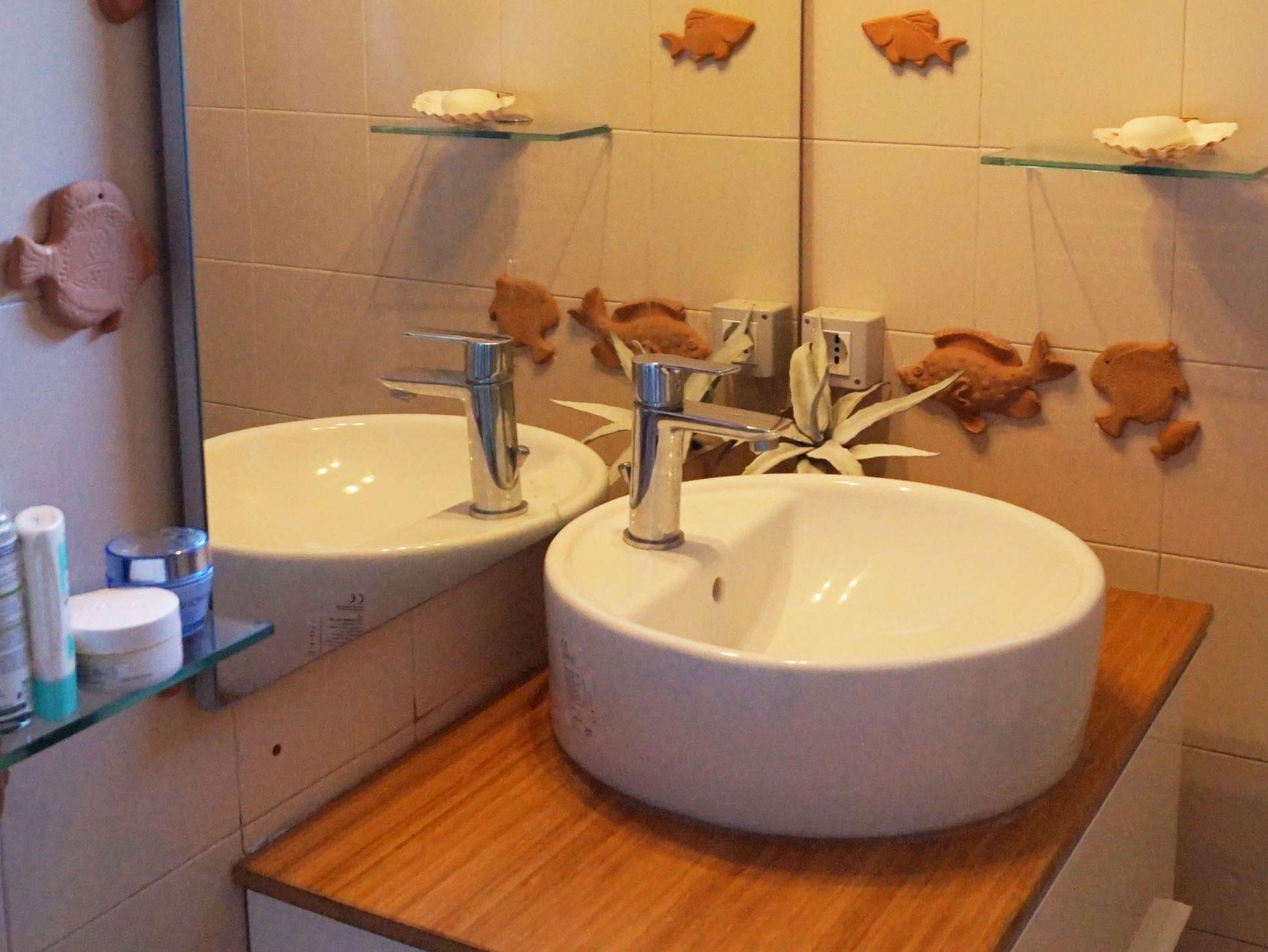 • Ein Bad mit Dusche, Waschmaschine und Wc
