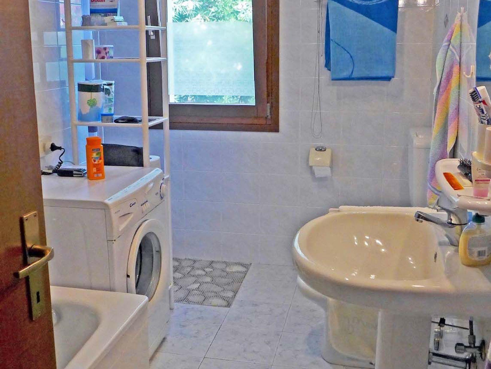 • Ein Bad mit Wanne, Waschmaschine, Bidet, Dusche und Wc