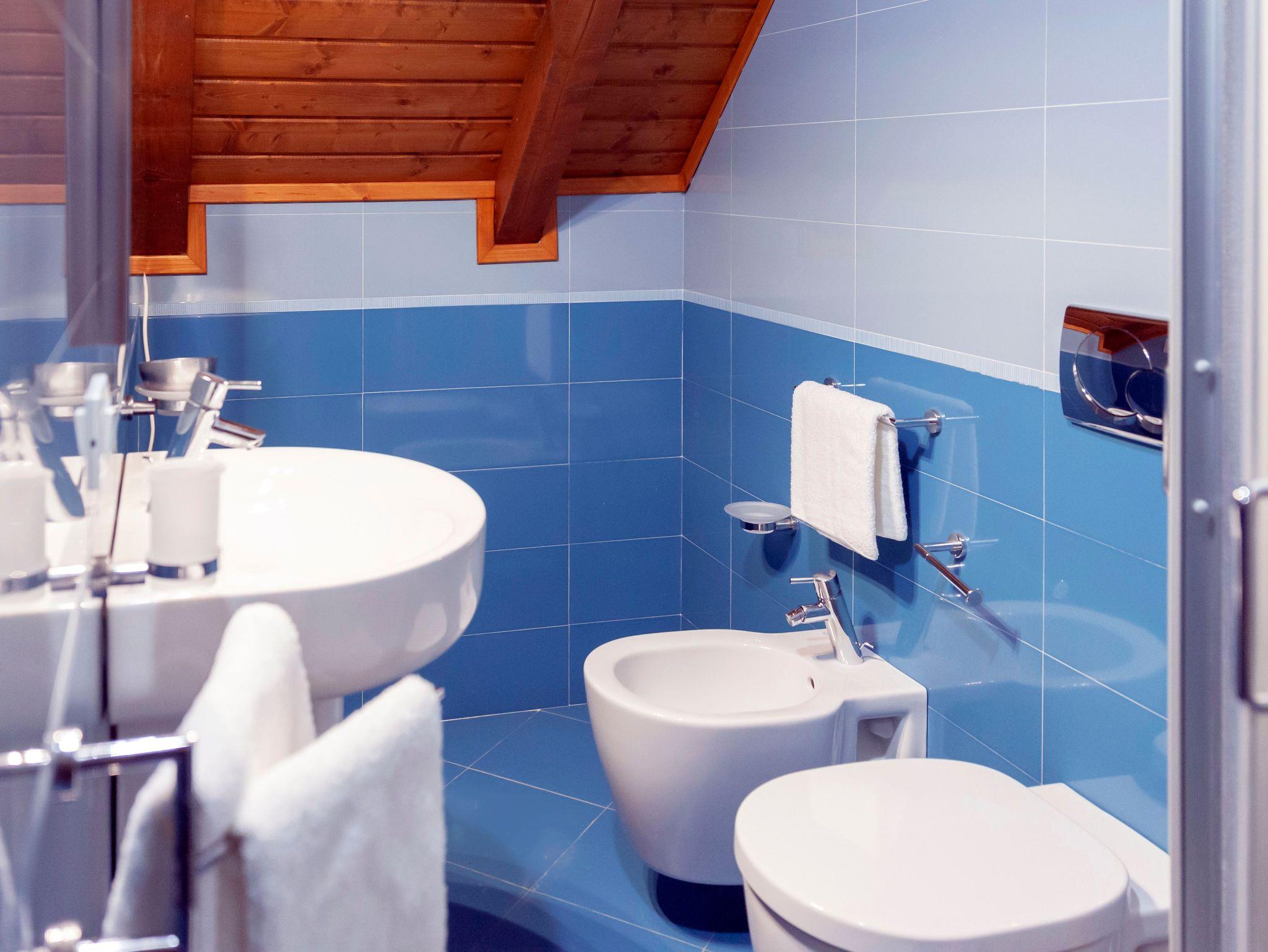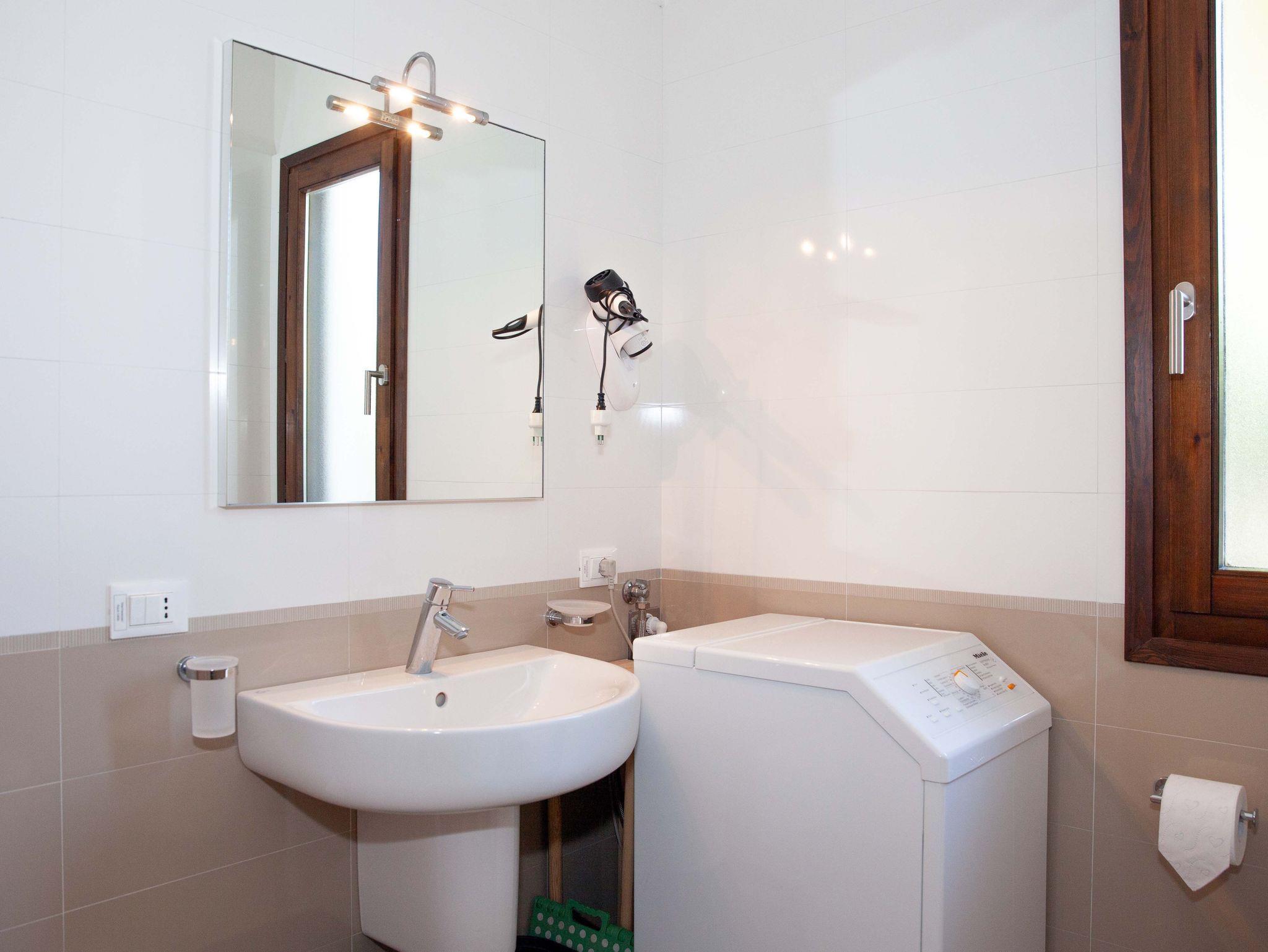 • En Bad mit Dusche, WC, Bidet und Waschmaschine