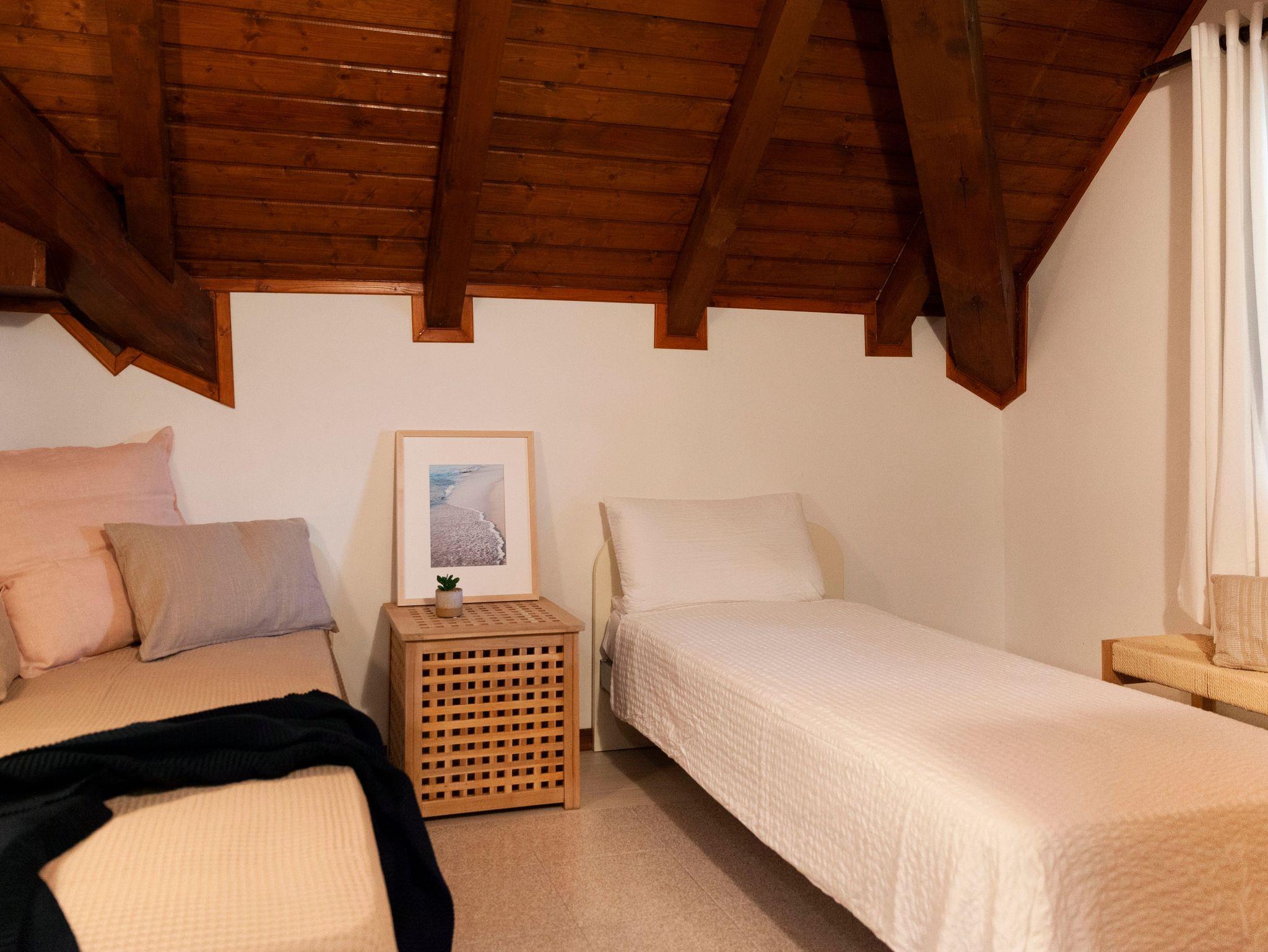 • Ein Schlafzimmer mit zwei Einzelbetten mit Klimaanlage