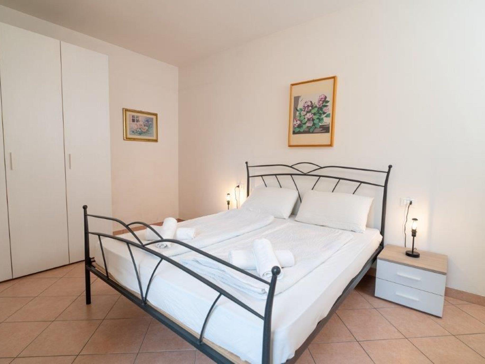 • Ein Schlafzimmer mit Doppelbett und en - suite Bad mit Dusche, Wc, Bidet und mit eigenem Ausgang in den gepflegten Garten