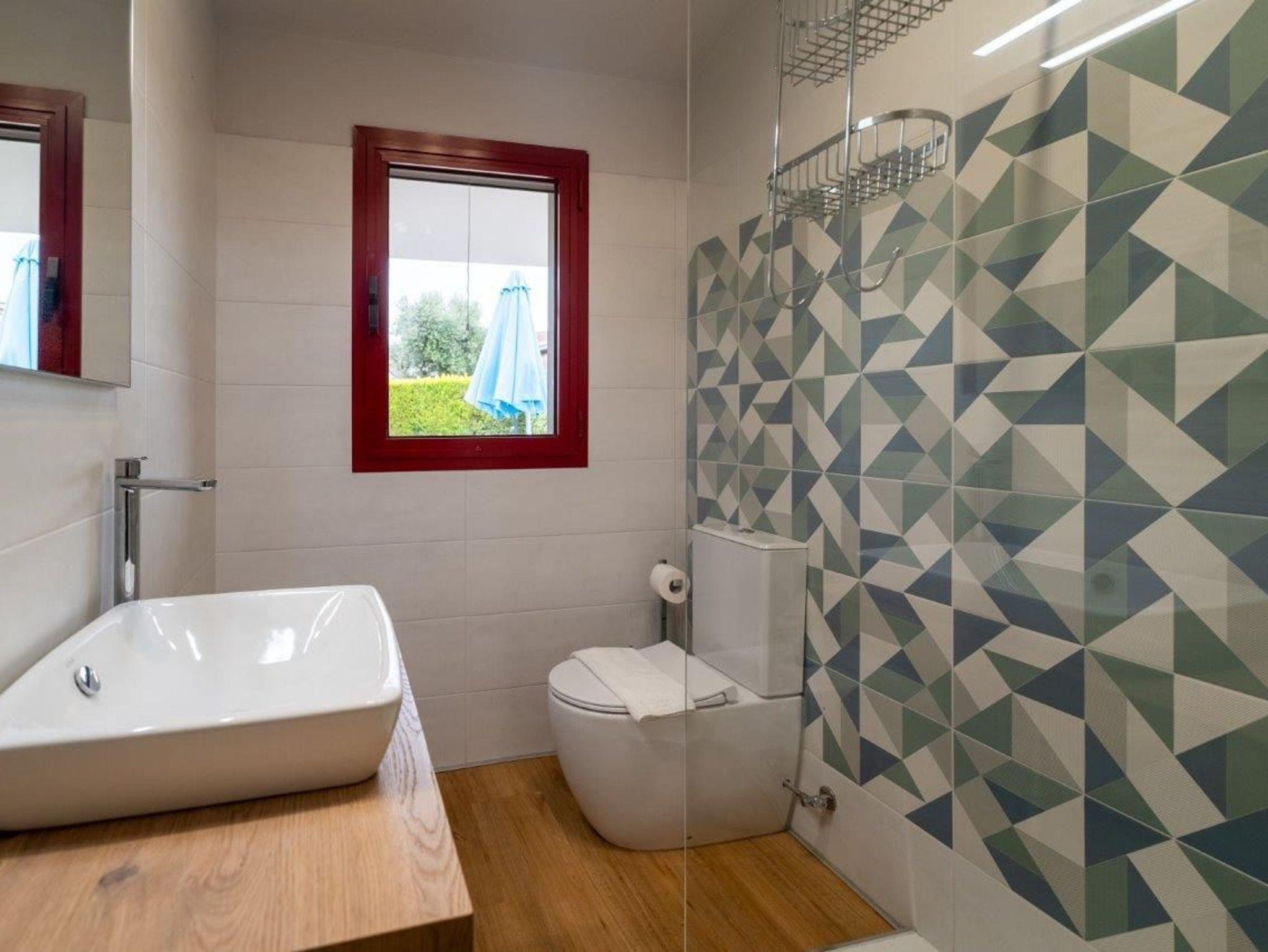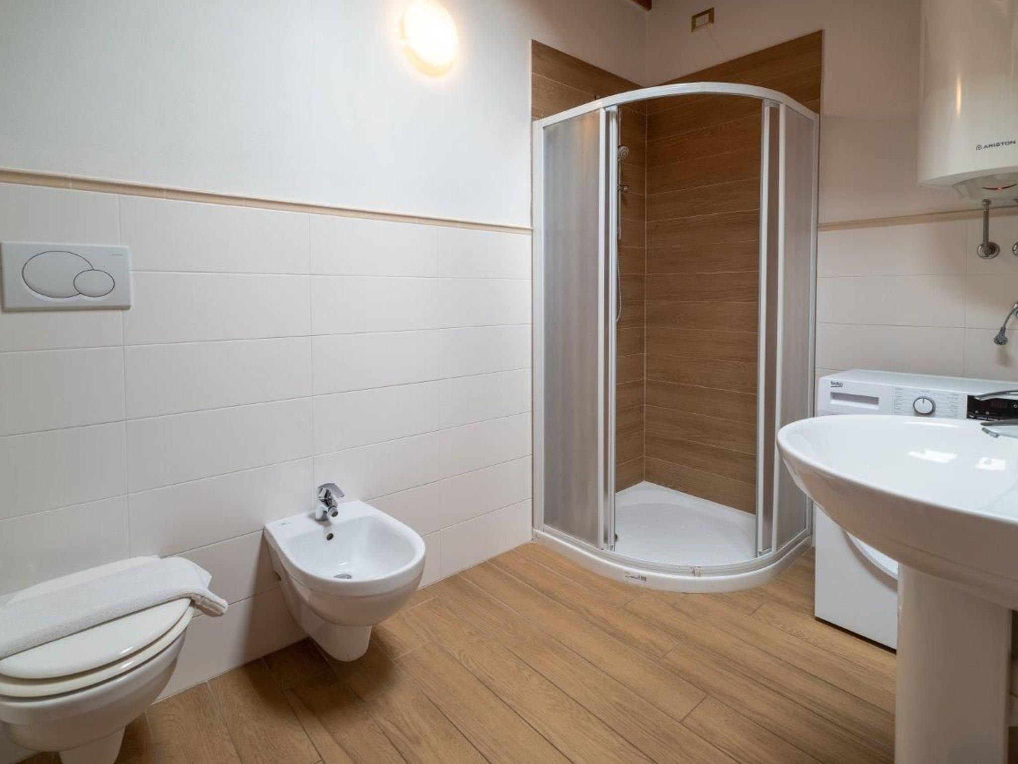 • Ein Bad mit Dusche, Bidet, Waschmaschine und Wc