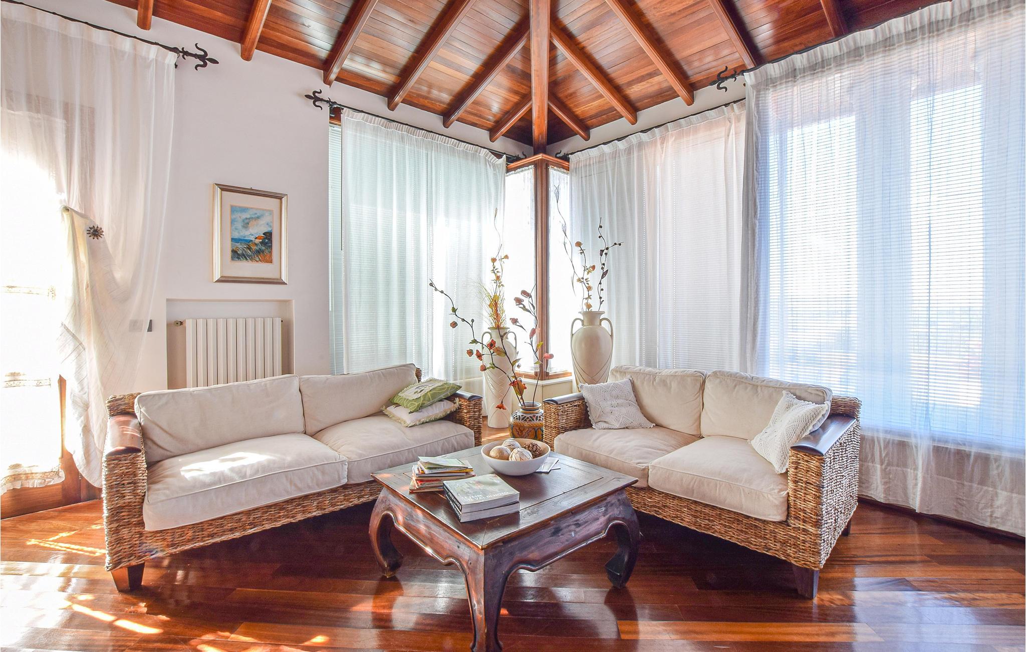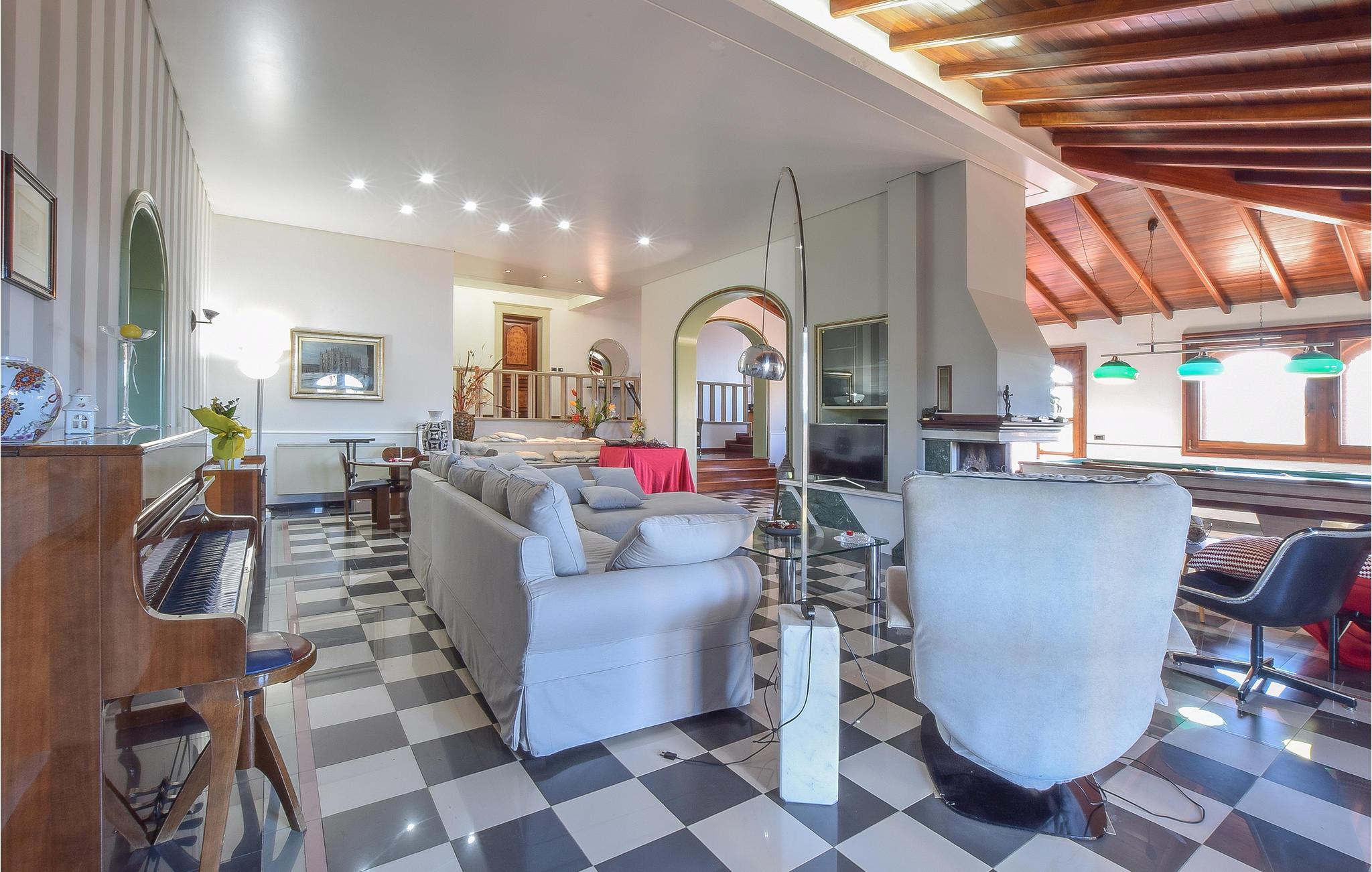 Dette indbydende feriehus kan rumme op til 14 personer, da der er fire soveværelser og seks badeværelser, så her får I alletiders ferie. Nyd den fantastiske udsigt til det omkringliggende landskab og gør brug af stedets skønne faciliteter, herunder fitnessrum og boblebad. Takket være klimaanlægget er værelserne behagelige selv på varme sommerdage, og på kølige dage kan I sætte jer til rette foran pejsen. Der følger gratis brænde med.
