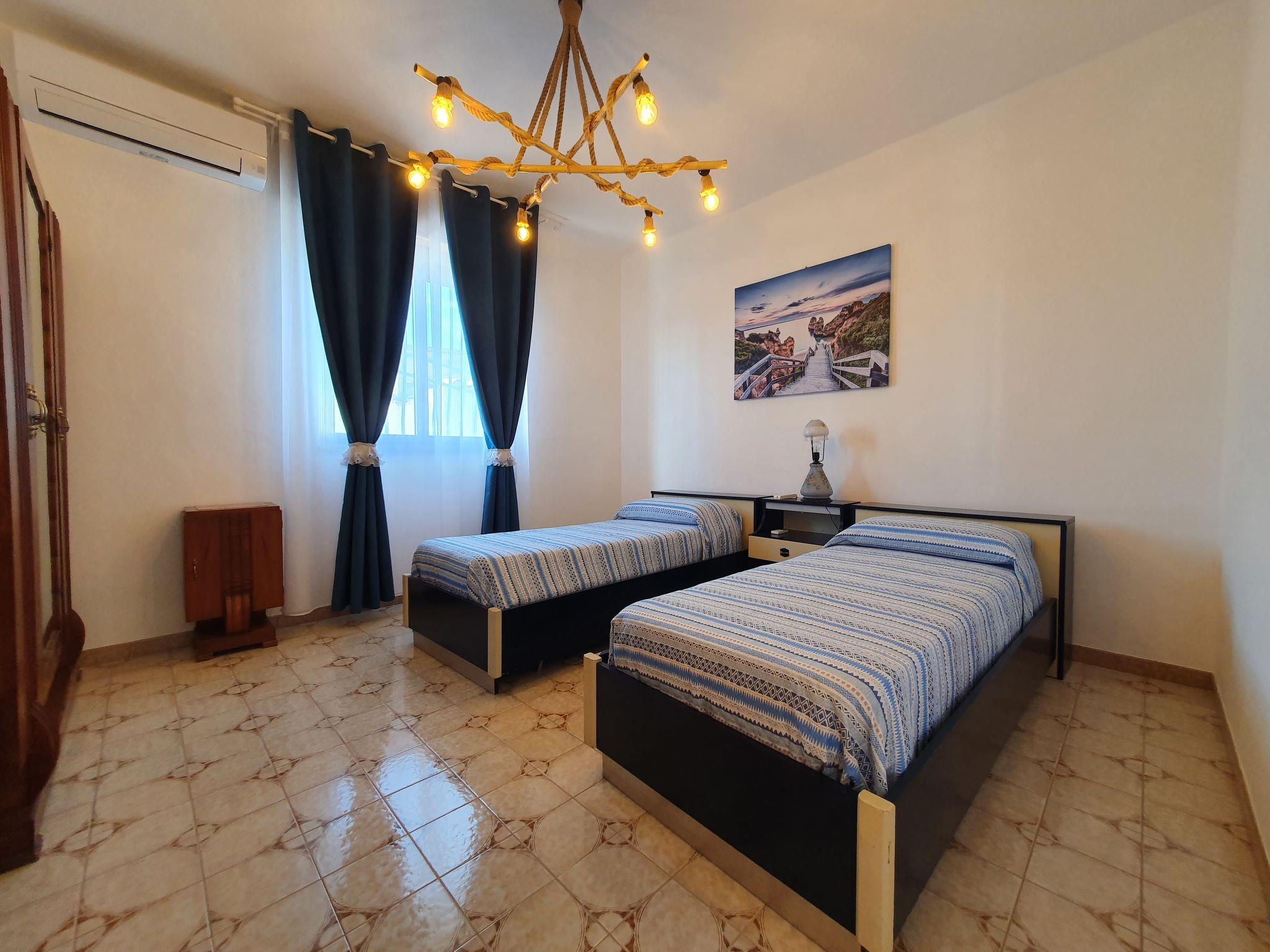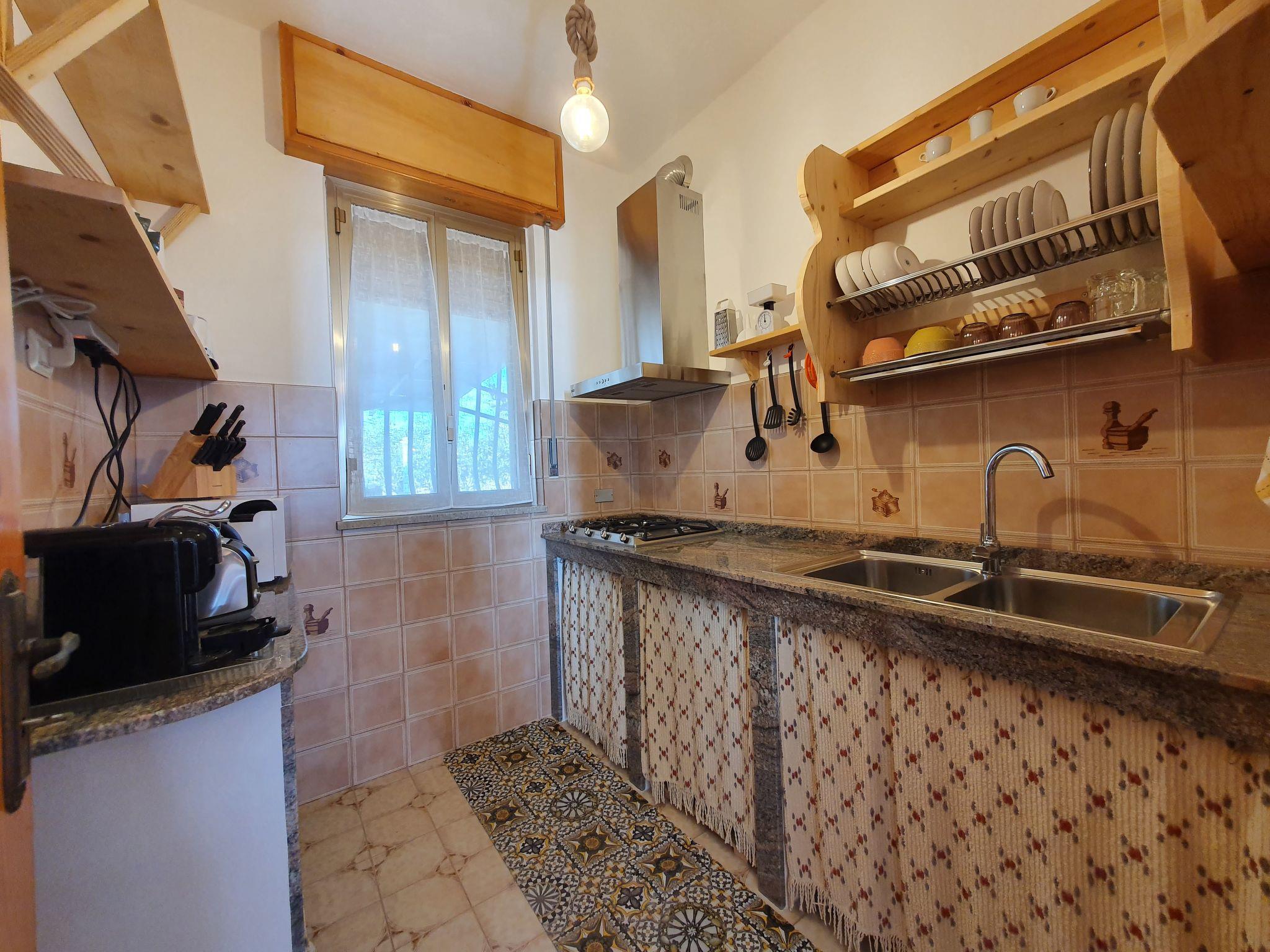 3-room house 80 m2, on the ground floor. Practical furnishings: living/dining room with 1 double sofabed and TV (flat screen), air conditioning and forced-air heating. Exit to the terrace. 1 double bedroom with air conditioning and forced-air heating. 1 room with 2 beds, air conditioning and forced-air heating. Kitchenette (4 gas rings, toaster, kettle, microwave, electric coffee machine). Shower/bidet/WC. Heating, forced-air heating. Heating available only from 01.12. to 31.03, Heating not available in all rooms. Terrace 25 m2, roofed terrace 30 m2, roofed. Terrace furniture, barbecue, deck chairs. Distant view of the sea. Facilities: washing machine, iron, mosquito net, children's high chair, baby cot for up to 2 year olds (extra), hair dryer. Internet (WiFi, free). Parking (2 cars). Maximum 1 pet/ dog allowed. In the house there is a covered outdoor kitchen: 3 burners, electric oven. IT088005C2ICZQISLI