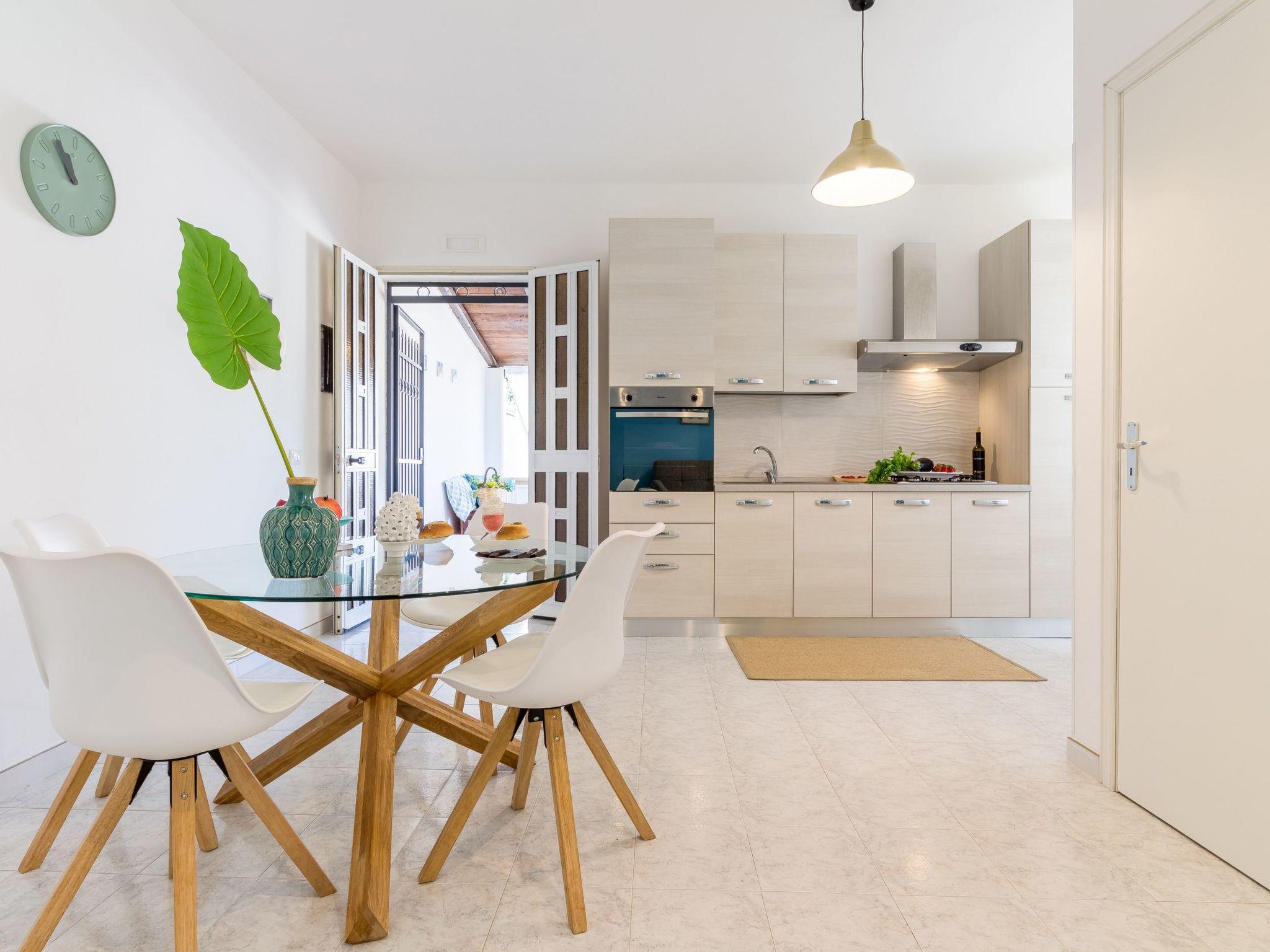 Beachfront apartment in Santa Maria del Focallo, a stone's throw from the sandy beach (10 m), with an equipped terrace and tastefully furnished interiors. It is located in a quiet area, 2 km from Punta Cirica beach and 5 km from the famous bay of Porto Ulisse. It is a 20-minute drive from Marzamemi (Syracuse) and is ideal for a beach holiday of a family with children.