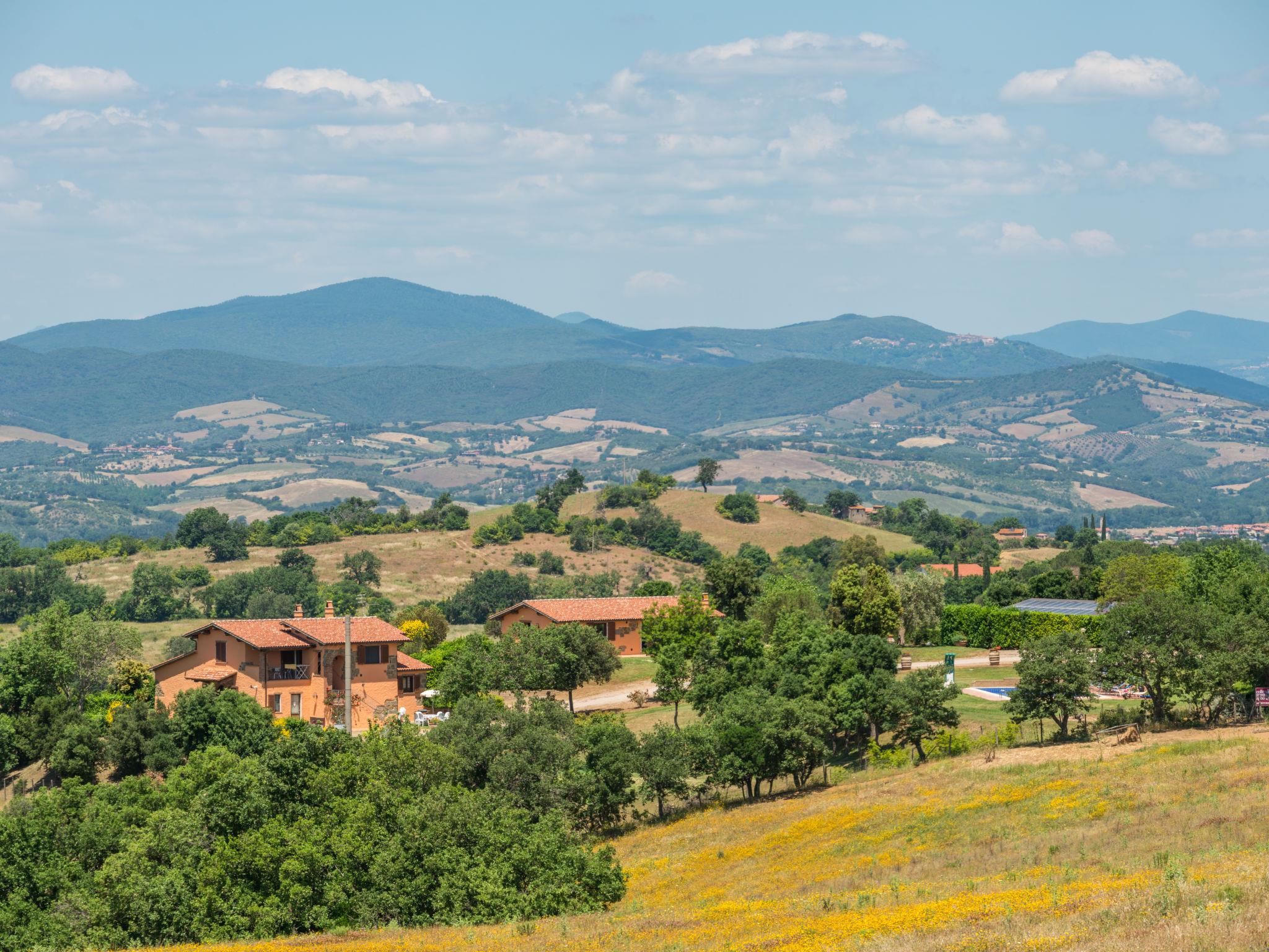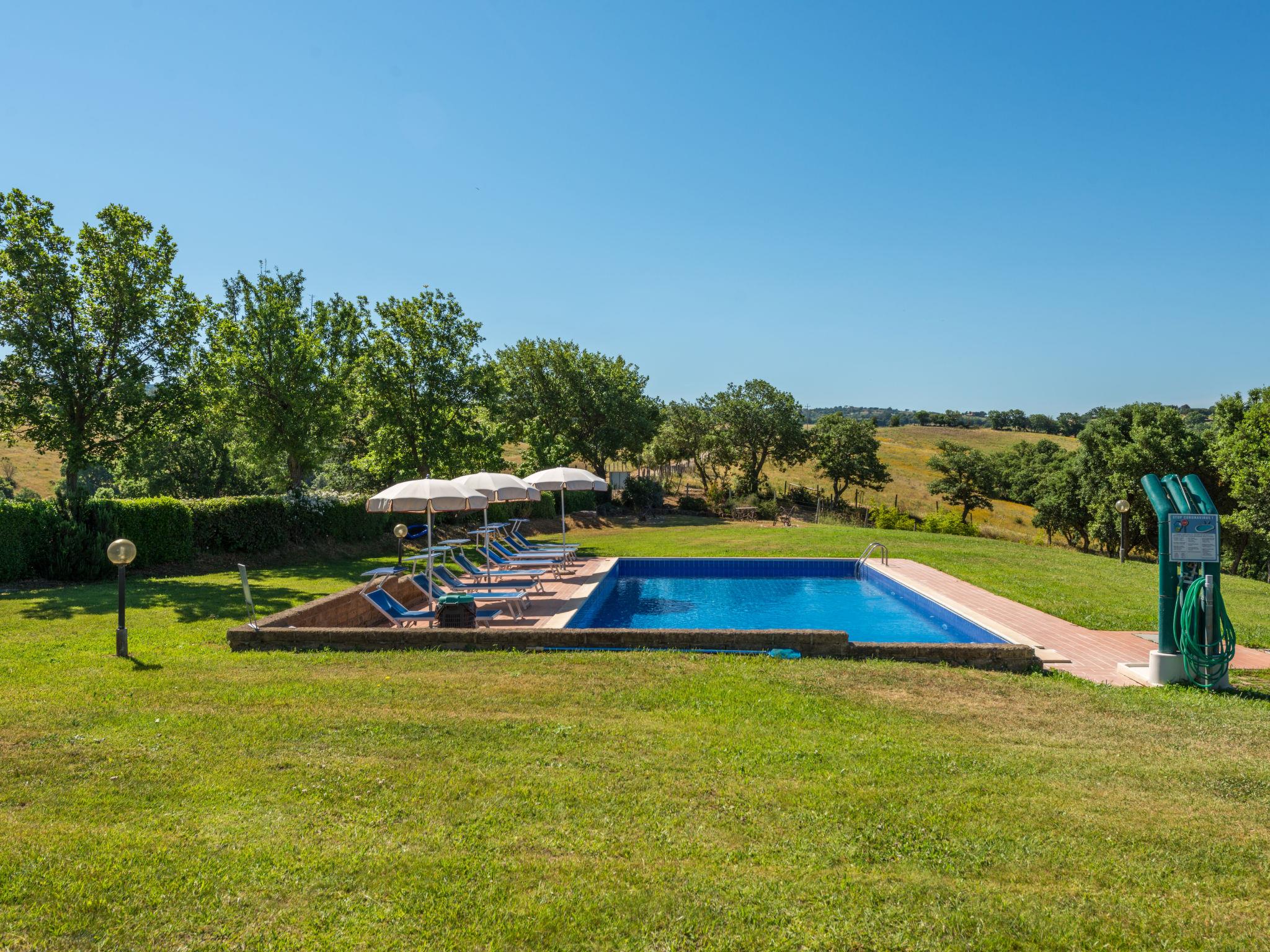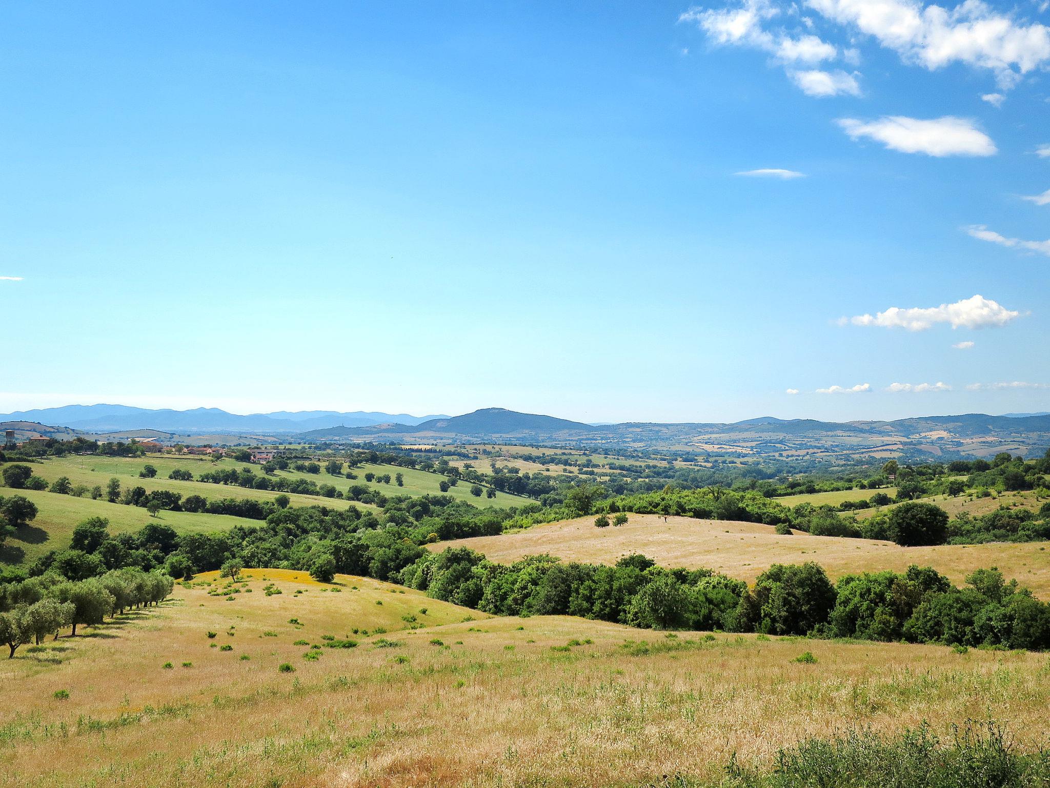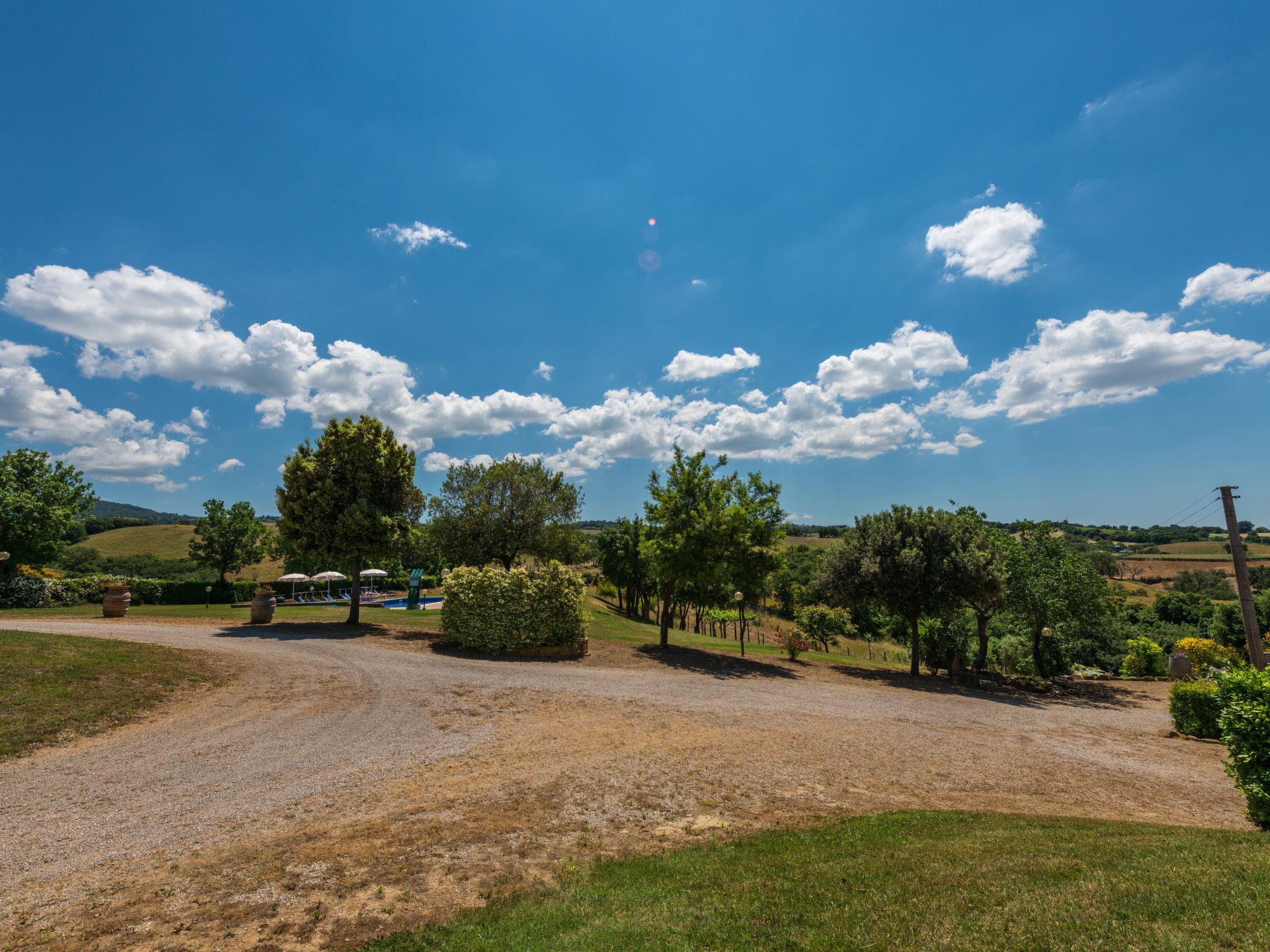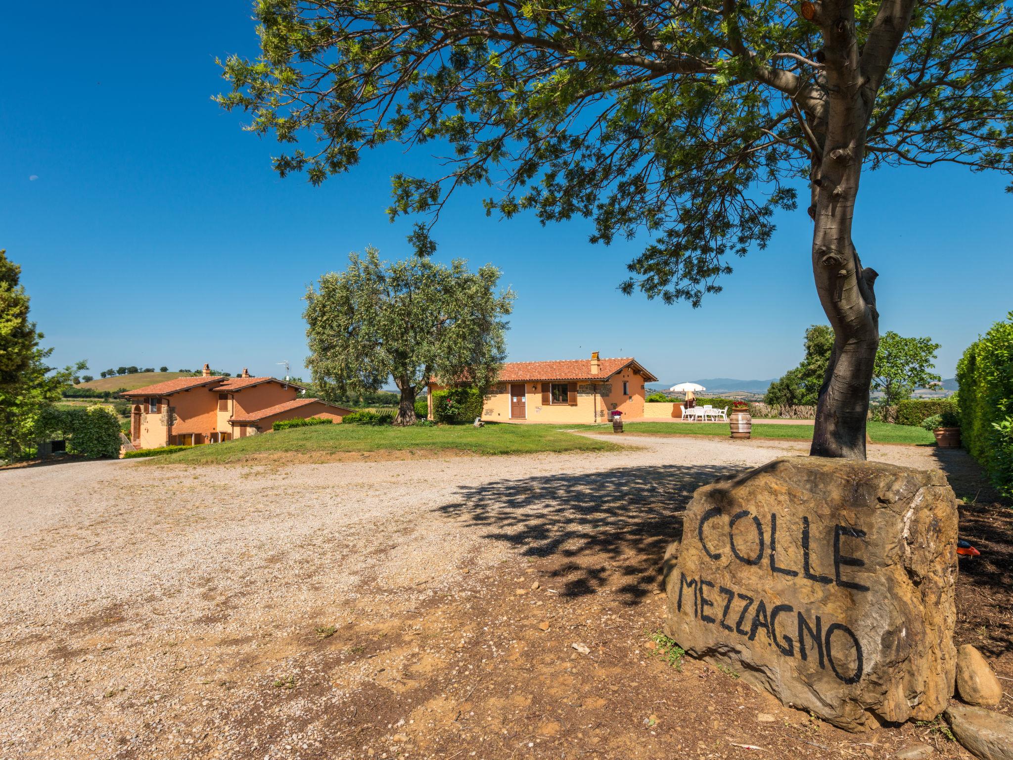 Large working farm "Colle Mezzagno", surrounded by meadows, fields and vineyards. 11 km from the centre of Istia d'Ombrone, 12 km from the centre of Scansano, in a secluded position on top of a hill, 30 km from the sea. For shared use: property 5'000 m2 (fenced), garden with lawn and plants, swimming pool (12 x 6 m, depth 150 cm, seasonal availability: 20.May. - 30.Sep.). Outdoor shower, pool maintenance by the owner/gardener. In the house: washing machine (for shared use). Motor access (1.3 km via unmade road). Roofed, parking on the premises. E-charging station. Supermarket 11 km, railway station "Grosseto" 18 km, sandy beach 30 km. Marina 40 km. Nearby attractions: Grosseto 18 km, Castiglione della Pescaia 40 km, Saturnia 40 km, Pitigliano/Sorano/Sovana 50 km. Hiking paths: Parco della Maremma 30 km, Mountain-Bike 5 km.