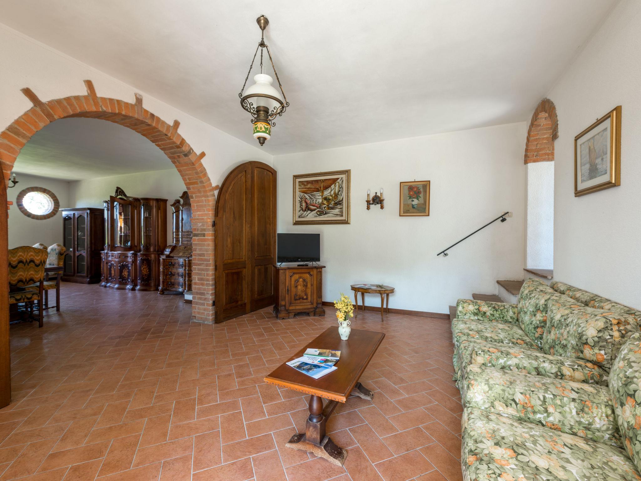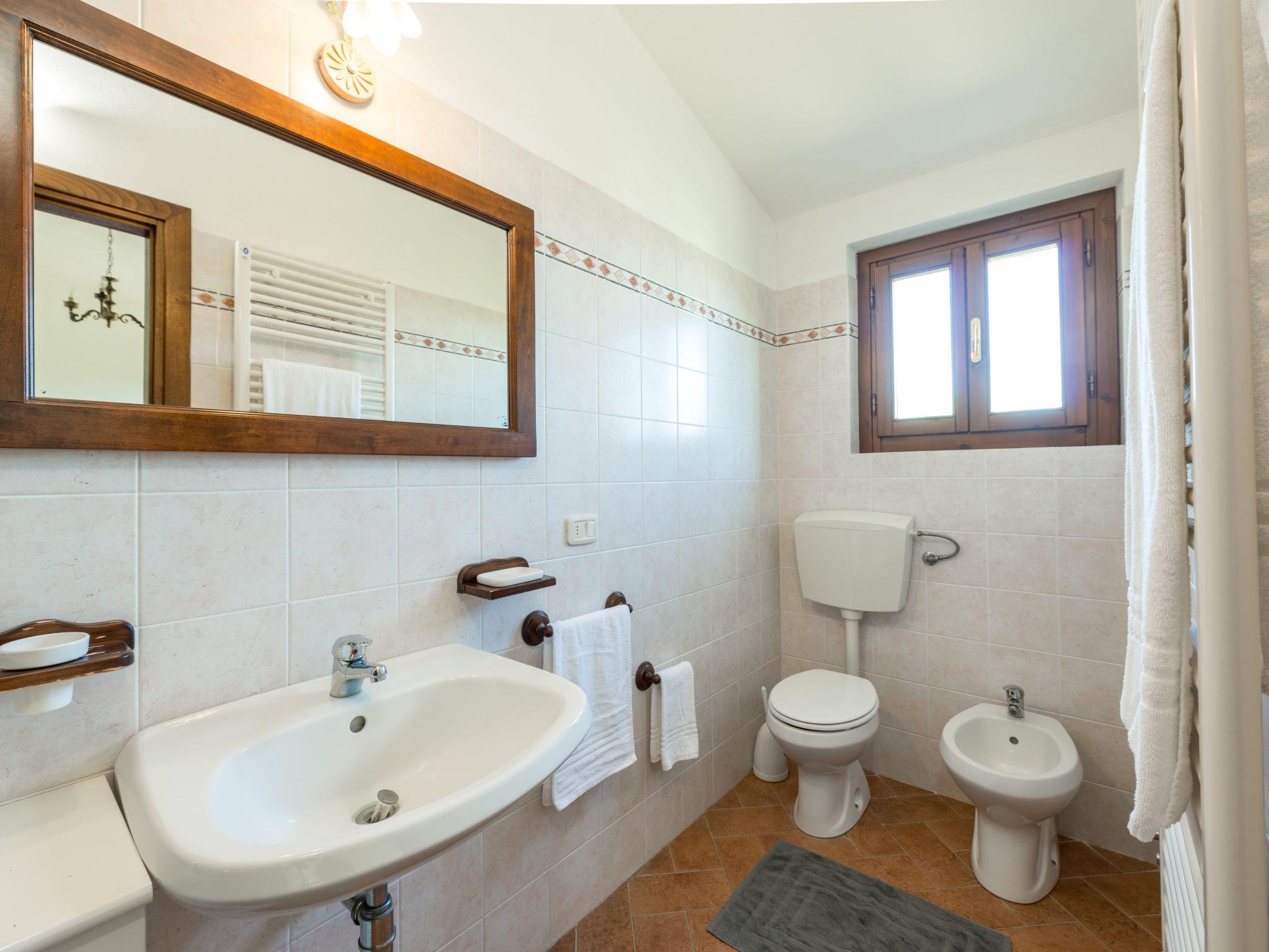 "Leccio", 5-room apartment 140 m2 on 2 levels. Rustic furnishings: living/sleeping room with 1 double sofabeds, open-hearth fireplace, dining table and TV. 1 room with 1 french bed (160 cm), hip bath/bidet/WC. Exit to the garden. 1 room with 2 beds and shower/bidet/WC. Exit to the garden. 1 room with 1 french bed (160 cm). Exit to the garden. 1 room with 1 bed. Open kitchen (oven, dishwasher, 4 gas rings, kettle, freezer, electric coffee machine). Shower/bidet/WC. Gas heating, air-conditioning (extra). Garden. Terrace furniture, barbecue (portable). Panoramic view. Facilities: baby cot. Internet (WiFi, free). E-charging station. Please note: non-smokers only. Maximum 2 pets/ dogs allowed. Private entrance. IT053023B5E86CR6P4