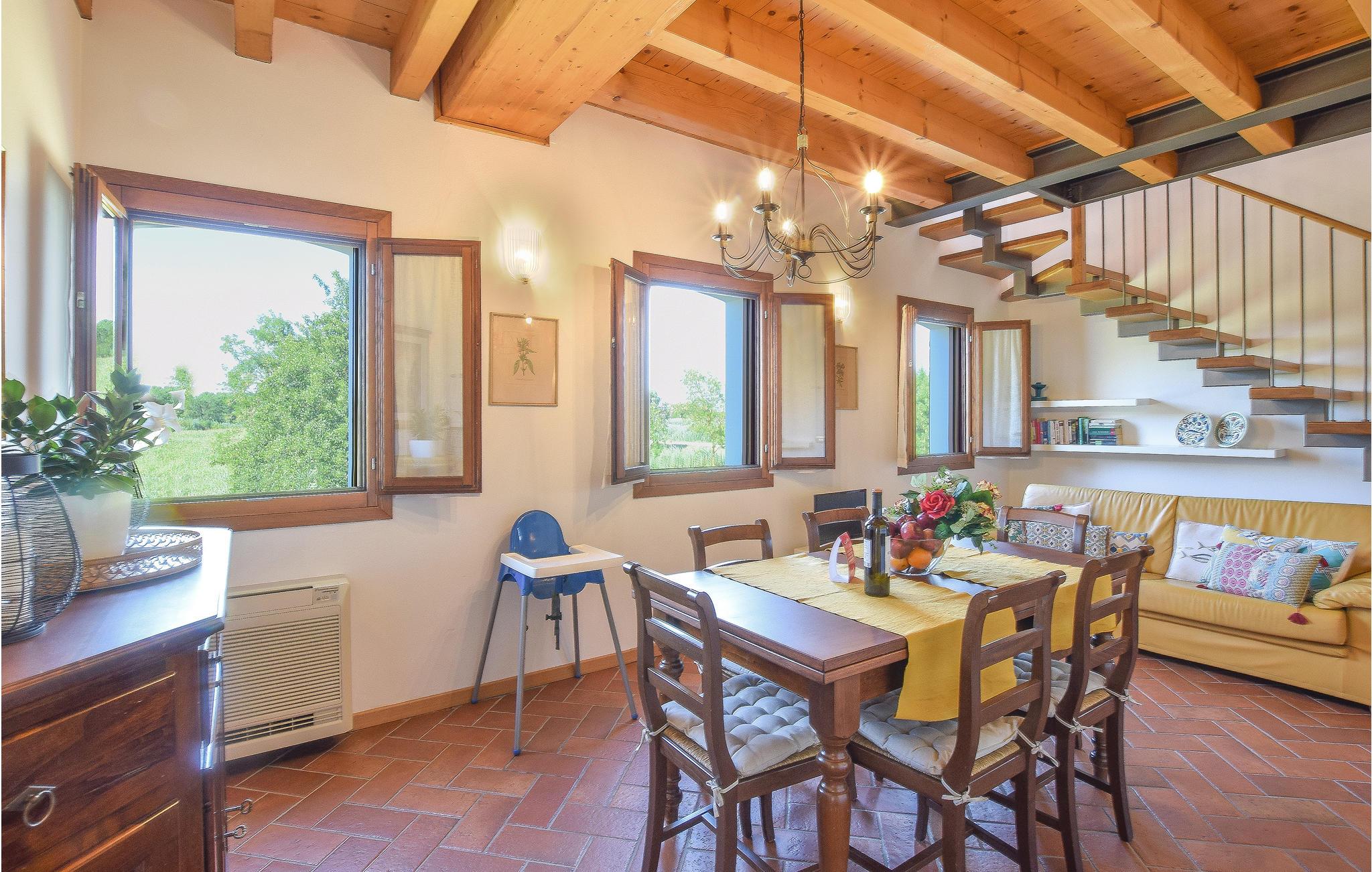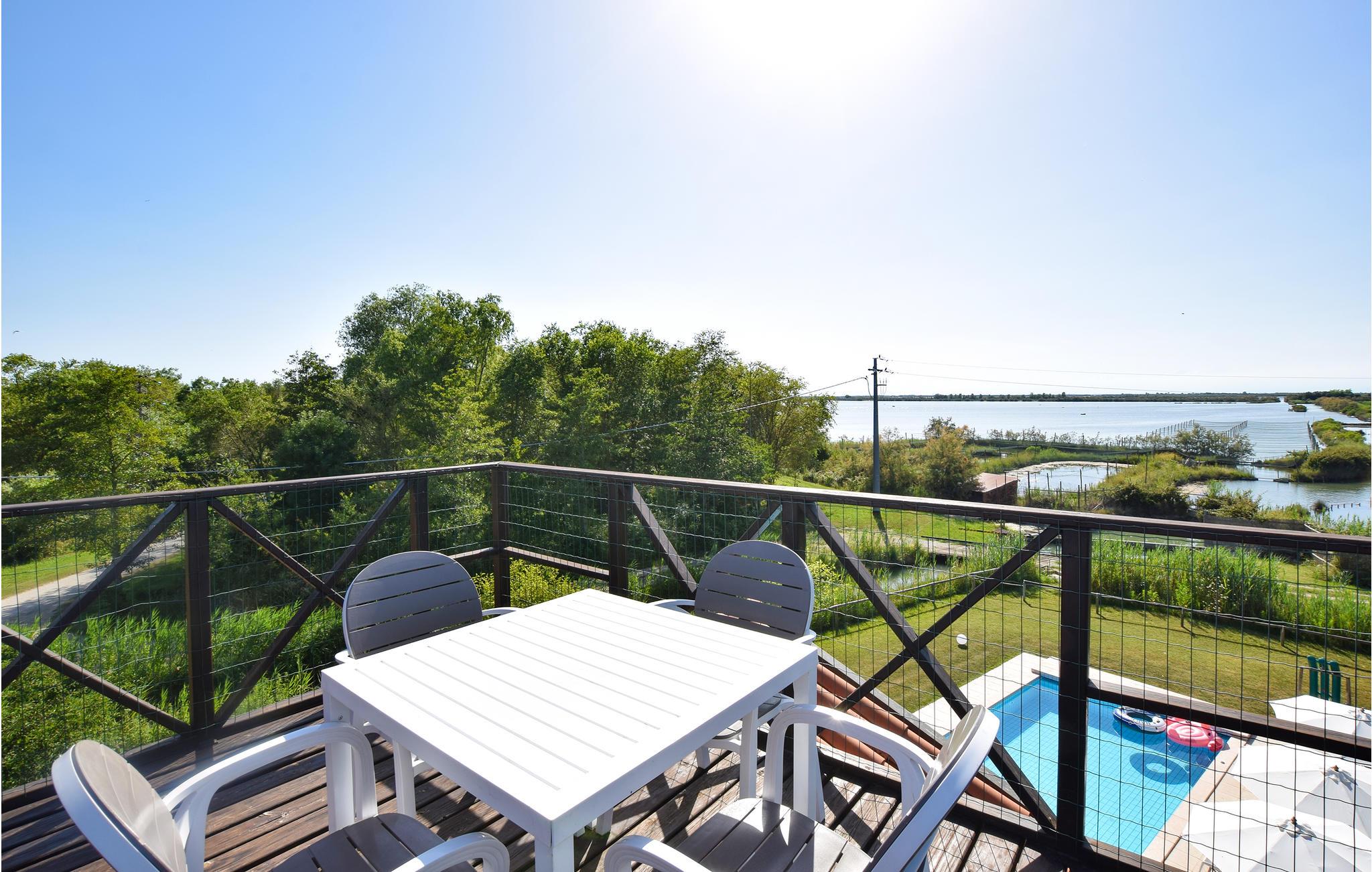 4 lejligheder er fordelt på 3 etager i et af de mest populære fiskeriområder i Venedig. Rundt om grunden strækker der sig 10 hektar skov og laguner, rige på ænder og fisk. På græsarealerne er der både liggestole, stole, parasoller, havemøbler og swimmingpool samt borde, bænke og grill.