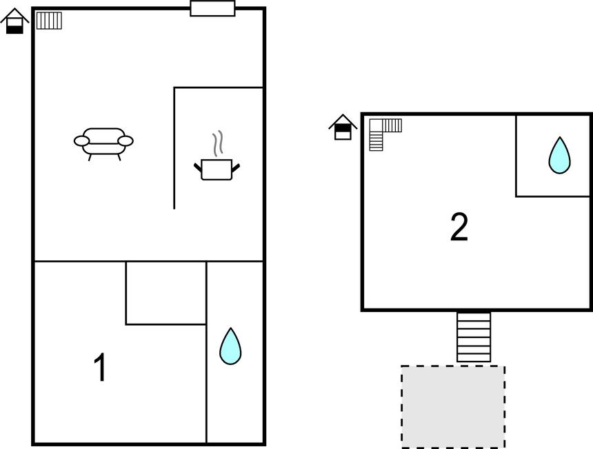 Opholdsstue/køkken - 2 Sovepladser. (Sofa, madras eller lignende).