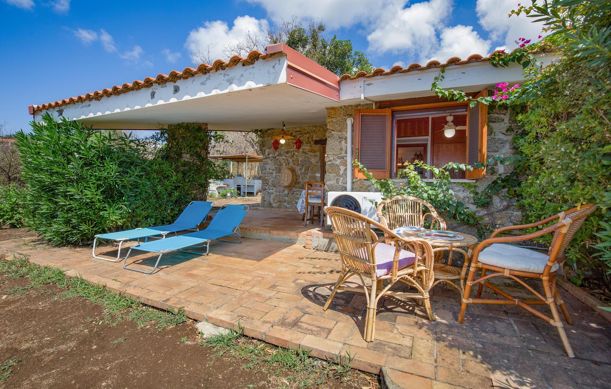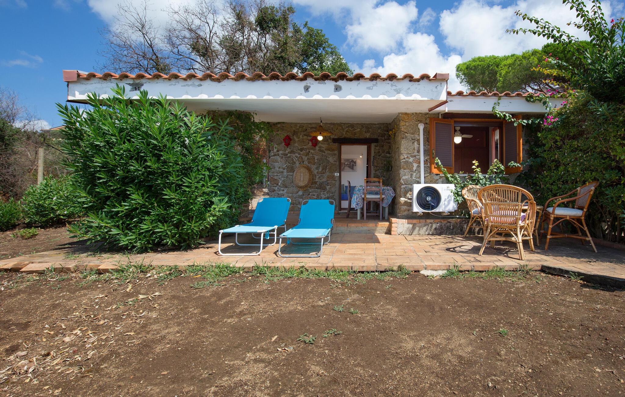 Dette feriehus med have ligger i landlige omgivelser og er perfekt som oase til den lille familie. Huset er enkelt, men udstyret med alt, hvad I skal bruge til et ubekymret ophold. Træd ud på terrassen og nyd dagens første kop kaffe, mens I nyder morgensolen.