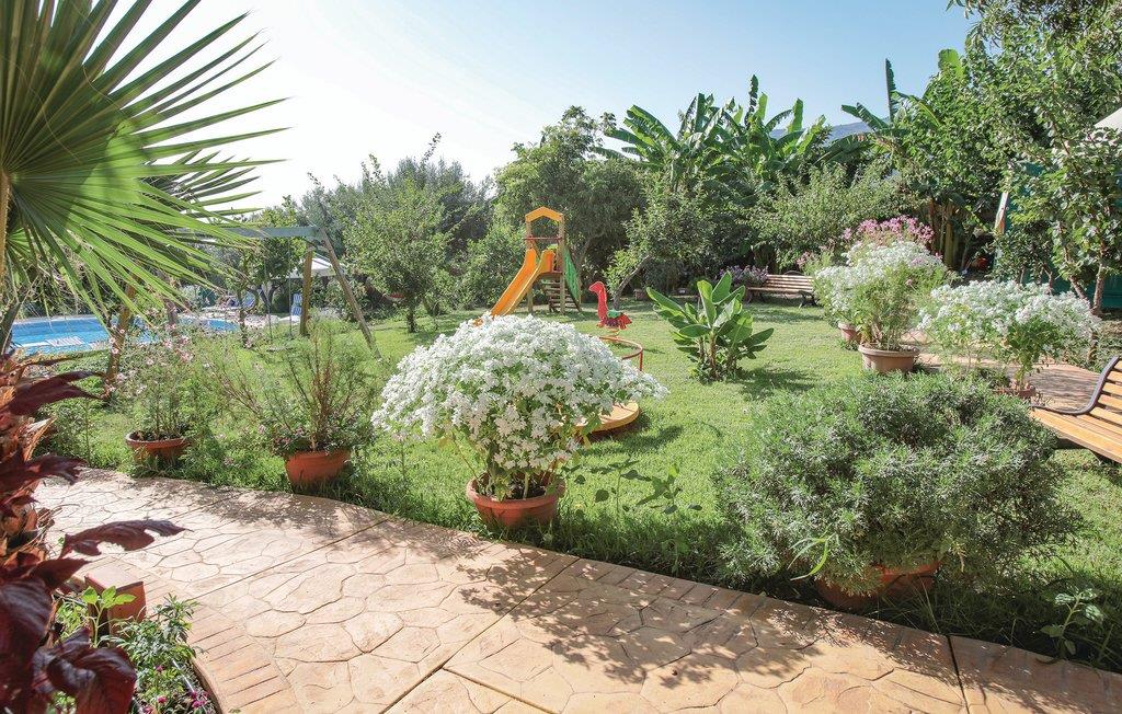 Omgivet af yppig grøn natur og i en have, kun 40 m fra havet og stranden, både med klipper og fint sand, ligger dette feriehus i Joppolo i Vibo Valentiargionen. Huset er lyst og hyggeligt indrettet og ligger i et privat ferieanlæg, med en fælles pool, en fodboldbane, tennisbane, legeplads, grillplads og en have fuld af blomster og planter. Feriehuset er i et plan med tre soveværelser, alle med eget badeværelse, en stor stue med køkken og spisebord, samt en skøn veranda, hvor I kan slappe af og spise dagens måltider. En udendørs trappe fører op til en terrasse på første sal, hvorfra der er udsigt over havet og de Æoliske øer på klare dage. Nær Joppolos historiske centrum, Nicotera (7 km), Tropea (15 km). I nærheden af barer, restauranter og supermarkeder der er åbne året rundt.