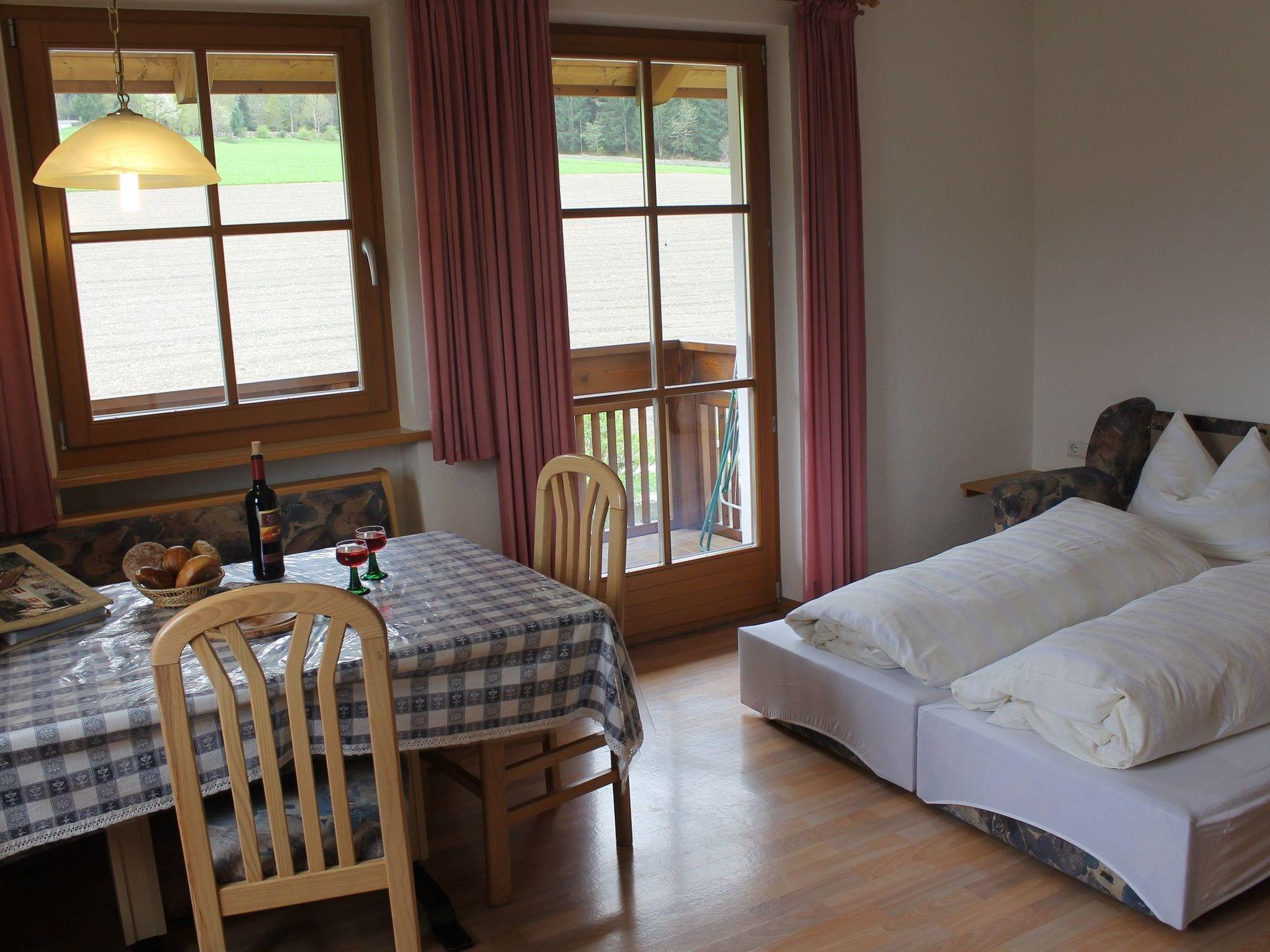 The location of the holiday flat couldn't be better for all those who love nature and outdoor activities. Just a few metres from the edge of the forest, there are a variety of hiking routes right on your doorstep. The nearby lake, only about 6000 metres away, invites you to enjoy relaxing walks or water sports activities. For skiing enthusiasts, there is a mountain/cable car just 1500 metres away. In addition, the nearest village centre is just a few minutes' walk away, while the nearest grocery store is around 1500 metres away.