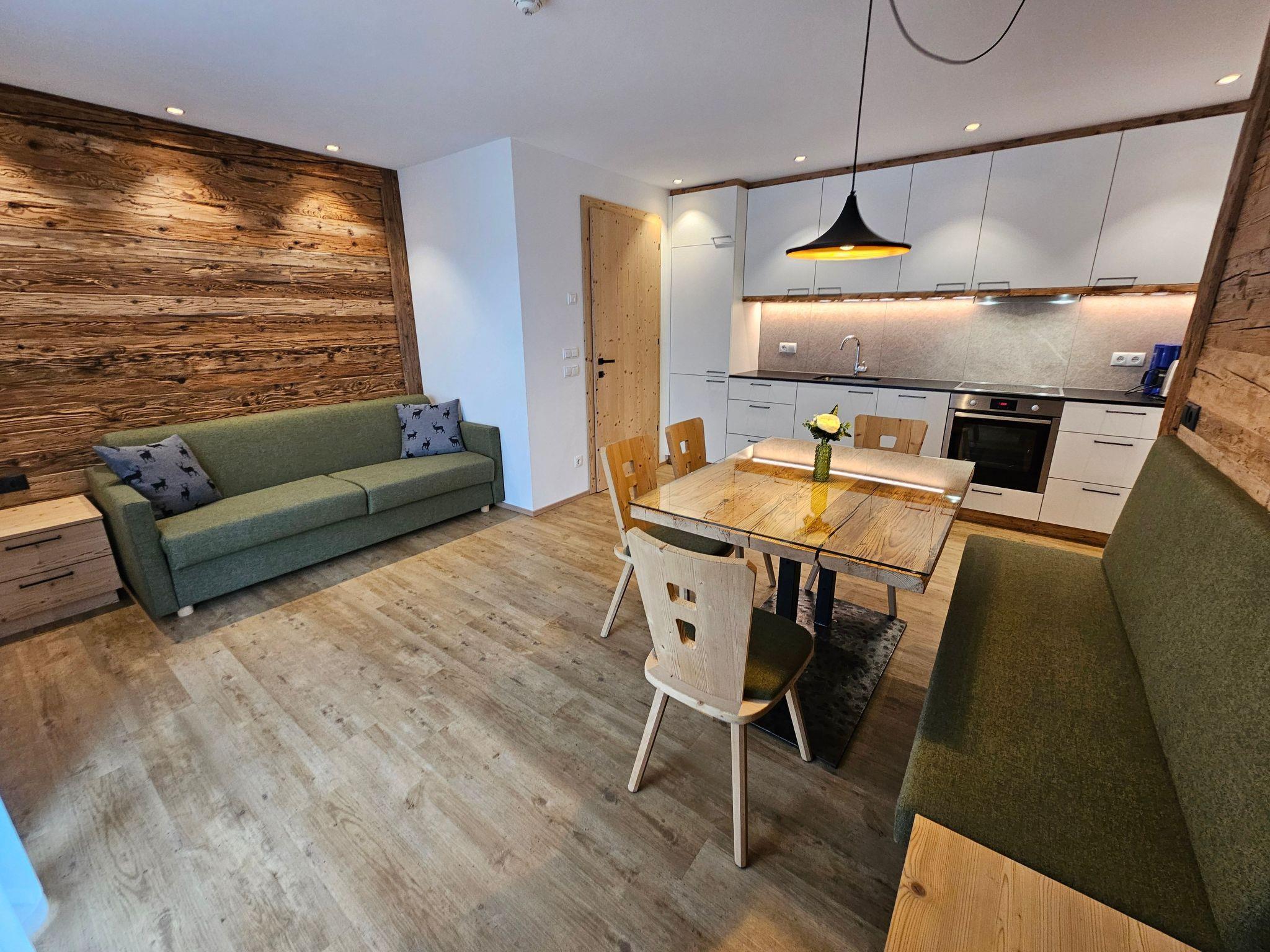 Our new chalet flats, lovingly furnished with Tyrolean natural wood, offer everything you need for an all-round successful stay. Whether as a couple or as a small group of up to six people - here you will find the ideal retreat. The flats have a bedroom with a double bed, another with a bunk bed and a living area with a pull-out double sofa bed, a fully equipped kitchen and a bathroom. Comfortable luxuries such as WLAN, TV and balcony round off your holiday experience.