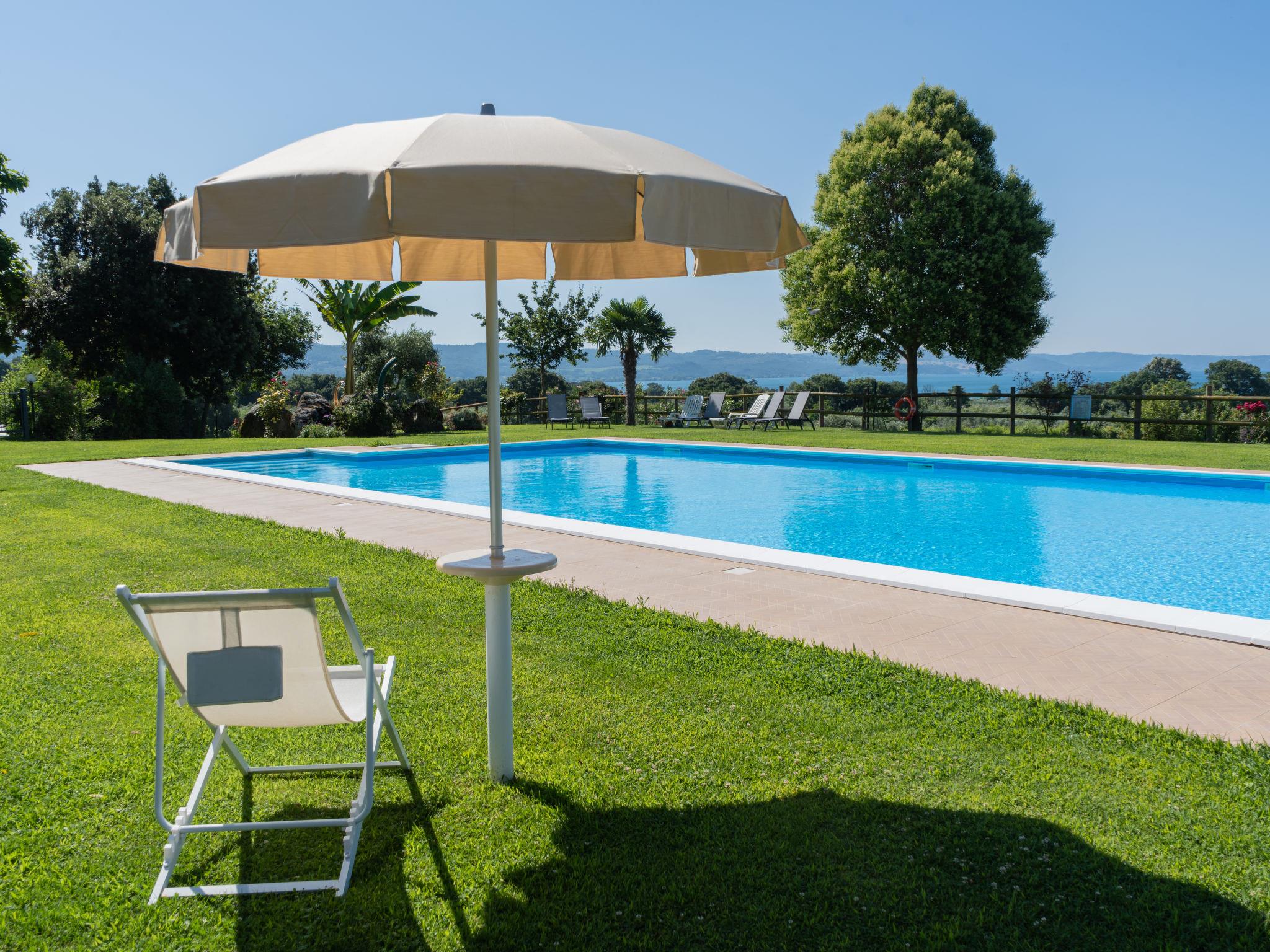 Country house "L'Orto e le Rose". 2 houses in the residence. 3 apartments in the residence. 3 km from the centre of Bolsena, 25 km from the centre of Orvieto, 100 km from the centre of Roma, 900 m from the lake, in the countryside. For shared use: property 2'000 m2 with lawn and trees, orchard, lawn for sunbathing, swimming pool (16 x 8 m, depth 150 cm, seasonal availability: 16.May. - 03.Oct.). Outdoor shower, barbecue, children's playground, roofed, parking on the premises. Shop 3 km, supermarket 4 km, bus stop 3.5 km, sandy beach "Lago di Bolsena" 900 m. Golf course (9 hole) 15 km. Please note: the owner lives on the same property. Additional accommodations can be booked.