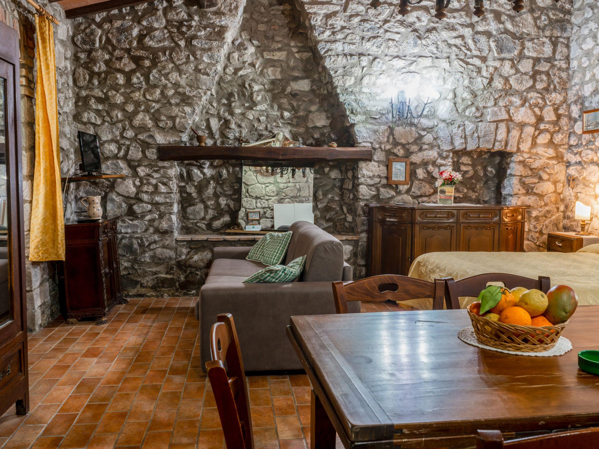 "La Capraccia", 2-room apartment 100 m2, on the ground floor. Renovated, rustic furnishings: living/sleeping room with 2 double sofabeds and 1 french bed (160 cm), dining table and satellite TV. Exit to the garden. Living/sleeping room with 1 double sofabed and 1 french bed (160 cm), dining table, kitchen corner and satellite TV. Exit to the garden. Kitchenette (oven, 4 gas rings, kettle, freezer, electric coffee machine). 2 showers/WC. Gas heating. Patio. Terrace furniture. Facilities: safe, iron. Internet (WiFi, free). Please note: non-smoking house. Maximum 1 pet/ dog allowed. Maximum occupancy: 8 persons. IT056003B55N8AGTOO