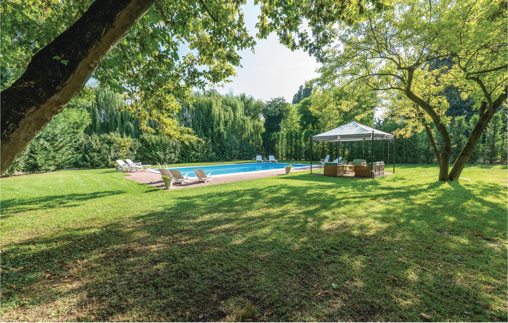 Karakteristisk landhus i Lombardiet, ca. 4 km fra Goito og 15 km fra Mantova, midt i en naturpark blandt marker, hvor I stadig kan iagttage mange fuglearter, f.eks. hejrer. Den smukke by Mantova er et besøg værd, og Gardasøen er nemt at nå i bil. På grunden med en græsplæne findes en swimmingpool og en møbleret pavillon, der står ved siden af poolen. I en separat fløj af bygningen bor viceværten. Indretningen er enkel, og rummer delvist stadig antikviteter. Afstande og tips til udflugter: Goito 4 km (butikker af alle slags), Mantova 15 km, golfbane 26 km, Peschiera del Garda og flere steder ved Gardasøen 28 km, Verona (amfiteater, Piazza Erbe) 30 km, Padua (Sankt Antonius’ basilica) 92 km. Der er 120 km til den vidunderlige, romantiske by Venedig.