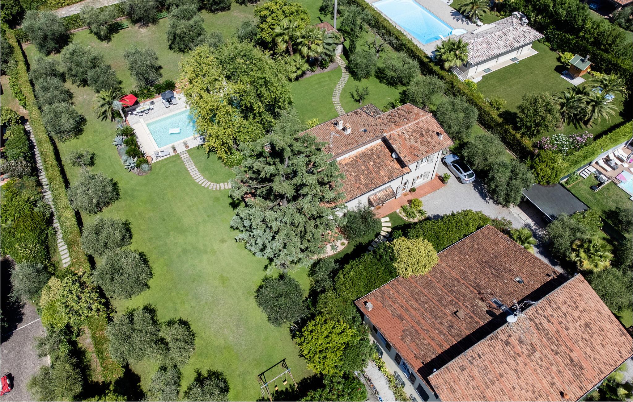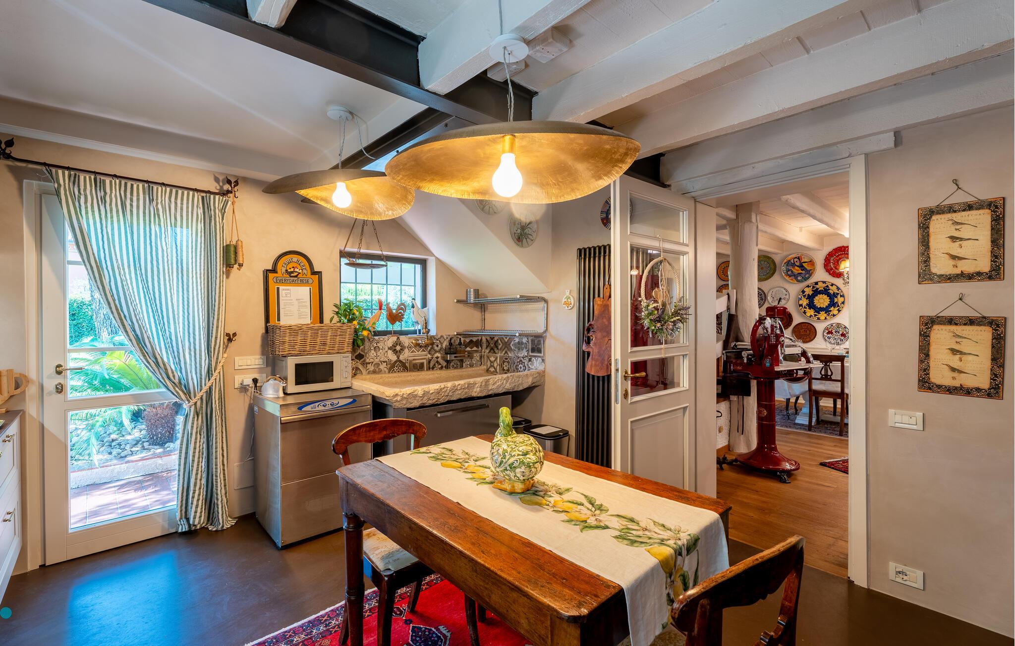 Dette elegante feriehus ligger i en park med oliventræer og en stor pool kun omkring 200 meter fra Gardasøen og 10 minutters gang fra den lille by Padenghe. Via en underføring kan I nemt nå en nærliggende strand med restauranter og bådudlejning. Til sportsaktiviteter er der en rideskole, en golfbane og cykelstier i området. jeres skønne feriehus strækker sig over to etager: I stueetagen er der tre stuer og spisestue med naturstensbrændeovn, køkken, gæstetoilet og lysthus med grill. På første sal er der fire soveværelser med dobbeltsenge, et soveværelse med to enkeltsenge, tre badeværelser. Et af dobbeltværelserne er udstyret med eget badeværelse og sauna. Poolen har spahjørne, modstrømsanlæg og omklædningsrum med badeværelse. Et vaskerum er tilgængeligt uden for huset. I parken er der et indhegnet grønt område med træhuse til jeres hund. Sikker og overdækket parkeringsplads til rådighed. Yderligere rengøring er også mulig efter anmodning og mod betaling på stedet. Ud over kendte forlystelsesparker byder Gardasøen på en række attraktioner inden for områderne musik, teater, vin og mad, sport og kunst. Ankomst kun mellem 16.00 og 20.00.