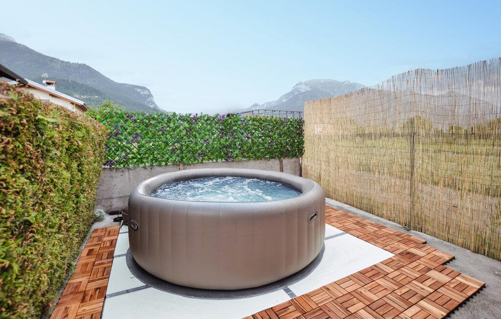 Tilbring en afslappende ferie i denne rummelige ferielejlighed med spabad og panoramaudsigt over bjergene.