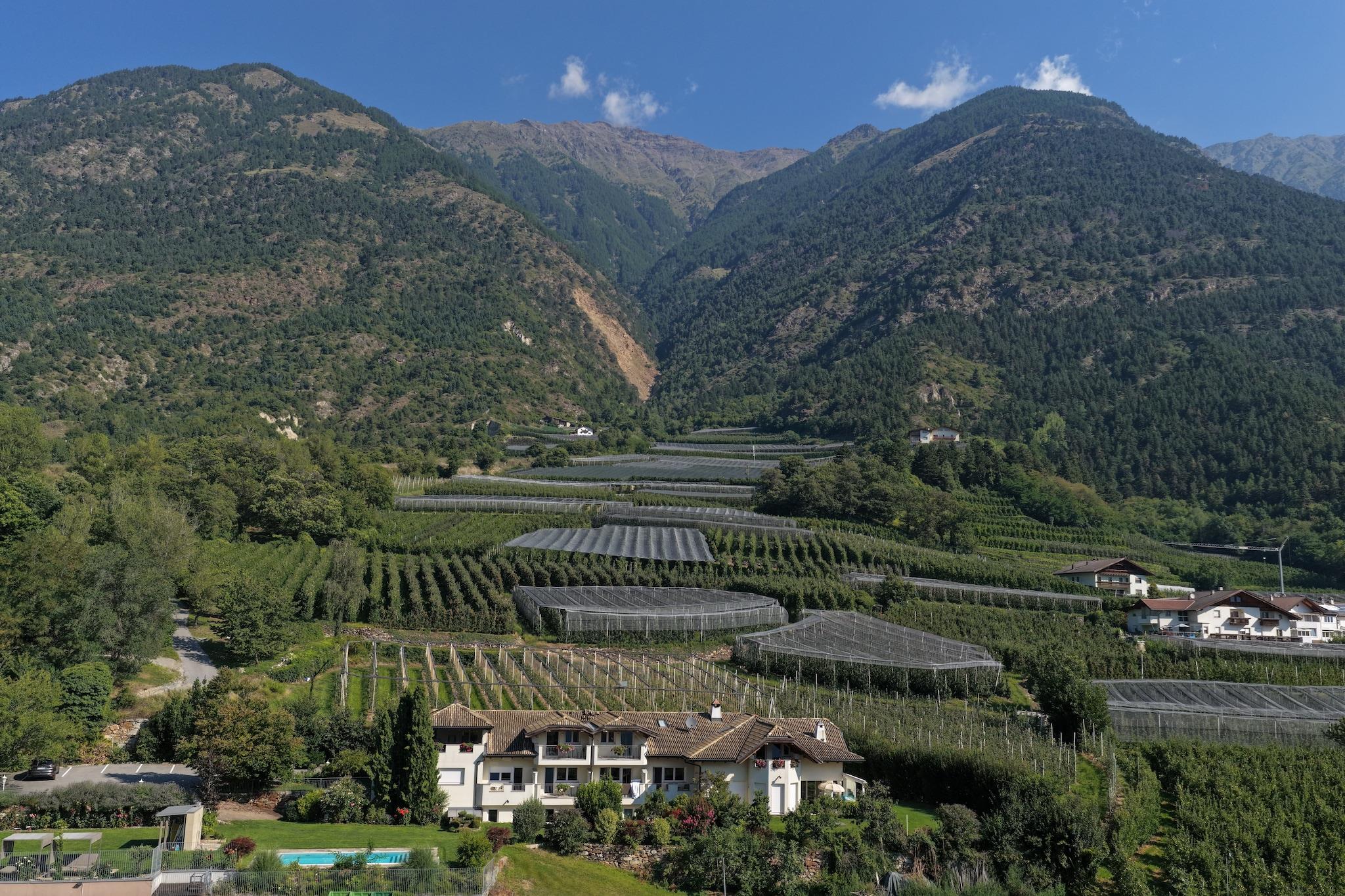 Smukt lejlighedskompleks med en indbydende swimmingpool, omgivet af talrige frugtplantager og grønne områder. Du er i en rolig, solrig beliggenhed lige ved indgangen til Goldrain, et 650 meter højt Latsch-kvarter i Vinschgau. Omgivet af et unikt bjerglandskab kan du slappe af i poolen og samtidig nyde den betagende udsigt ned til dalen. Oplevelsesbruserne og afslapningsområdet giver afslapning. Mens de yngre gæster slipper dampen ud på legepladsen, kan du slappe af i saunaen (mod betaling) eller på en af liggestolene med spændende læsestof. Residence Lahnhof har en registreret helikopterlandingsplads, hvor du kan lande din egen helikopter efter anmodning. Detaljer: Forbrugsbaserede energiomkostninger, sengelinned, håndklæder, slutrengøring, WiFi Aktiviteter i nærheden: Fiskeri i landsbyen - fiskedam, 1 km Ikke egnet til personer med nedsat mobilitet