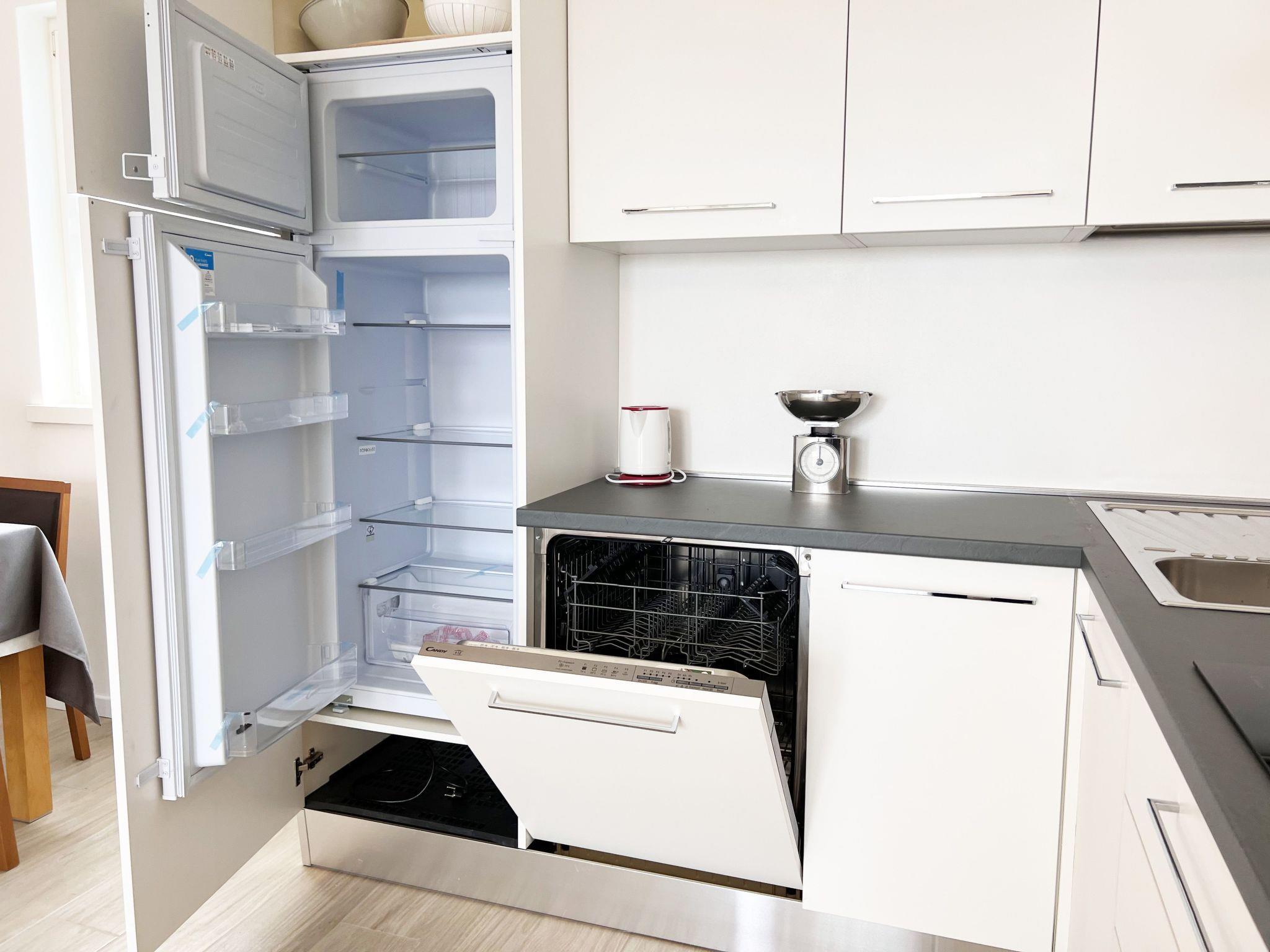 The whole condominium is brand new. The flat is very bright with large windows and a large balcony, which allows you to enjoy relaxing moments in the open air. It is composed of a living room with kitchen, a double bedroom with a bed 160x190 furnished with wardrobe, chest of drawers, bedside tables, mirror and terrace, a room with two single beds 80 x 190 furnished with wardrobe, chest of drawers, bedside tables, mirror and terrace, a large bathroom with washbasin, toilet, bidet, shower with crystal box and washing machine, a kitchen with table and chairs, the kitchen is equipped with stove, oven, kettle, refrigerator, freezer, sink, dishwasher and a large French window on a large terrace.The furniture is characterised by modern solutions, in fact it is equipped with the latest home automation system and internet access via wifi.