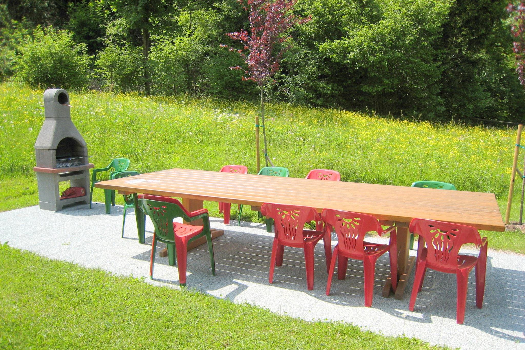 Stue(dobbeltsovesofa, Fjernsyn(parabol)), åbent køkken(mikrobølgeovn), soveværelse(dobbeltseng, køjeseng), badeværelse(bruser, håndvask, toilet, bidet), vaskemaskine(betalt), varme(central), terrasse(deles med andre gæster), have(deles med andre gæster), havemøbler, grill, barnestol