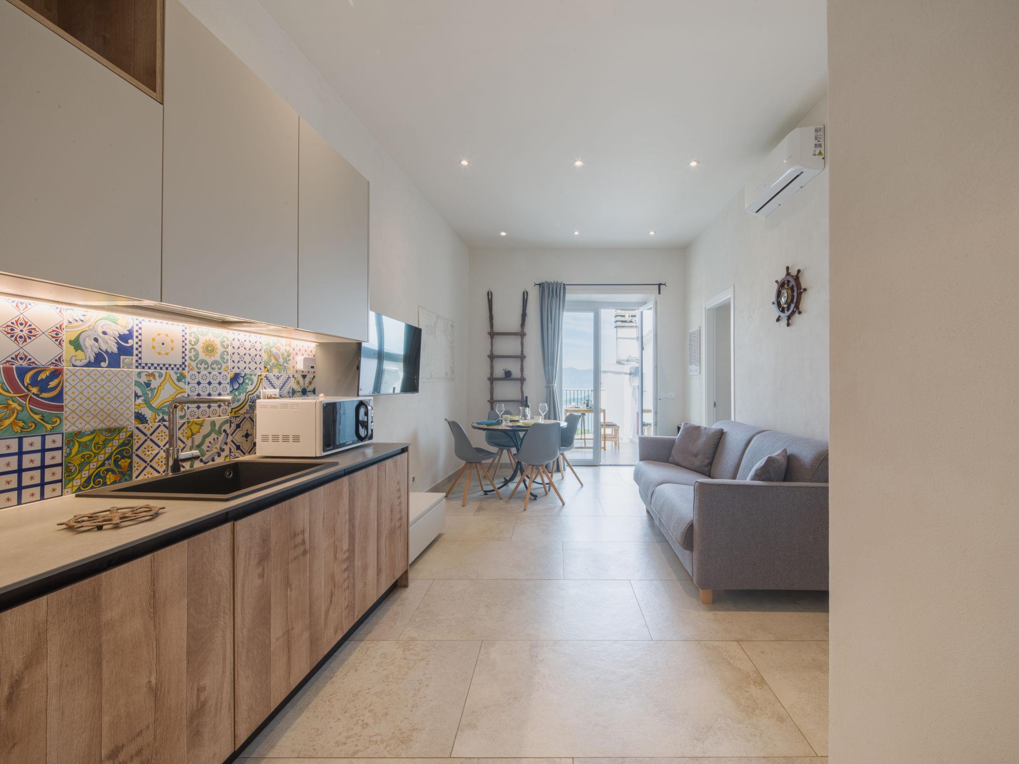"La Frida", 2-room apartment 50 m2 on 1st floor. Bright, very beautiful and tasteful furnishings: 1 double bedroom with panoramic window with shower/WC and air conditioning. Kitchenette (oven, dishwasher, 5 gas rings, toaster, microwave, electric coffee machine) with 1 double sofabed, TV, flat screen and air conditioning. Exit to the terrace. Shower/bidet/WC. Electric heating, air-conditioning. Small terrace. Terrace furniture. Very beautiful distant view of the sea. Facilities: washing machine, iron, mosquito net, hair dryer. Internet (WiFi). Please note: non-smokers only. Fire extinguisher. IT011016C2JFEWP8NO