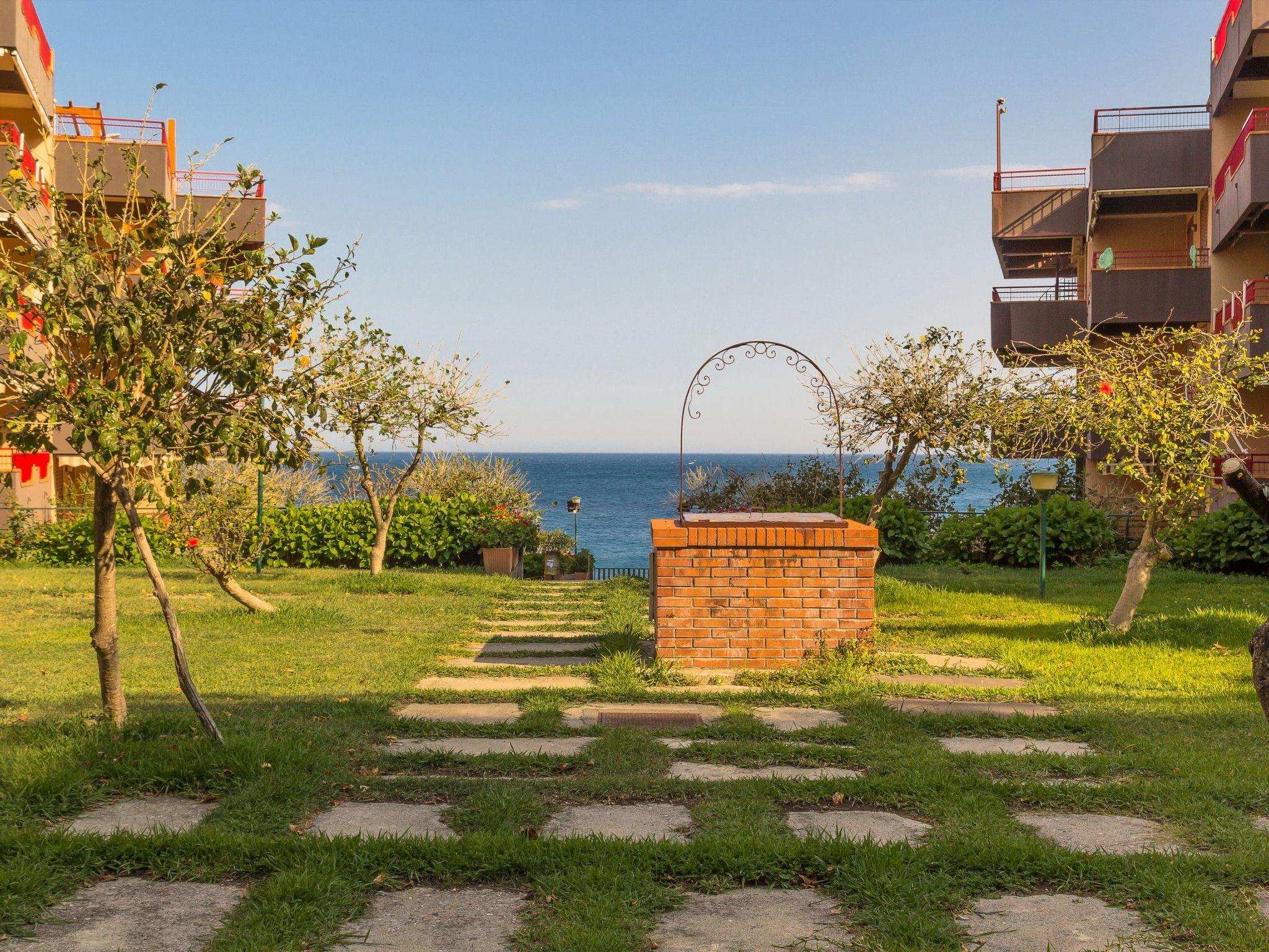 The exterior of the flat promises unforgettable moments of relaxation and enjoyment. The terrace overlooking the sea invites romantic dinners at sunset or serene breakfasts with the family, enveloped by the gentle melody of the waves. The communal garden, which offers direct access to the beach, is ideal for those who want to immerse themselves in the coastal atmosphere without giving up.