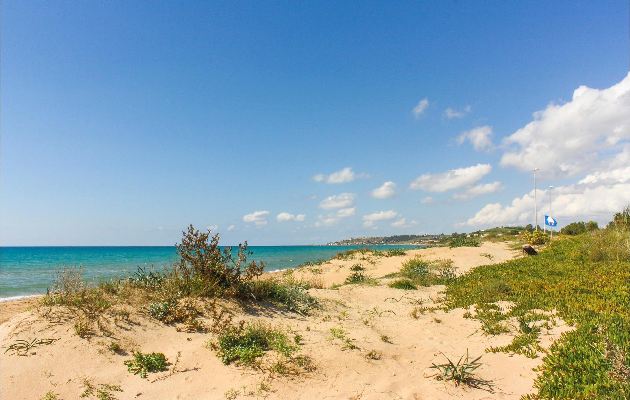 Dette feriehus i det grønne ligger i et bakkeområde i nærheden af Licata, en vidunderlig by i nærheden af Agrigento, ved Siciliens sydlige kyst. Havet er lige i nærheden, og I når bekvemt til Mollarella-stranden til fods, der er komfortabelt og godt udstyret om dagen, og når mørket sænker sig, bliver stranden til et centrum for levende sommeraftener. Hvis I holder af havet kan I glæde jer til bugterne i Nicolizia, Cavaddruzzu og Balatazze, med skiftevis helt små, nærmest private strande med klippeformationer, der er yndet blandt snorkelsvømmere og dykkere. Huset rummer et dobbelt soveværelse med hems med enkeltseng, generøs stue med sovesofa, køkken med morgenmadshjørne, badeværelse med bruser, stor, møbleret terrasse, overdækket carport, grill og udendørs køkken. Ejendommen omgives af en stor have, der prydes af pynteplanter og frugttræer, samt karakteristiske mandel- og oliventræer og en vinbakke. Fra denne centrale beliggenhed på Siciliens sydlige kyst finder I også mange interessante og kulturelle steder i nærheden af huset. Ejeren holder hunde på stedet.