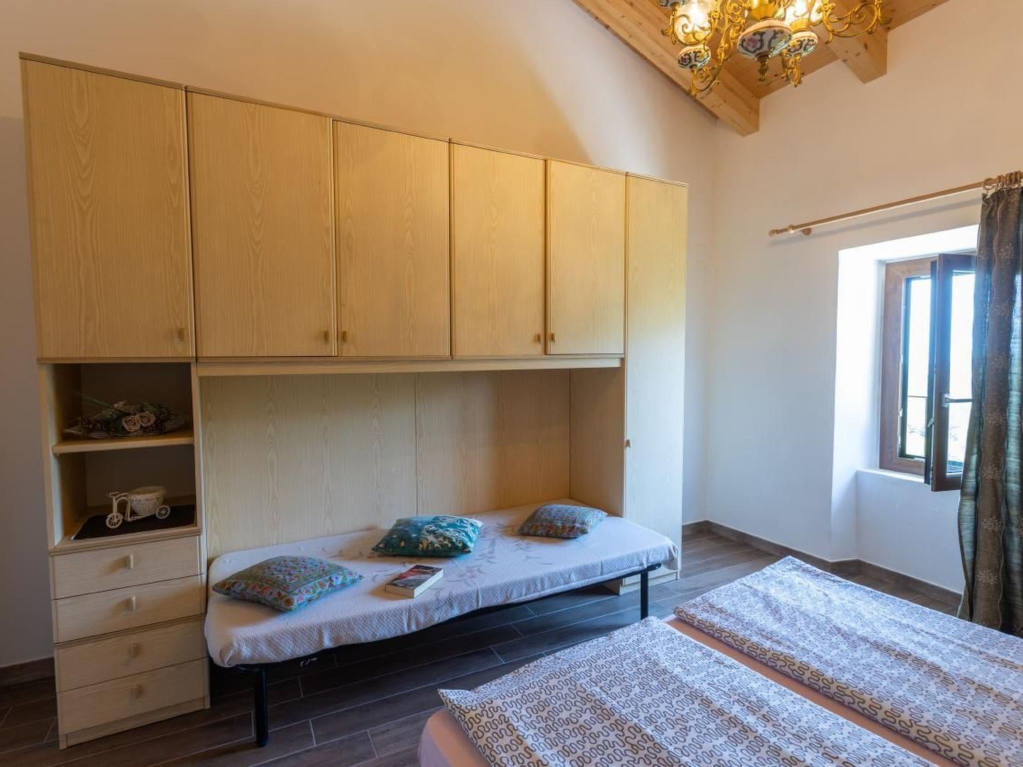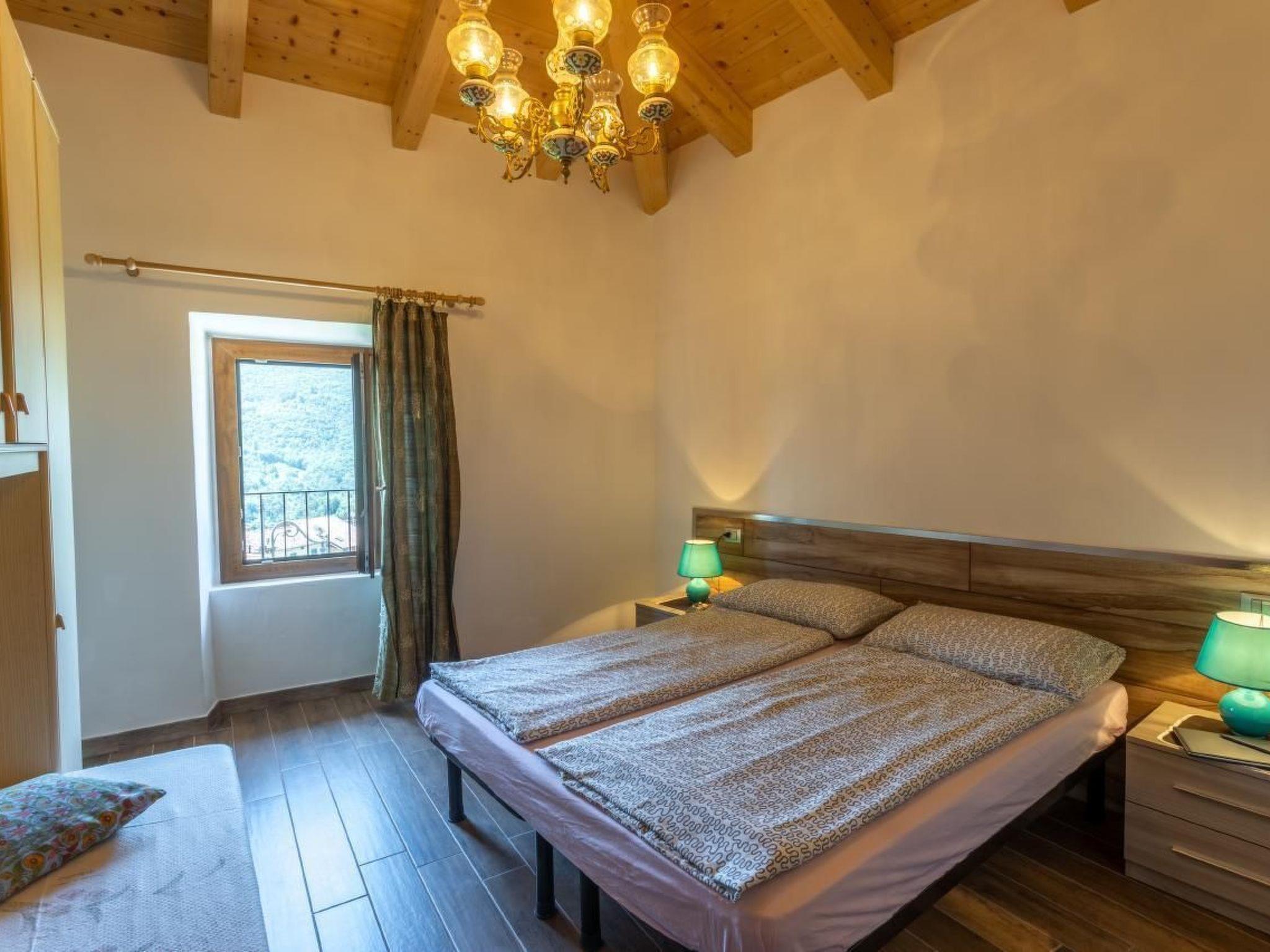 On the second floor in the attic there are 1 double bedroom + 1 double/triple bedroom + 1 bathroom with shower. Total 5/7 beds . View of the lake and Monte Baldo.