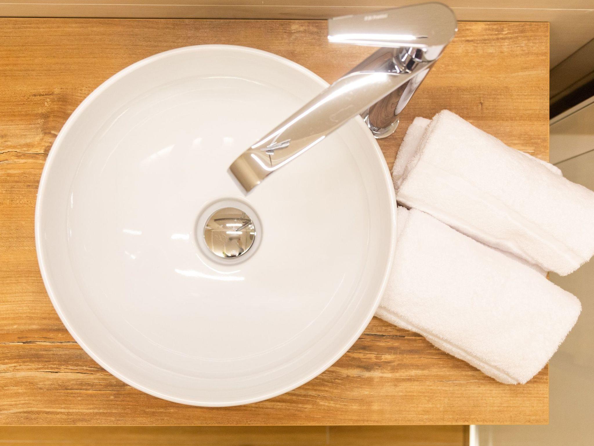 Studio flat with fully equipped kitchen, living area with satellite TV and sofa, double bed and adjacent bathroom with toilet, bidet and shower. There is air conditioning throughout the room as well as underfloor heating.