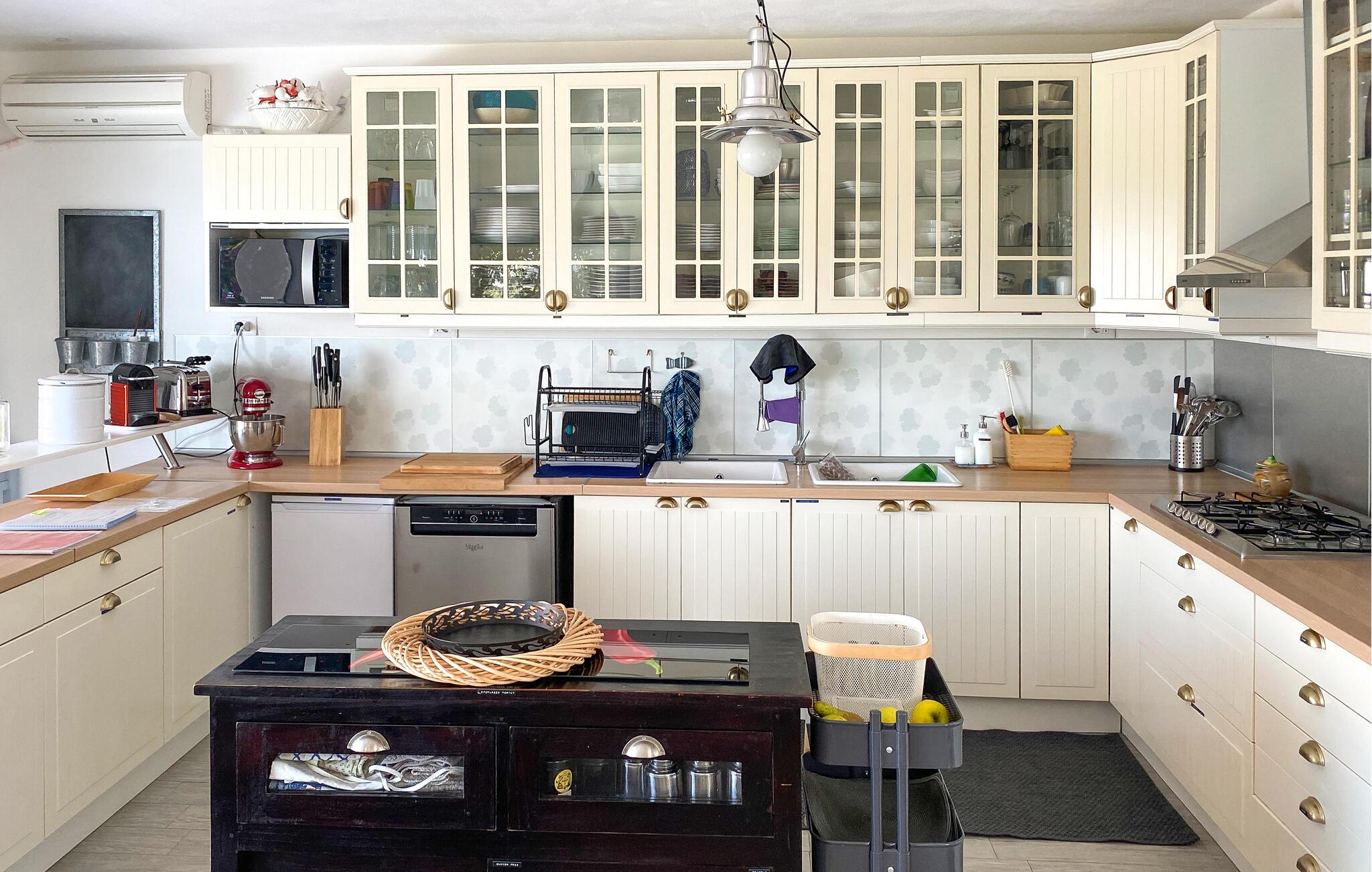 Dæk op til morgenmad på den smukke terrasse og nyd den betagende udsigt over øgruppen med syv øer. Snup en frisk dukkert i den afskærmede pool og nyd middelhavsatmosfæren med livlige grillmiddage.
