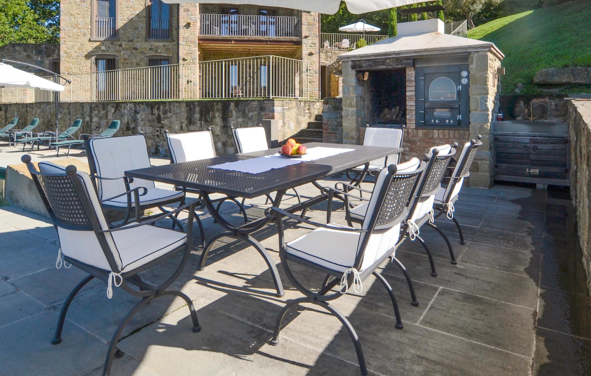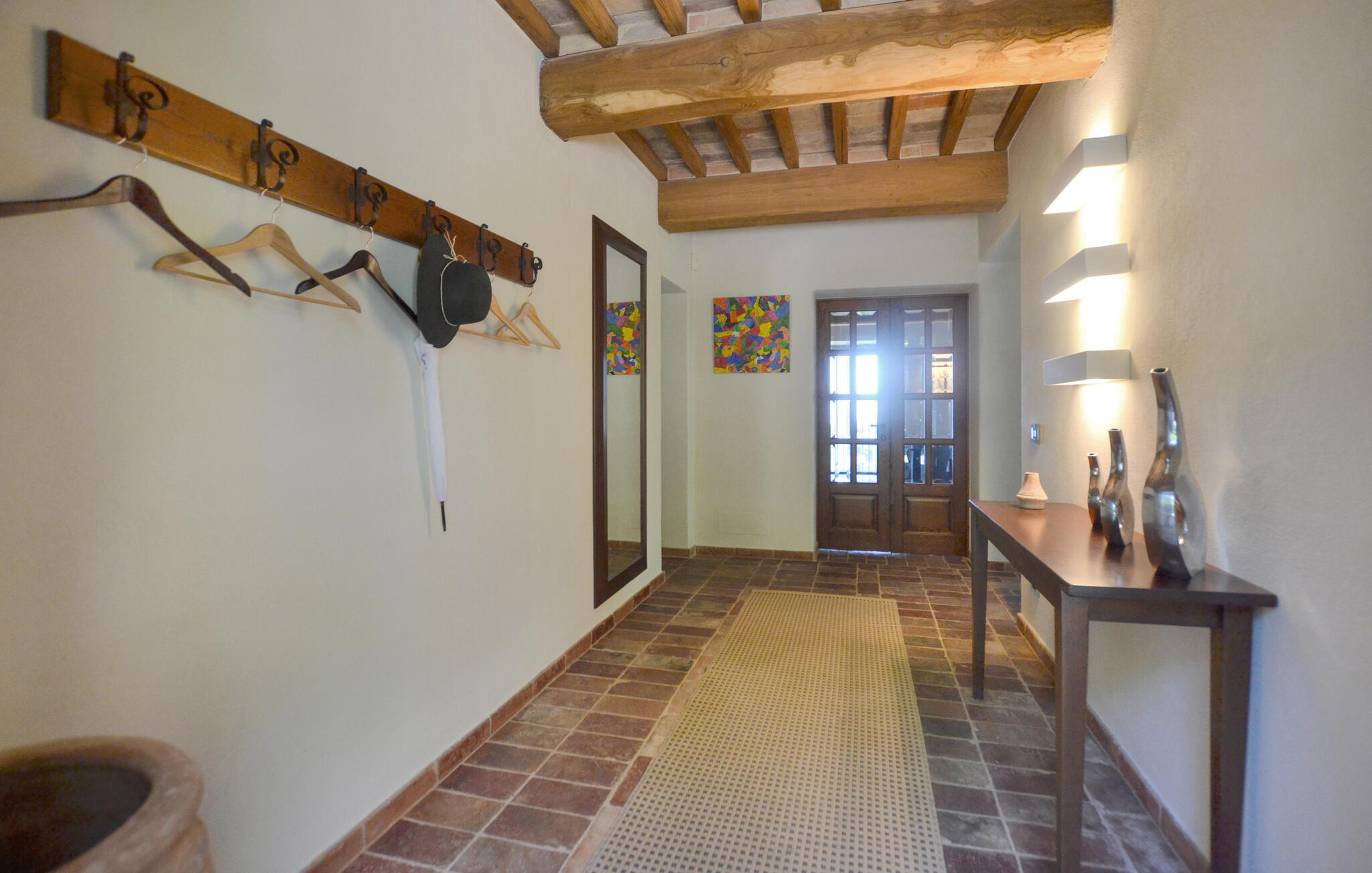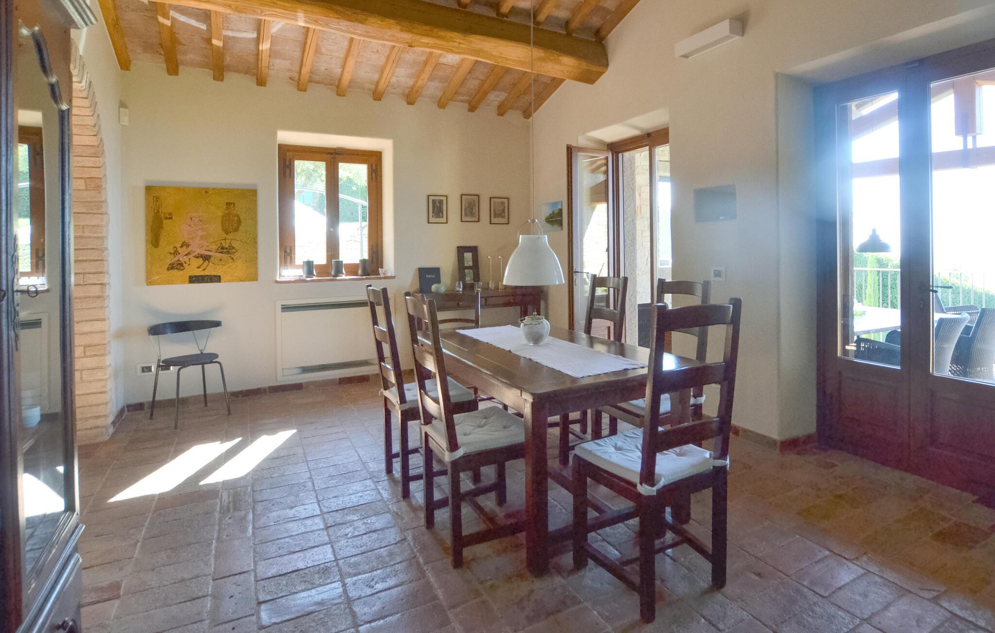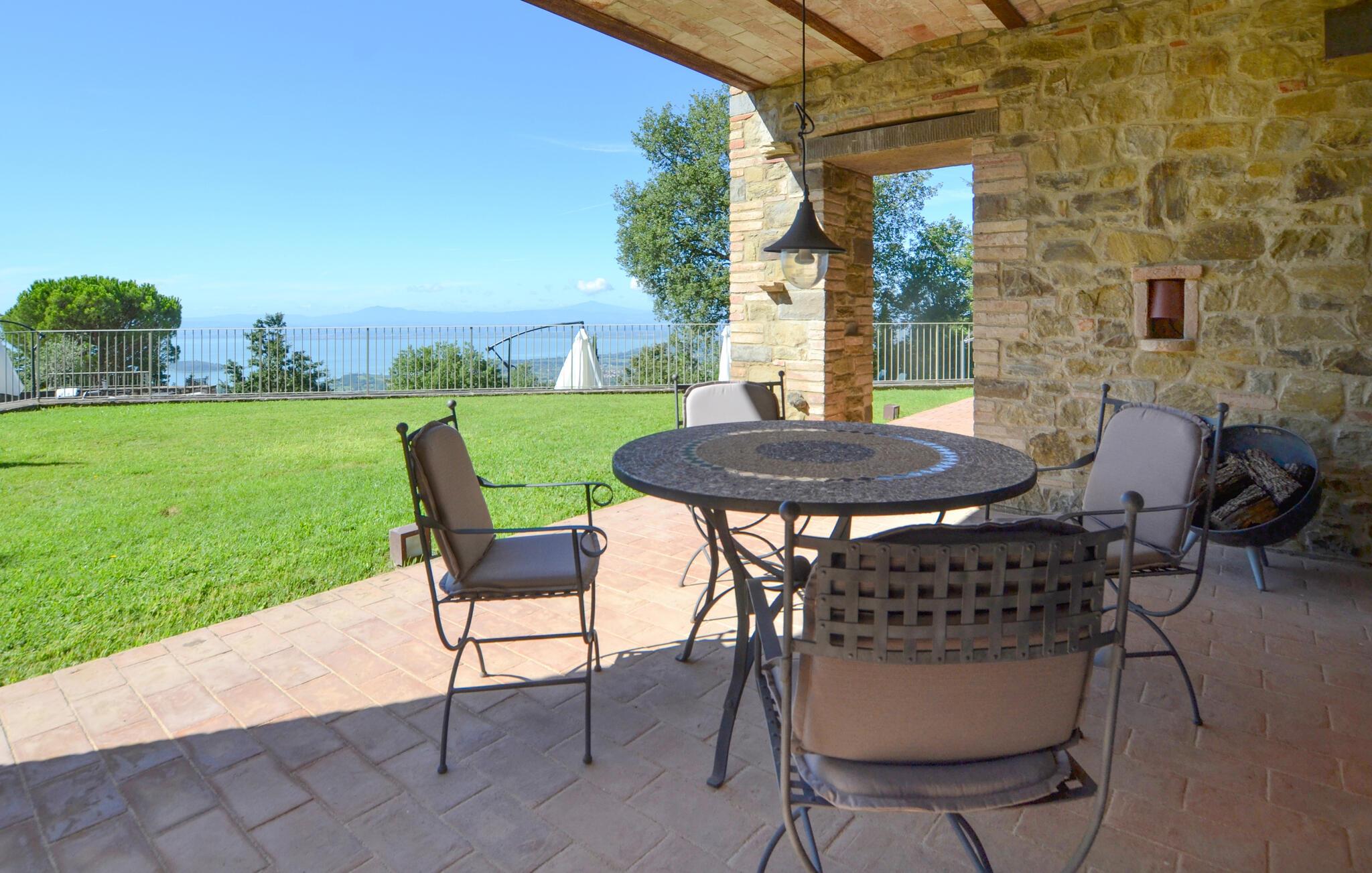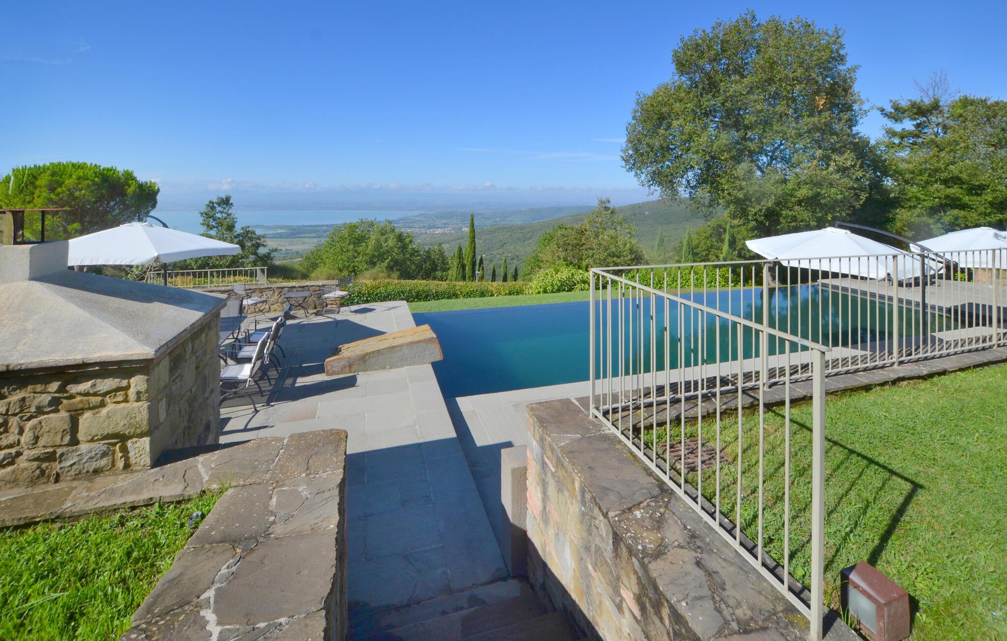 Denne rummelige ejendom har en privilegeret beliggenhed med en betagende udsigt over Trasimenosøen. Det stilfulde og rummelige interiør byder på en perfekt blanding af rustik charme og moderne komfort. Fremkald kulinariske lækkerier, nyd lange måltider med toscansk vin, og udnyt tiden sammen til stimulerende samtaler i en unik atmosfære.