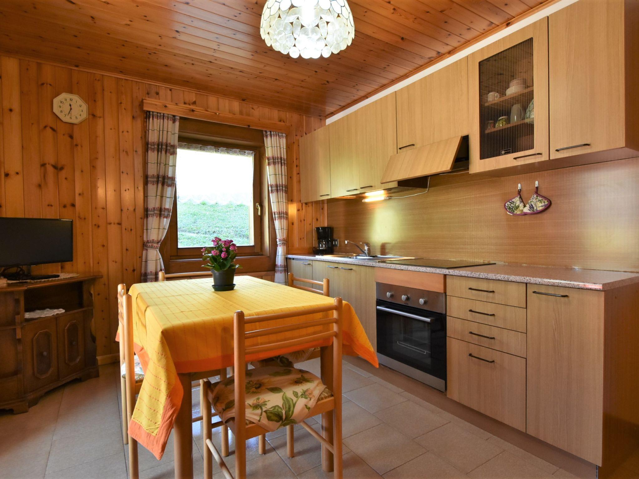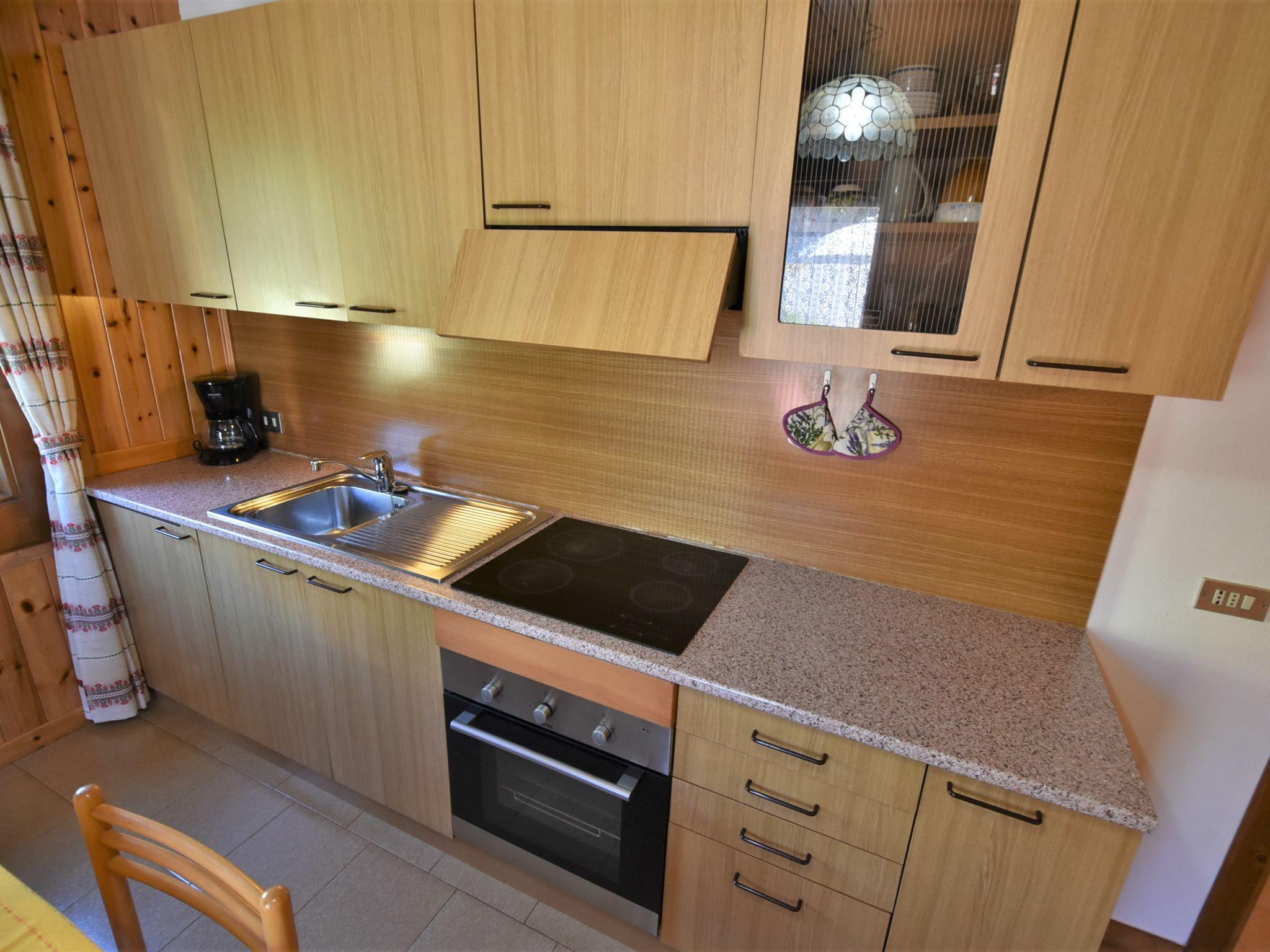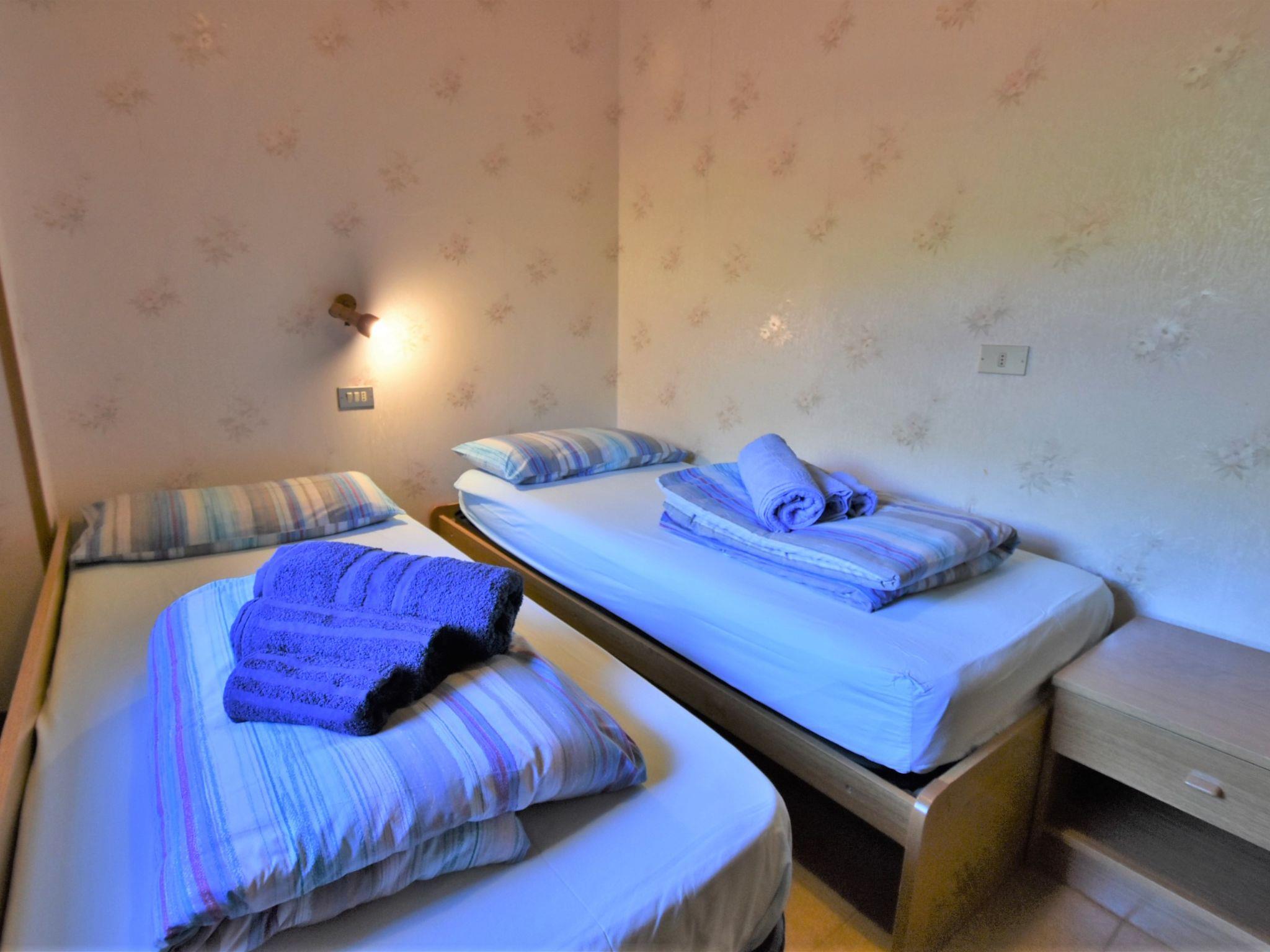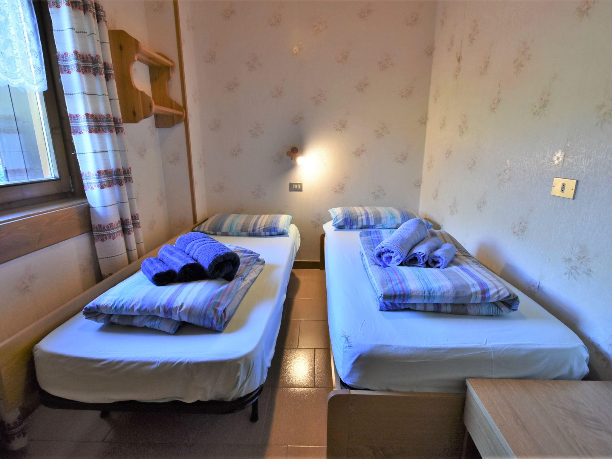 3-room apartment 45 m2 on 1st floor, south-west facing position. Practical and comfortable furnishings: living/dining room with dining table and TV (flat screen). Exit to the terrace. 1 double bedroom. 1 room with 1 bed and 1 pull-out bed. Kitchenette (oven, 4 ceramic glass hob hotplates, kettle, electric coffee machine). Exit to the terrace. Shower/bidet/WC. Heating. Large terrace 30 m2. Terrace furniture, barbecue, deck chairs (4). Panoramic view of the mountains and the valley. Facilities: baby cot. Internet (WiFi, free). Please note: suitable for families. Non-smokers only. IT014037B4387OOGQL