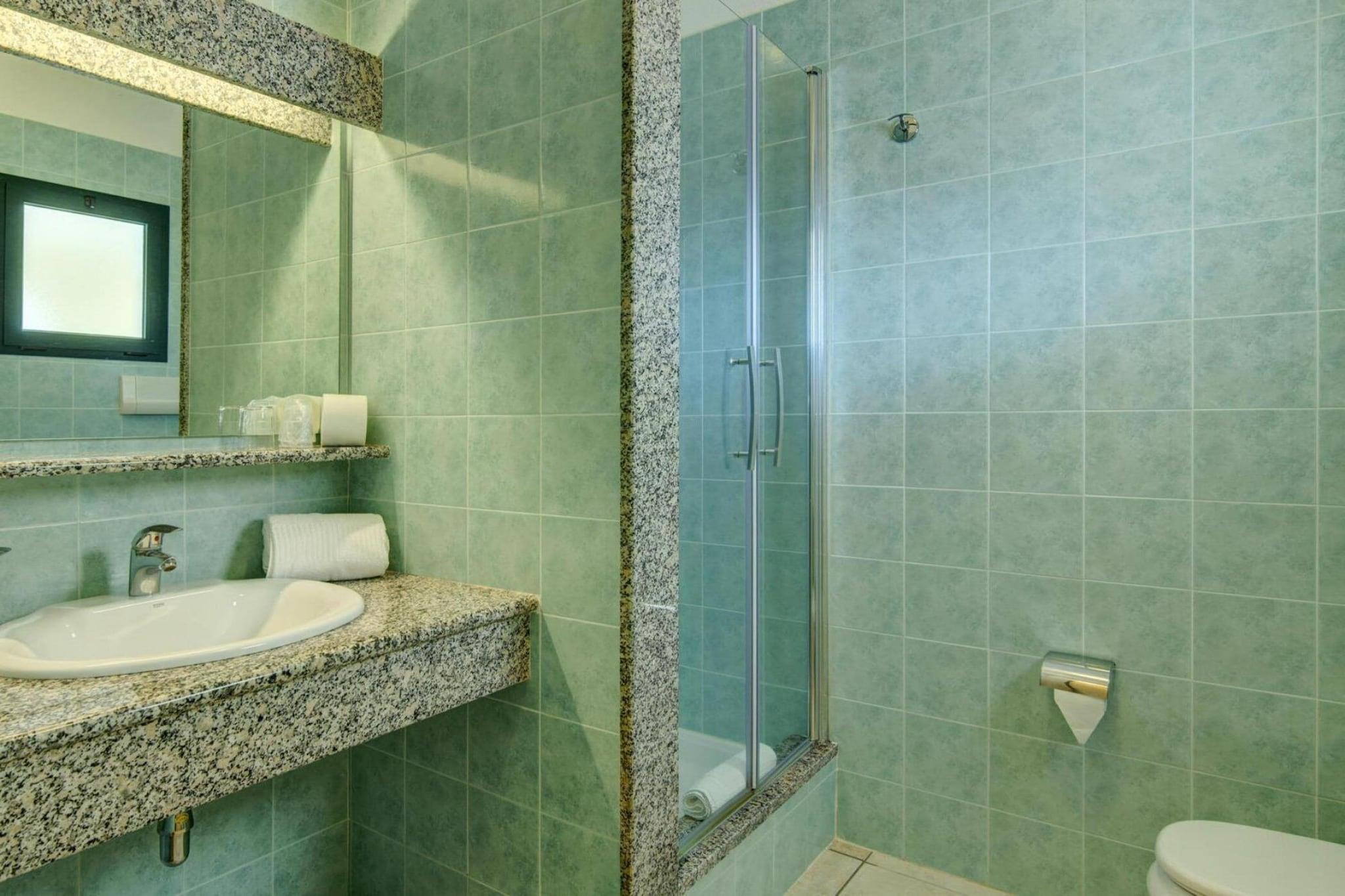 Stue(dobbeltseng eller 2 enkeltsenge Senge, Fjernsyn(Ingen tyske TV-kanaler)), tekøkken(spisebord, kogeplade(Komfur med fire kogeplader, gas), elkedel, brødrister, mikrobølgeovn, køle-fryseskab), badeværelse(bruser, toilet, bidet, føntørrer), Grill center, Reception, Vaske faciliteter, Parkering, Legeområde, Have, tørretumbler(deles med andre gæster, betalt), bruser(deles med andre gæster, udendørs), vaskemaskine(deles med andre gæster, betalt), balkon eller terrasse, varme(gennem aircondition), klimaanlæg, terrasse(deles med andre gæster), havemøbler, solstole, Parasol, swimmingpool(deles med andre gæster, 7 x 7 m.), baby crib(paid)
