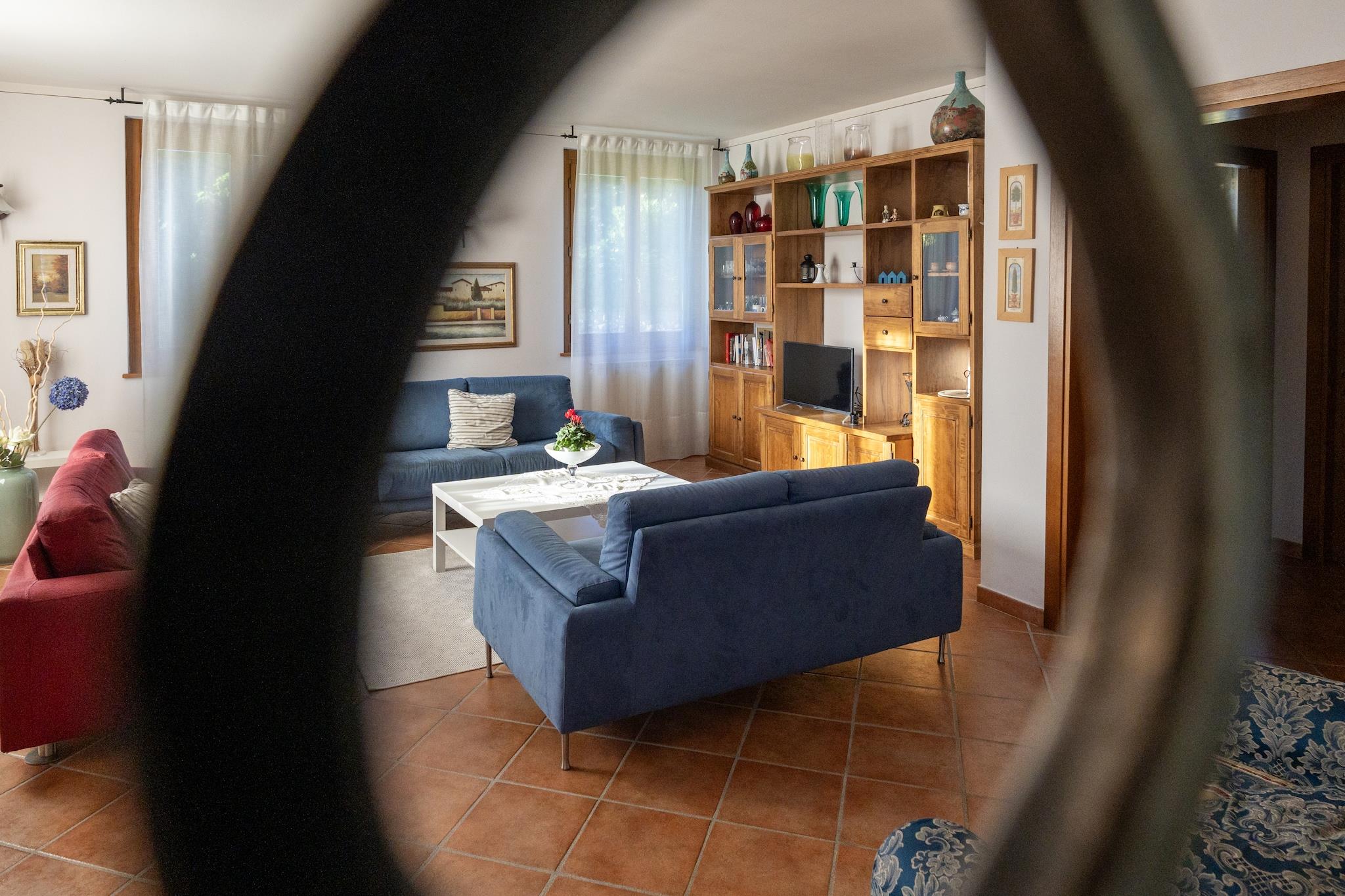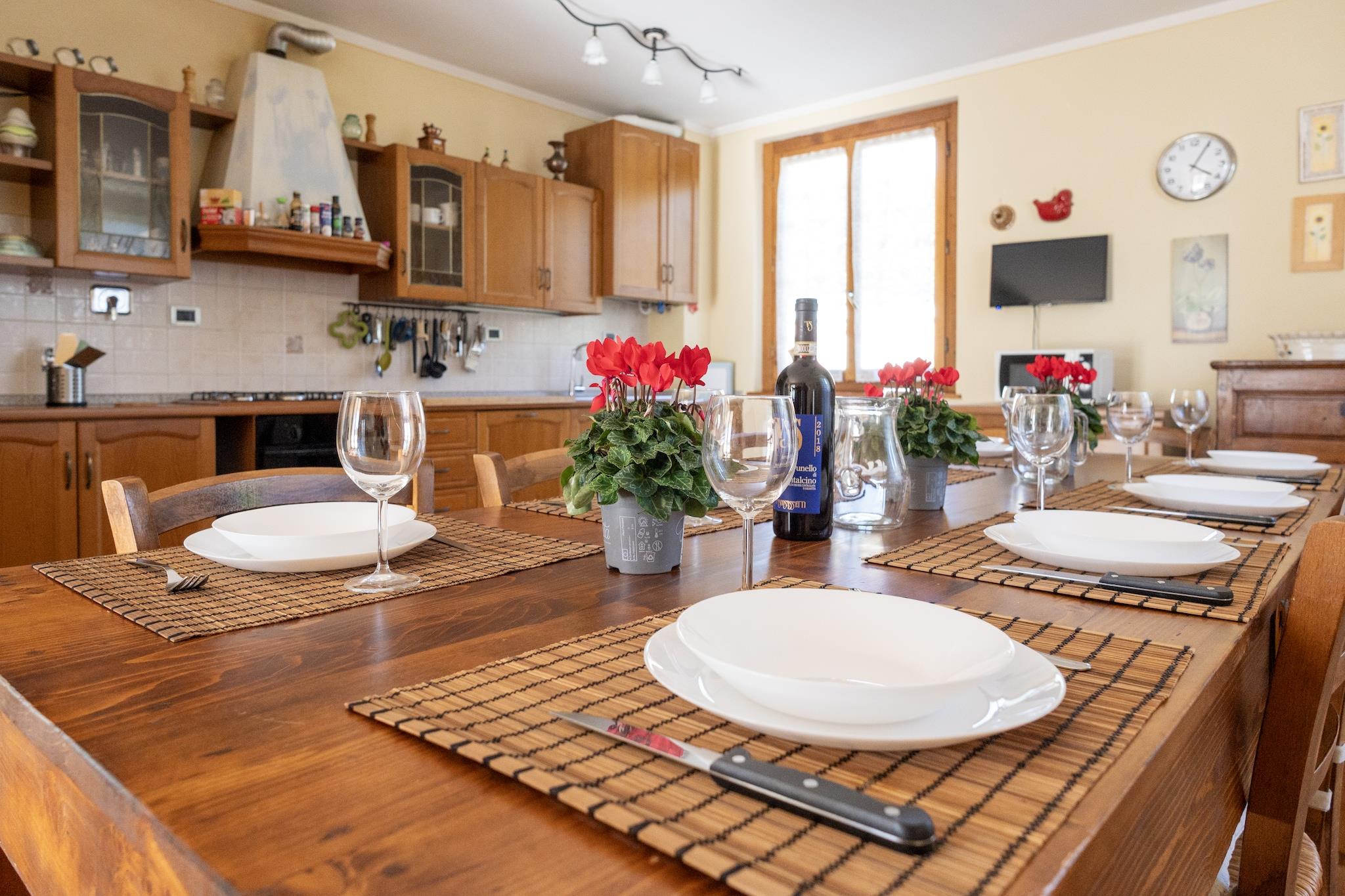 This 4-bedroom villa in Loro Ciuffenna has a private swimming pool to cool down on a hot day. It is panoramically situated in the Tuscany hills, between Arezzo and Florence. The villa is perfect for a large family, two smaller families, or a group of up to 8 friends. _x000D_ _x000D_ In the direct surrounding, you will find many typical villages with lovely little restaurants and authentic architecture. At 2 km, you have the town center for enjoying the street life and strolling. Restaurants and supermarkets are also at 2 km. The lake at 5 km is great to enjoy sunsets. From here, it is easy to reach the towns of Florence, Arezzo, and Siena._x000D_ _x000D_ The villa offers all the comfort and has ample space for everyone. It has a private fenced garden for relaxing or playing with children. You can cook delicious recipes in the large kitchen and even bake cakes or pizzas. There are a verandah and a balcony to enjoy your meals. There is a garage. A children's bed and a high chair are provided on request.