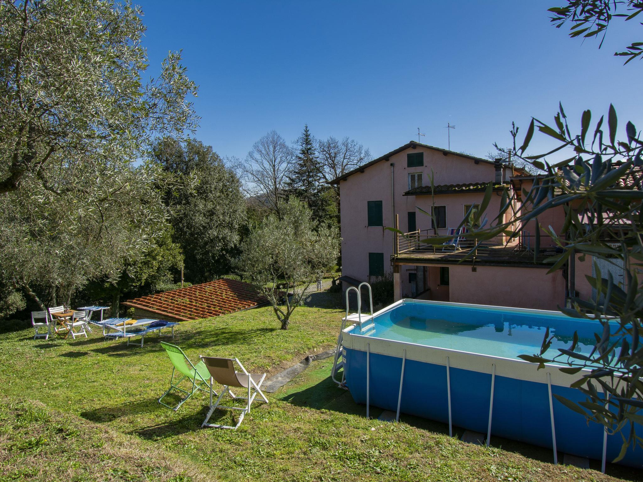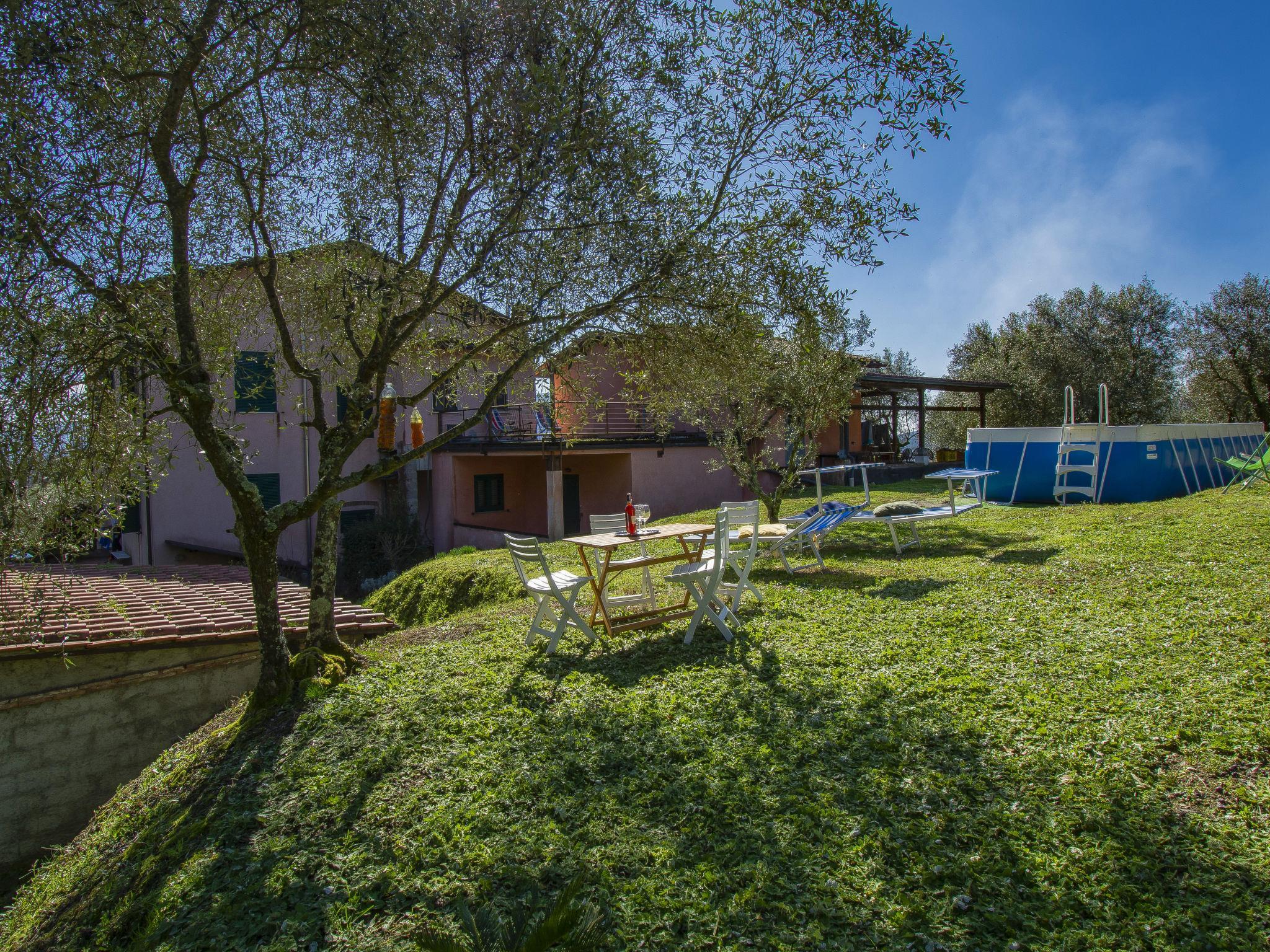 Cosy, comfortable country house "La Pergola", detached, built in 1888, renovated in 2021, surrounded by trees and fields. In the district of San Macario in Monte, outside the resort, 6 km from the centre of Lucca. Private: natural garden 1'000 m2, beautiful garden to relax, pond, swimming pool (above ground) with privacy (7 x 4 m, depth 120 - 120 cm, seasonal availability: 01.May. - 30.Sep.). Garden furniture, barbecue, children's playground (slide, swing). In the house: WiFi, central heating system, washing machine, heating available only from 15.Nov. - 15.Apr.. Motor access (300 m via unmade road). Parking (for 3 cars). Grocery 1 km, supermarket 3 km, restaurant 1 km, bus stop 450 m. Nearby attractions: Lucca 6 km, Pisa 25 km, Viareggio 20 km, Firenze 85 km. Please note: part of the house is closed and unoccupied. Owner lives in separate semi-detached house. The owner has a dog.