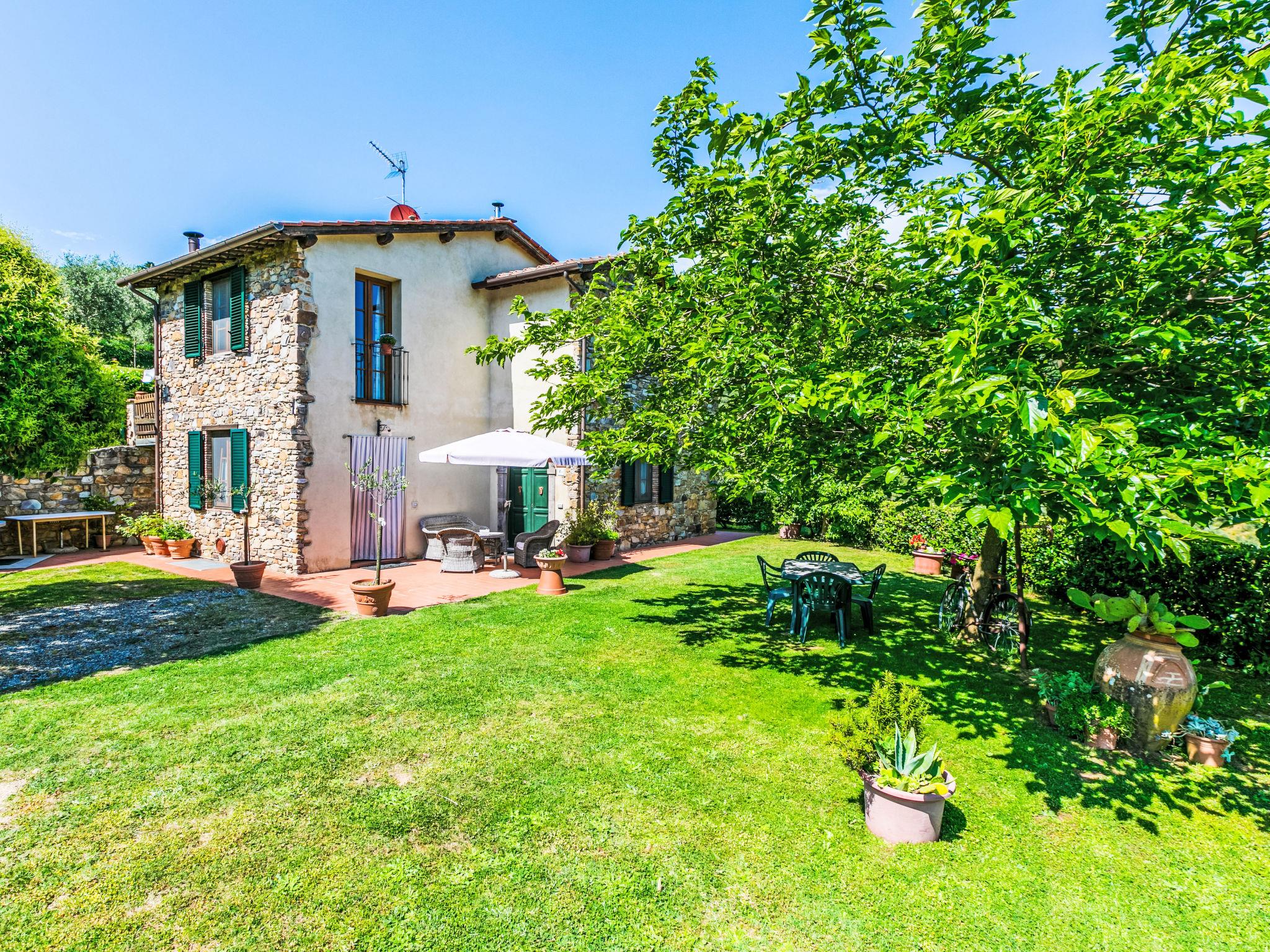 Villa "Luana", 400 m a.s.l., detached, renovated in 2006. In the hamlet Ruota 18 km from the centre of Lucca, 30 km from the centre of Pisa, 70 km from the centre of Firenze, in a secluded, quiet, sunny position on top of a hill, 30 km from the sea. Private: garden, swimming pool (7 x 3 m, depth 100 cm, seasonal availability: 27.Apr. - 04.Oct.). Outdoor shower, garden furniture, barbecue. Heating available only from 01.Nov. - 07.Apr.. Motor access to the house (100 m via unmade road). Parking at the house. Grocery 3 km, supermarket 9 km, bus stop 400 m, sandy beach "Tirrenia" 47 km, thermal baths "San Giuliano Terme" 24 km. Nearby attractions: Pontedera 20 km, Montecatini 30 km, Lajatico 42 m, Pistoia 42 km, Viareggio 46 km. Please note: car recommended. Animals in the neighbourhood.