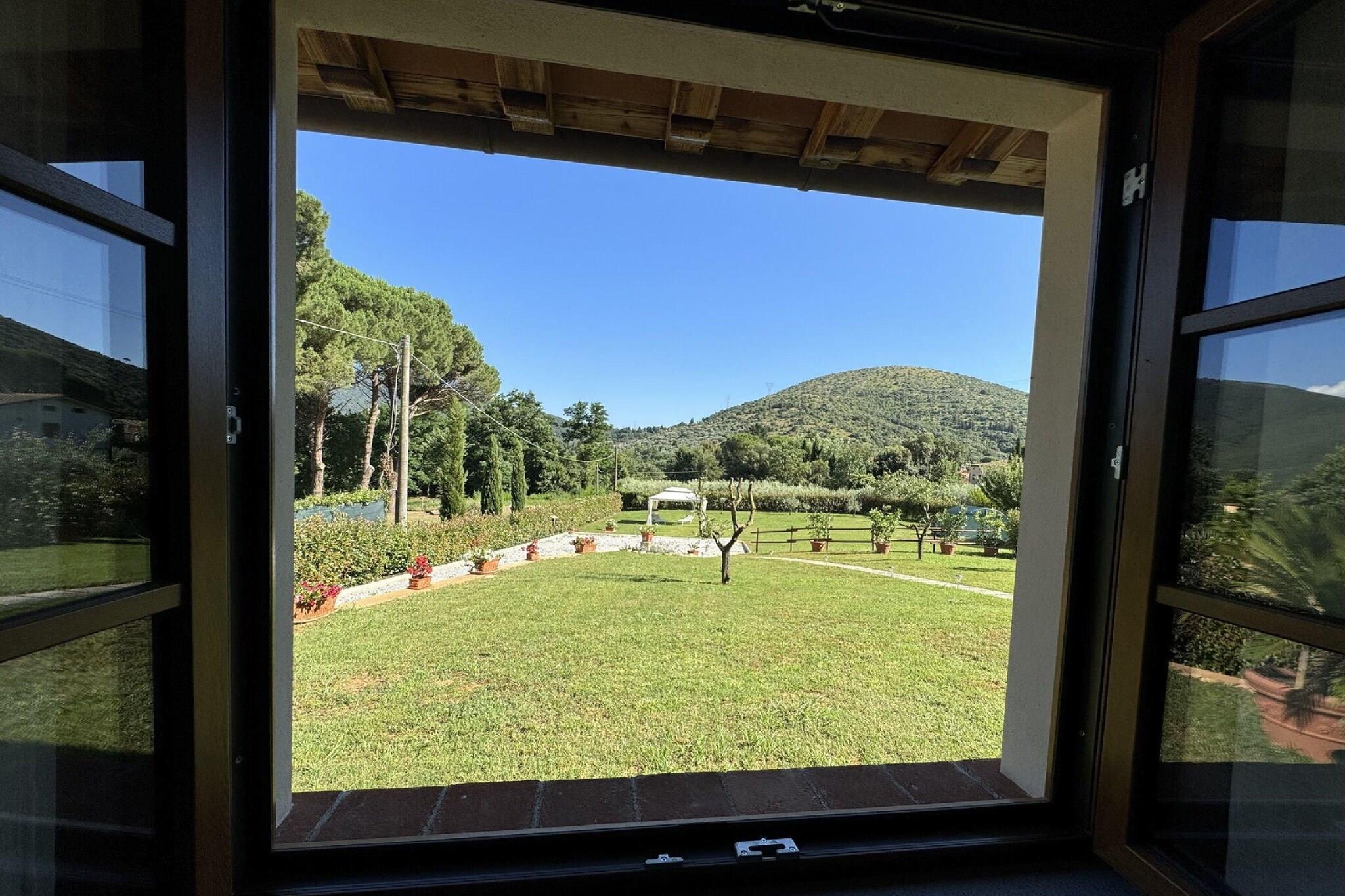 This dreamlike house is located in the village of S. Maria del Giudice - between Lucca and Pisa. A lot of comfort for little money! The house has been completely renovated with a fantastic new kitchen and beautiful bathrooms. The house has a charging station for electric cars, a super well-kept garden, air conditioning, Wi-Fi and a safe. Shopping facilities and restaurant within walking distance! Entrance on the ground floor within a covered outdoor area. Large living room with a sofa, TV, passage to a kitchen with table, chairs, exit onto the covered outdoor area, well-equipped kitchen with: Induction hob, oven, fridge-freezer, dishwasher, microwave, coffee machine, marble sink, 2 double bedrooms with wardrobe, 1 bathroom with shower, WC, bidet, washbasin, stairs to the lower floor: 1 bathroom with shower, WC, bidet, washbasin, laundry room with washing machine and tumbler, tavern (not available). Stairs to the 1st floor: large bedroom with 3 single beds and 1ensuite bathroom with shower, WC, bidet, washbasin. A cot and high chair are also available on request. The covered outdoor area is furnished with a rattan sofa and rattan armchairs, table and chairs, outdoor lighting. There is also a gazebo with sunbeds and a large barbecue. The garden is very well maintained! The house is furnished with great attention to detail, in a modern style, to make the guests' stay as pleasant as possible. There are terracotta floors on the ground floor and parquet flooring on the 1st floor. This house is an ideal solution for people with a small handicap, as practically everything is on the ground floor. Wi-Fi included, parking within the property. Recommendations and day trips: The owners provide 3 mountain bikes and 1 racing bike on payment. The owners also offer (on payment) a transfer from the airport to the holiday home or other day trips (English-speaking driver). A public swimming pool, tennis club and golf driving ranch are located nearby (Vicopelago 6 km). There is even a riding stable in the village of S. Maria del Giudice. There are numerous hiking trails in the vicinity of the house. For the fitter ones, we recommend the "Passo di Dante", a wonderful vantage point with panoramic views onto Pisa and the sea. This house is an ideal starting point for visiting the most important art cities in Tuscany such as Pisa, Lucca, Florence and Siena. The white sandy beaches of the Versilia coast are just a stone's throw away.