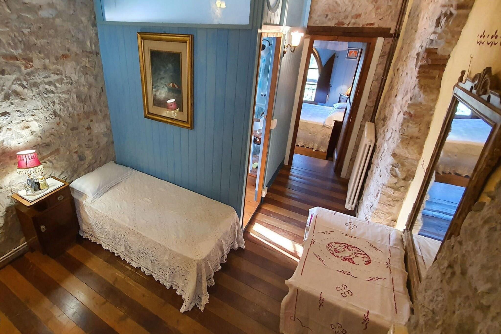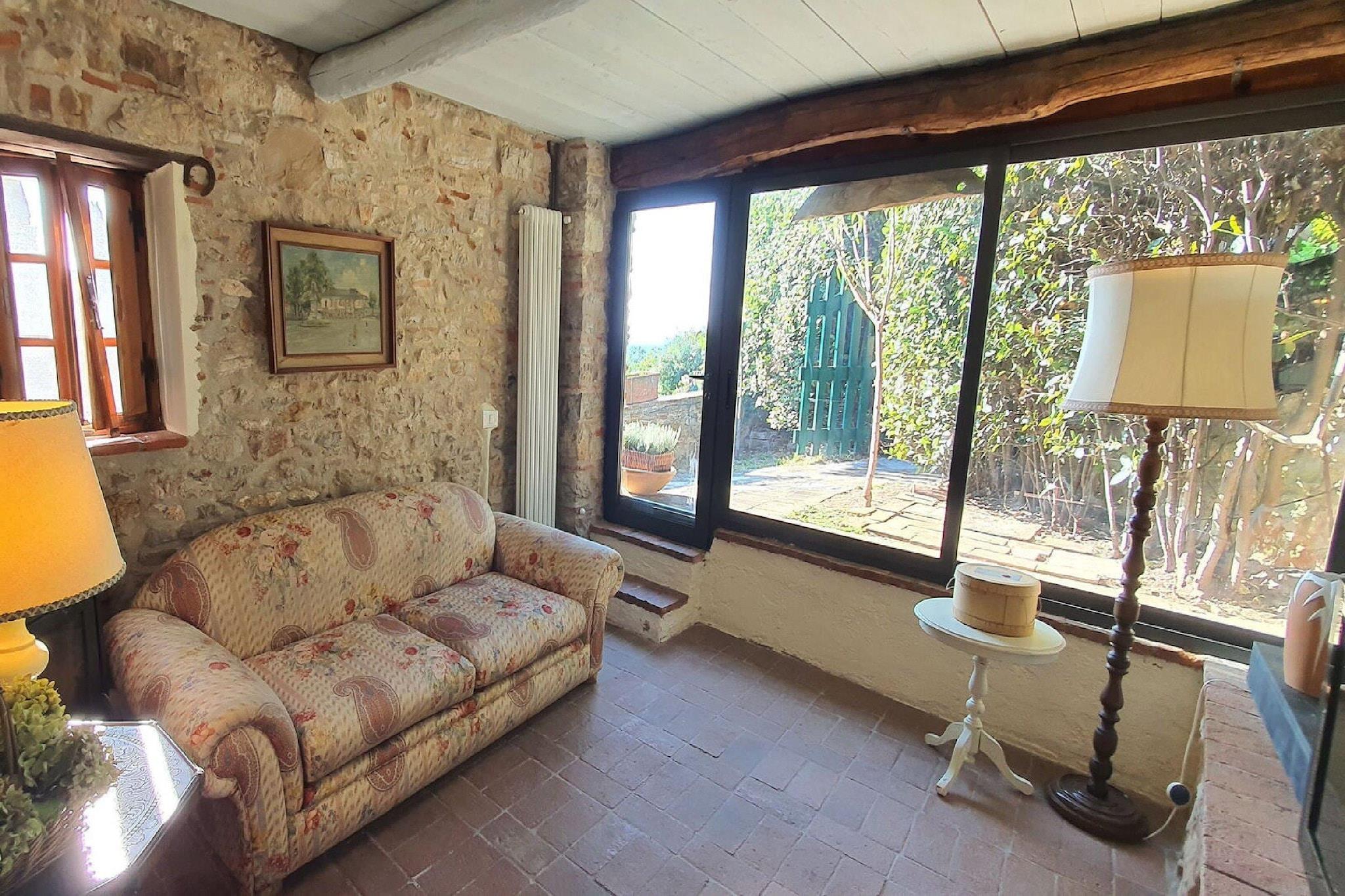 This beautiful semi-detached stone house is located in the tiny medieval hamlet of Chiatri and offers breathtaking views over the coasts of the Versilia and the lake of Massaciuccoli. The hamlet of Chiatri is known also as the summer residence of the famous composer Giacomo Puccini. The wonderful surrounding nature invites to have relaxing strolls and makes it possible to live fully the contact with the nature of the hills which separate Lucca from the sea. This house is perfect to visit the lake of Massaciuccoli, the Natural Park of Migliarino – San Rossore and to go to the beach to Torre del Lago Puccini or the famous beaches of Versilia. Music lovers can attend the famous Puccini festival which takes place every year in July and August. The Natural Park of the Alpi Apuane and art cities like Pietrasanta, Lucca, Pisa and Florence can be easily reached by car and can be visited in a day trip. Several cycle paths, which are suitable for racing bikes and/or mountain bikes, start from Chiatri and lead to Lucca on one side or to the seaside on the other. They are the ideal option for those who want to alternate a visit to the mountains to one to the sea. There are also panoramic 5 km walking paths, which are suitable for everyone. This house has been renovated with great care and consists of a beautiful panoramic terrace (c.ca 4 sqm) with a small table and chairs and of a c.ca 100 sqm garden with gazebo, rattan sofas and armchairs, table, chairs and barbecue, private wooden above ground octagonal swimming pool (5.60 m x 3.70 m, 1.20 m depth) with deck chairs. The garden offers breathtaking views on the lake of Massaciuccoli and the coasts of the Versilia. The house consists of: on the ground floor, entrance in the kitchen with stovetop, small electric oven, microwave, fridge/freezer, toaster, filter coffee brewer, dining table, living room with sofa, SAT Tv. On the first floor: walk-through room with 1 single sofa-bed, 1 twin bedroom, 1 double bedroom, 1 bathroom with shower, toilet, bidet and basin. The house is furnished with great care in country style with antique furnishings and great attention to upholstery and furnishing details, wooden beamed ceilings, terracotta floorings, pastel-coloured walls and some walls in exposed stone. Parking available near the house. Washing machine in the boiler room next to the house entrance, fans at disposal, mosquito nets, safe and Wi-Fi connection.