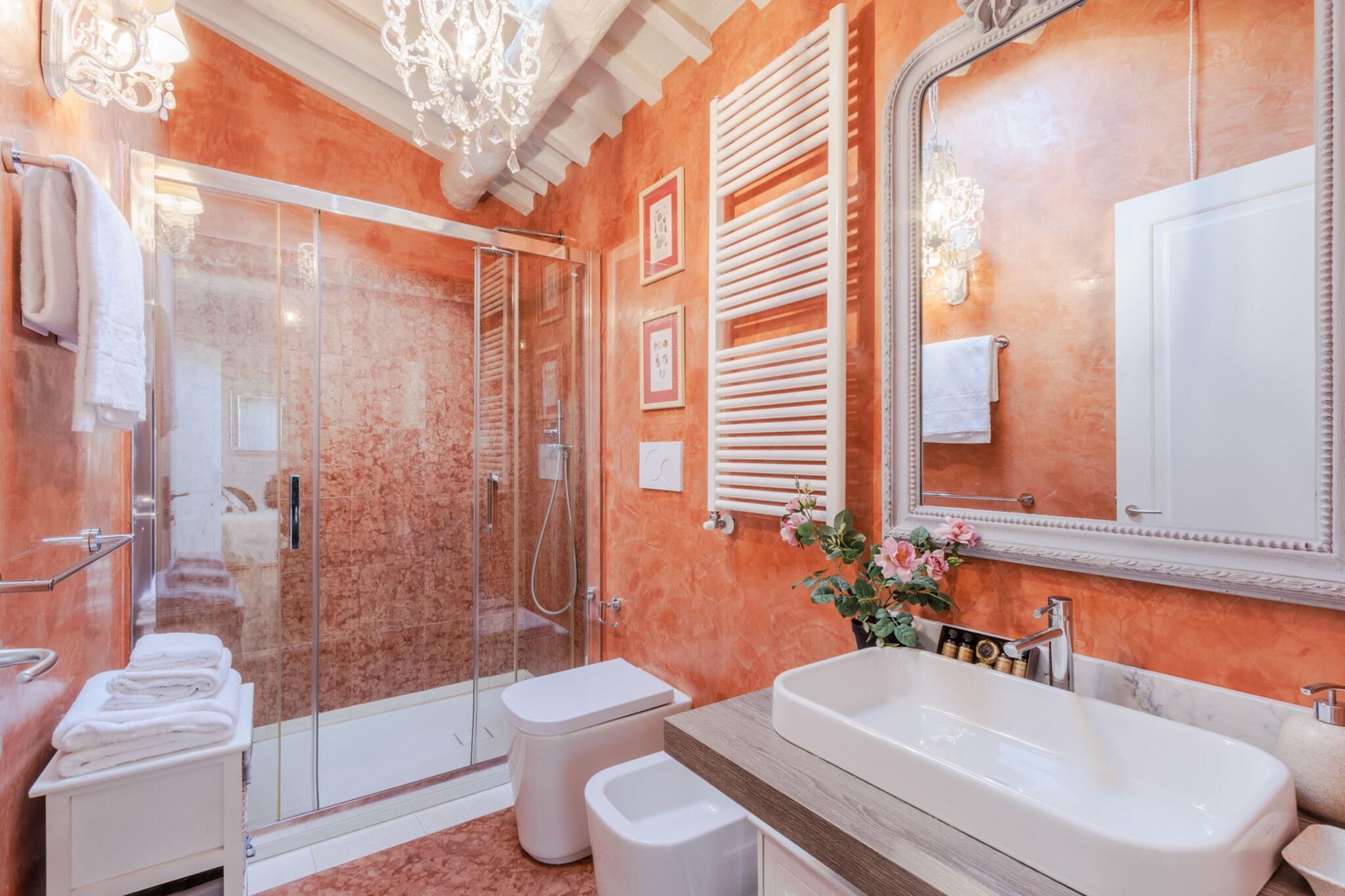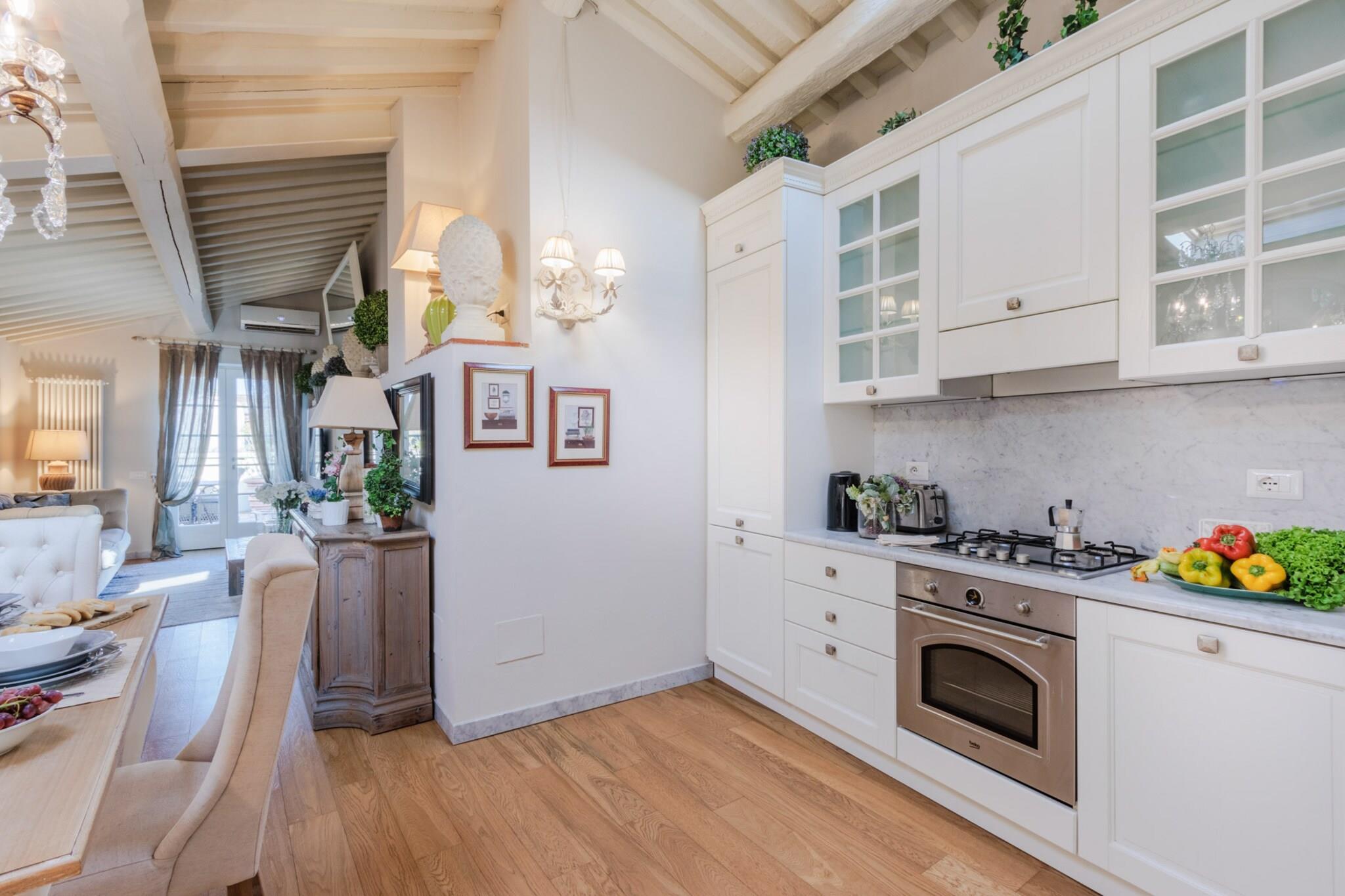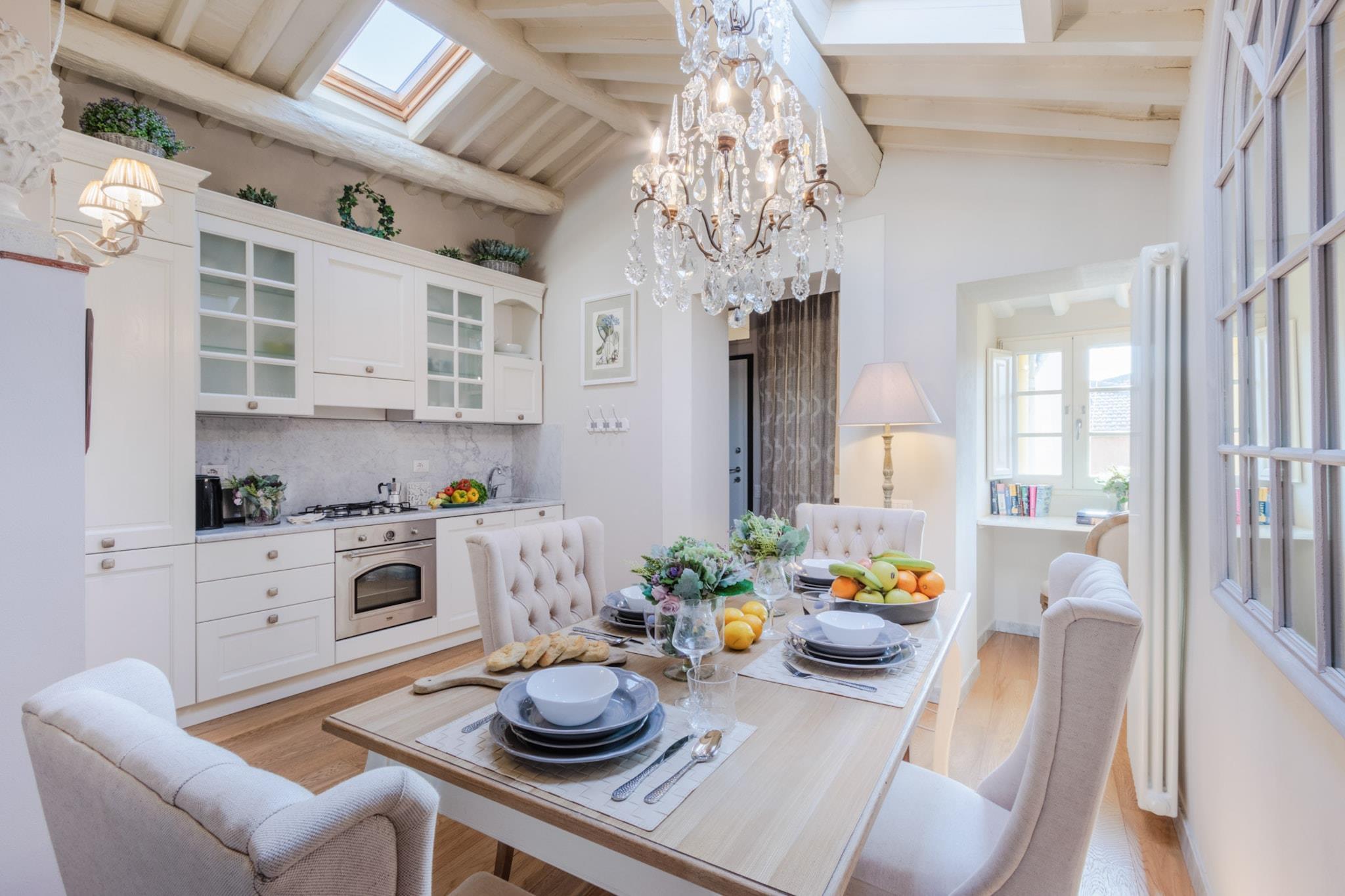 Velkommen til Casa Laura, en moderne og romantisk penthouselejlighed i hjertet af Lucca, designet til kræsne rejsende, der søger komfort og stil. Dette udsøgte tilflugtssted har en rummelig, møbleret terrasse, der tilbyder en betagende udsigt over de århundrede gamle træer i den tilstødende botaniske have. Beliggende på den fredfyldte Via Del Giardino Botanico tilbyder Casa Laura en malerisk oase inden for de gamle bymure, bekvemt placeret nær Luccas katedral og den fortryllende botaniske have. Casa Laura er omhyggeligt renoveret af en talentfuld arkitekt og er et fristed for to gæster med et kongeligt soveværelse med kingsize-seng og to moderne badeværelser for ultimativ komfort og bekvemmelighed. Det fuldt udstyrede køkken giver mulighed for nem spisning derhjemme, mens gratis Wi-Fi og aircondition bidrager til luksusen under dit ophold. Lejlighedens design lægger vægt på afslapning, med en indbydende opholdsstue, der åbner ud til den store terrasse, perfekt til at nyde den dejlige udsigt. Fordyb dig i Luccas charme fra denne førsteklasses beliggenhed, hvor historiske mure og frodige træer skaber en fortryllende baggrund. Kun en kort gåtur væk kan du udforske den nærliggende katedral, deltage i dejlige Puccini-koncerter og forkæle dig selv med lækre godbidder fra Pasticceria Dianda, et af de bedste konditorier i byen. For nemheds skyld er der gratis parkering en afslappet 10-minutters gåtur væk, med sikker parkering kun 5 minutter fra lejligheden. Oplev Luccas charme med et luksuriøst ophold på Casa Laura, din rolige flugt i denne smukke by. Bemærk: Turistskat skal betales på ejendommen.