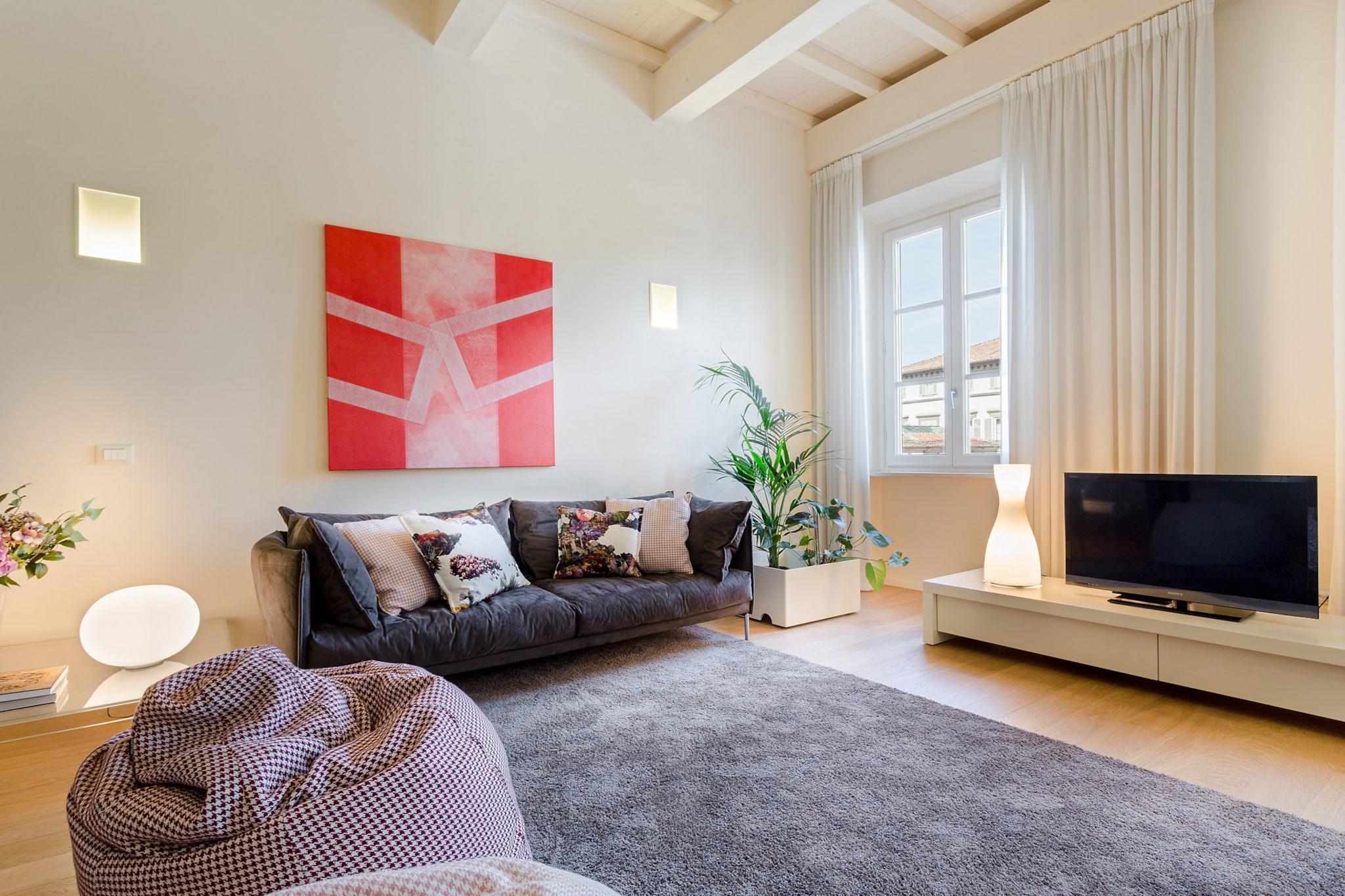 Træd ind i en rummelig og eksklusiv moderne lejlighed på anden sal i en historisk bygning med elevator, ideelt placeret på den pulserende Piazza San Giovanni. Denne exceptionelle bolig præsenterer en problemfri blanding af moderne luksus og tidløs elegance, omhyggeligt designet af en visionær arkitekt. Hver detalje i dette hjem udstråler sofistikering, hvilket gør det til et perfekt tilflugtssted for dem, der søger en raffineret boligoplevelse. Den store stue fungerer som hjertet i lejligheden med to store vinduer, der tilbyder en fantastisk udsigt over Piazza San Giovanni. Fra dette udsigtspunkt kan gæsterne beundre kirkefacadens indviklede marmor, et vidnesbyrd om Luccas rige arkitektoniske arv, der går tilbage til 1400-tallet. Salonens stilfulde møbler og indbydende atmosfære skaber en elegant atmosfære, ideel til underholdning eller blot at nyde pladsens skønhed. Ved siden af salonen ligger et topmoderne storkøkken udstyret med topmoderne apparater og generøs bordplads, perfekt til kulinariske bestræbelser. Natområdet omfatter to rummelige suiter, der hver især ligner luksuriøs hotelindkvartering og tilbyder rolige tilflugtssteder til hvile og afslapning. De omhyggeligt designede badeværelser har eksklusive armaturer, der forbedrer badeoplevelsen. Et af soveværelserne kan også prale af en charmerende balkon med fortryllende udsigt over Luccas katedral, hvilket skaber et idyllisk sted til afslappende morgenmad eller romantiske aftener. Denne exceptionelle lejlighed er et sandt eksempel på raffineret livsstil, der giver beboerne mulighed for at fordybe sig i den betagende charme af Luccas arkitektoniske vidundere. Bemærk: Turistskat skal betales på ejendommen.