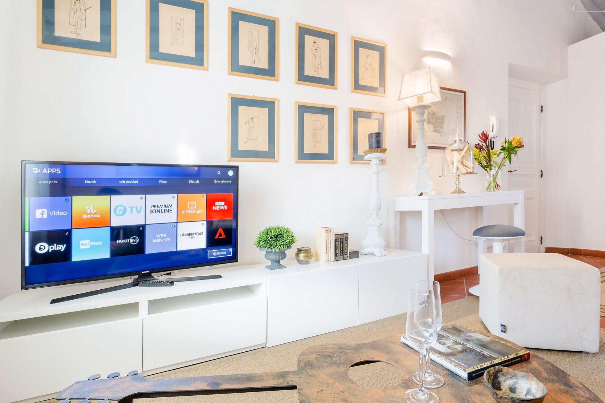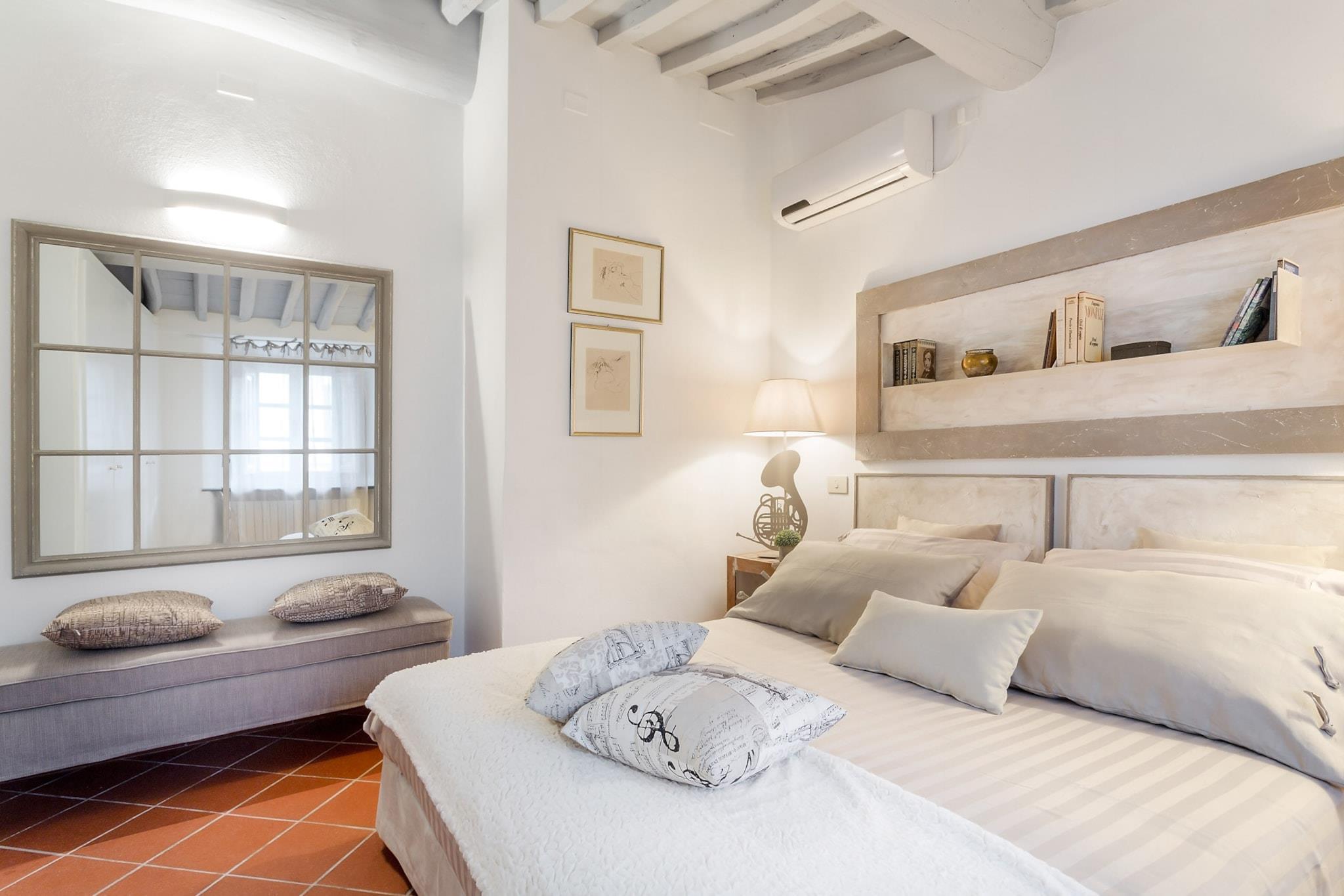 Denne lejlighed på øverste etage ligger gemt væk i en stille indre gårdhave kun få skridt fra den ikoniske Torre Guinigi og Via Fillungo og tilbyder et roligt tilflugtssted i hjertet af Luccas historiske centrum. Ideelt beliggende langs Via Sant'Andrea er den perfekt placeret til at udforske byens største attraktioner, samtidig med at den tilbyder fred og ro til afslappende aftener. Lejligheden er ideel til op til fire gæster og har et soveværelse og en komfortabel dobbelt-sovesofa i opholdsstuen. Indvendigt er lejligheden både stilfuld og funktionel med et fuldt udstyret køkken, en spiseplads og et moderne badeværelse med indbygget bruser. En privat udendørs siddeplads tilføjer et unikt præg og tilbyder et dejligt sted at slappe af, mens man lytter til musik fra det nærliggende Boccherini-konservatorium. Gennemtænkte faciliteter inkluderer aircondition, pålidelig Wi-Fi, et fladskærms-tv med internationale kanaler og vaskeri. Denne lejlighed, der er gennemsyret af historie, husede engang køkkenerne tilhørende den adelige Fatinelli-familie, hvor Santa Zita boede og arbejdede i 60 år i det 13. århundrede. Santa Zitas, der er æret som Luccas elskede skytshelgen, giver stadig genlyd af sin historie om ydmyghed og generøsitet i byen i dag. Hendes arv, der fejres hver april med blomstergaver, gør opholdet i dette historiske hjem til en dybt kulturel og spirituel oplevelse. Bemærk: Turistskat skal betales på ejendommen.