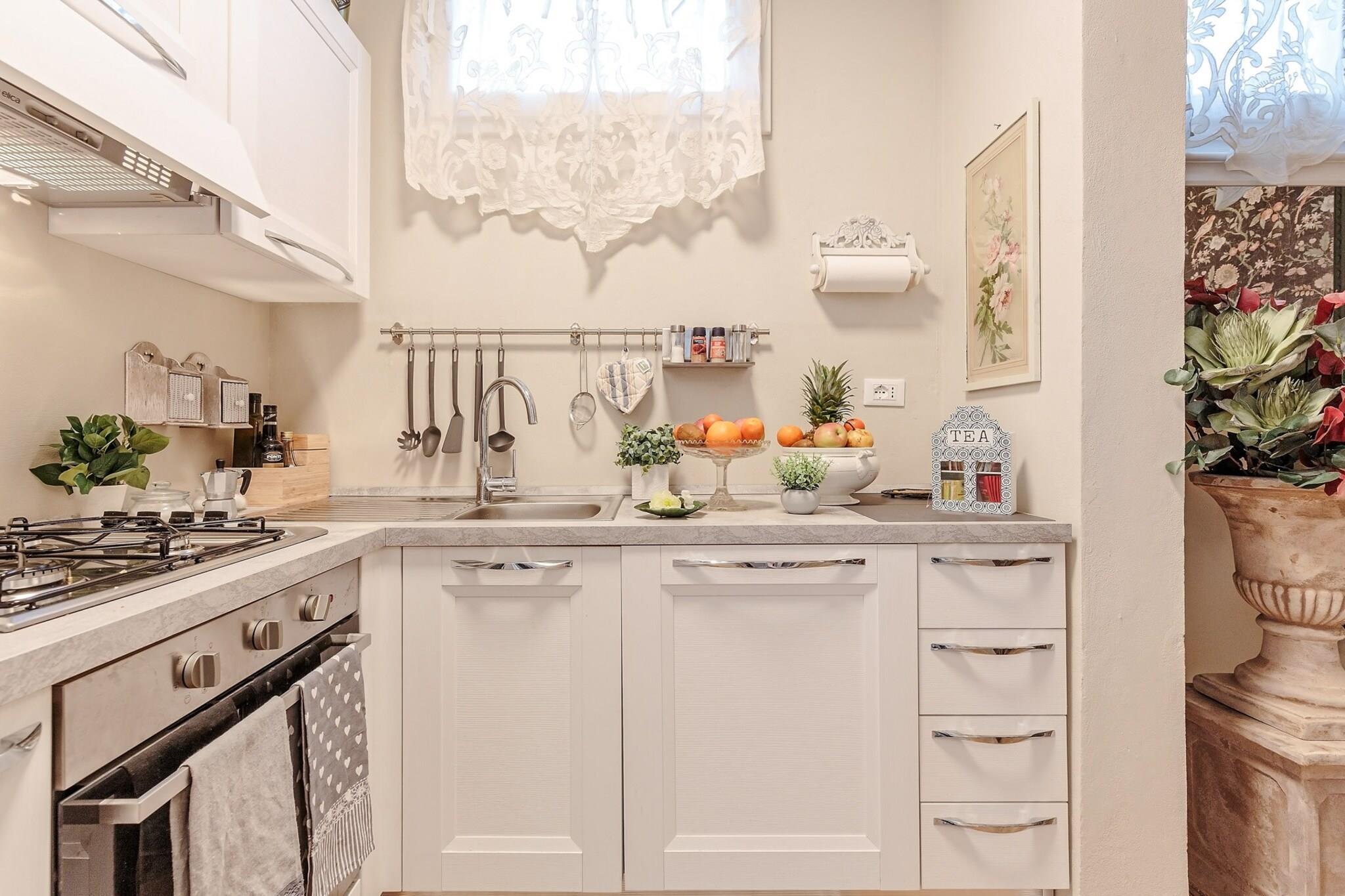 Oplev indbegrebet af romantik og afslapning i denne fortryllende lejlighed på øverste etage, beliggende inden for Luccas historiske bymure. Dette charmerende feriested med to soveværelser har en rummelig terrasse, der tilbyder betagende udsigt over hemmelige indre haver og århundrede gamle cedertræer. Denne perle er bekvemt placeret nær det travle vejkryds med Via Fillungo og placerer dig lige i hjertet af byen, samtidig med at den sikrer en rolig og rolig atmosfære væk fra trafik- og shoppingstøj. Træd udenfor og find dig selv fordybet i et pulserende kvarter fyldt med dejlige oste-, pasta- og delikatesseforretninger samt fremragende restauranter. En gratis parkeringsplads er bekvemt placeret kun fem minutters gang væk, mens lejligheden ligger kun få skridt fra en busterminal og en kort gåtur fra Lucca Station. Mange af byens hovedattraktioner ligger inden for en nem 2 til 5 minutters gang, hvilket gør den til en perfekt base for at udforske alt, hvad Lucca har at byde på. Indenfor er lejligheden et paradis af komfort og stil med møbler af høj kvalitet, der er designet til at forbedre dit ophold. Den solbeskinnede terrasse, der er tilgængelig fra køkkenet, tilbyder en fantastisk udsigt over Luccas hustage og antikke haver og er møbleret med siddepladser, herunder et spisebord, sofa og lænestole - ideelt til spisning under åben himmel eller blot til afslapning med et glas vin. En række moderne faciliteter sikrer en behagelig oplevelse, herunder pålidelig Wi-Fi, et tv og et fuldt udstyret køkken med alt, hvad der er nødvendigt for at tilberede lækre måltider, hvilket gør denne lejlighed til et unikt og uforglemmeligt tilflugtssted i en af Italiens mest maleriske byer. Bemærk: Turistskat skal betales på ejendommen.