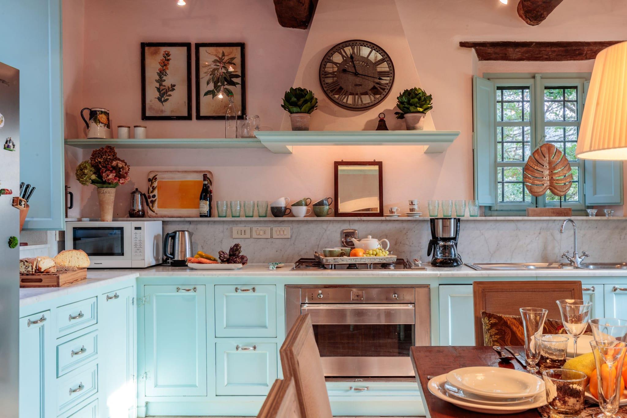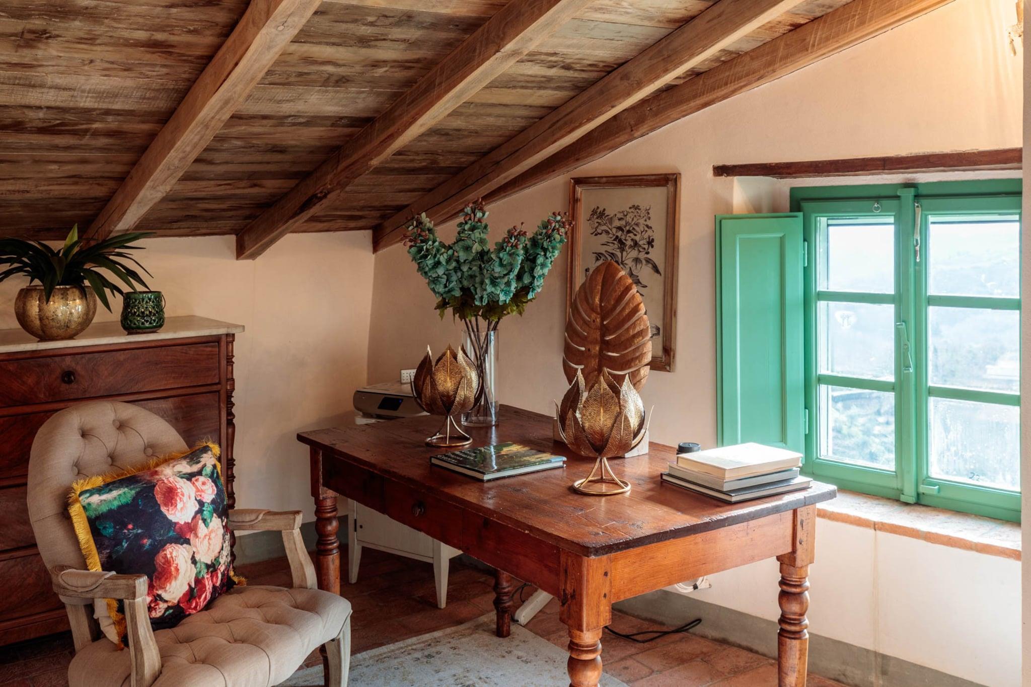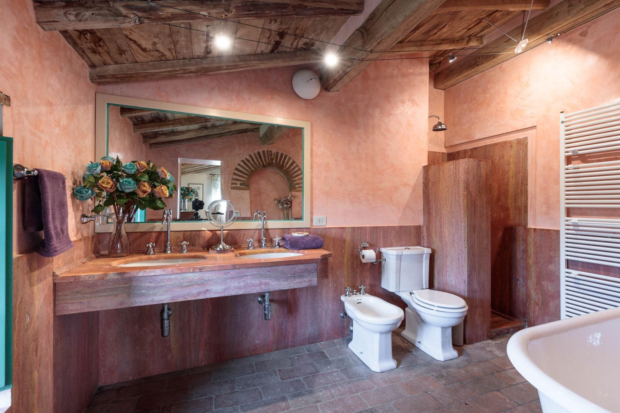 Beliggende mellem olivenlunde og bølgende bakker tilbyder dette rolige toscanske tilflugtssted en betagende udsigt over Luccas middelalderlige skyline og mod de fjerne bjerge ved havet. Ejendommen er omgivet af haver fyldt med urter, blomster og frugttræer og har en privat infinity-pool og tennisbane, mens naturskønne vandrestier starter lige uden for døren. Villaens traditionelle stukfacade og rustikke interiørdetaljer - hvælvede buer, trælofter og stengulve - skaber en varm, tidløs atmosfære, der smelter problemfrit sammen med de naturlige omgivelser. Villaen er perfekt til familier eller vennegrupper og strækker sig over tre etager og inkluderer fem smukt indrettede soveværelser, fire badeværelser og generøse fællesområder. Nyd at samles omkring det store køkkens antikke spisebord eller spise udendørs under den blåregnbeklædte veranda med udsigt over Freddana-dalen. De airconditionerede soveværelser i master-etagen og soveværelserne på øverste etage giver ekstra komfort, mens det udendørs marmorbord, lysthusloungen og siddepladserne ved poolen indbyder til lange, afslappende dage i solen. Kun 15 minutter fra Lucca og 25 fra strandene ved den versilianske riviera finder beliggenheden en perfekt balance mellem fredfyldt landlig atmosfære og adgang til kultur, vin og hav. Oplev charmerende middelalderlandsbyer, tag et madlavningskursus, nyd lokale vine, eller planlæg dagsture til Firenze, Pisa og Cinque Terre. En kort køretur ned ad bakken bringer dig til butikker, et bageri og restauranter. Bemærk venligst: Adgang via en typisk toscansk grusvej, og af sikkerhedsmæssige årsager er ejendommen ikke egnet til børn under seks år. Bemærk: Turistskat skal betales på ejendommen.