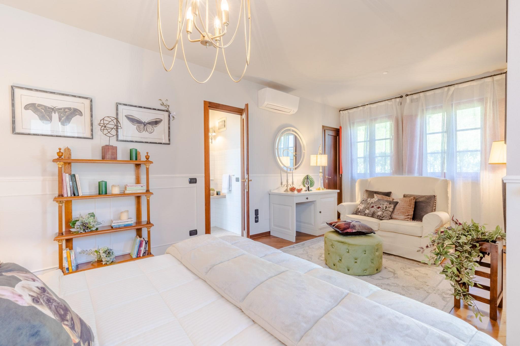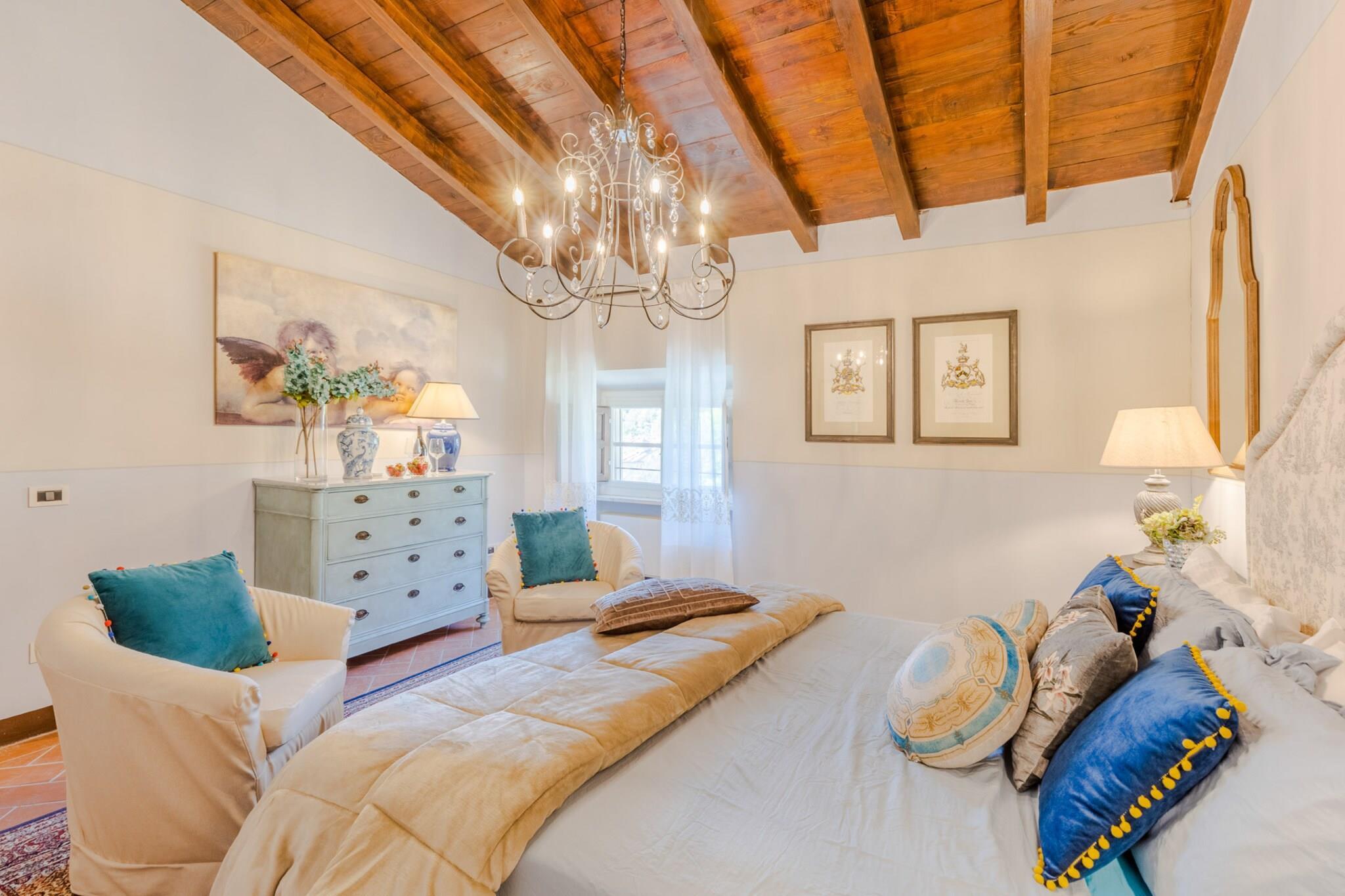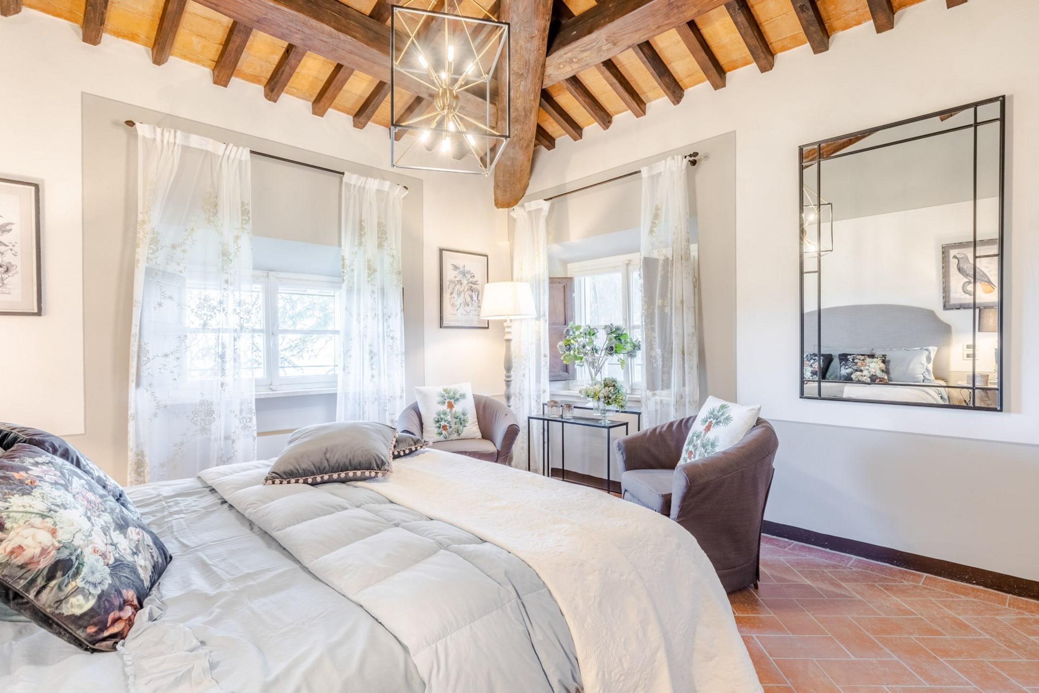Villa Borbone ligger i de bølgende bakker over Lucca og er et roligt tilflugtssted, der blander toscansk arv med underspillet elegance. Beliggende på en hektar med velplejede haver og olivenlunde, tilbyder denne restaurerede del af en renæssancevilla fra det 15. århundrede en betagende udsigt over Luccas skyline, de omkringliggende bakker og den fjerne kystlinje. Ejendommen har tre separate bygninger - hovedhuset, poolhuset med sommerkøkken og et privat suitehus - forbundet af stenstier, der giver privatliv og charme. Nyd morgenmaden i haven, slap af ved den private pool, eller nip til en cocktail i et af de udendørs opholdsområder, mens solen går ned over dalen. Indenfor er rustikke bjælker og stendetaljer parret med moderne bekvemmeligheder, herunder airconditionerede soveværelser (bortset fra det kølige, naturligt isolerede hulelignende værelse på underetagen), to fuldt udstyrede køkkener og hyggelige opholdsområder med brændeovn. Villa Borbone ligger i den rolige landsby Pieve Santo Stefano og tilbyder direkte adgang til vandrestier gennem Tenuta di Forci og en traditionel toscansk restaurant, Vipore, kun 2 km væk. Selvom en nabobolig deler bygningen, er dit privatliv sikret med separate indgange og udendørsområder. Med privat parkering og en fredelig beliggenhed kun få minutter fra Lucca er Villa Borbone den perfekte base for en afslappende toscansk ferie. Fester er ikke tilladt. Bemærk: Turistskat skal betales på ejendommen.