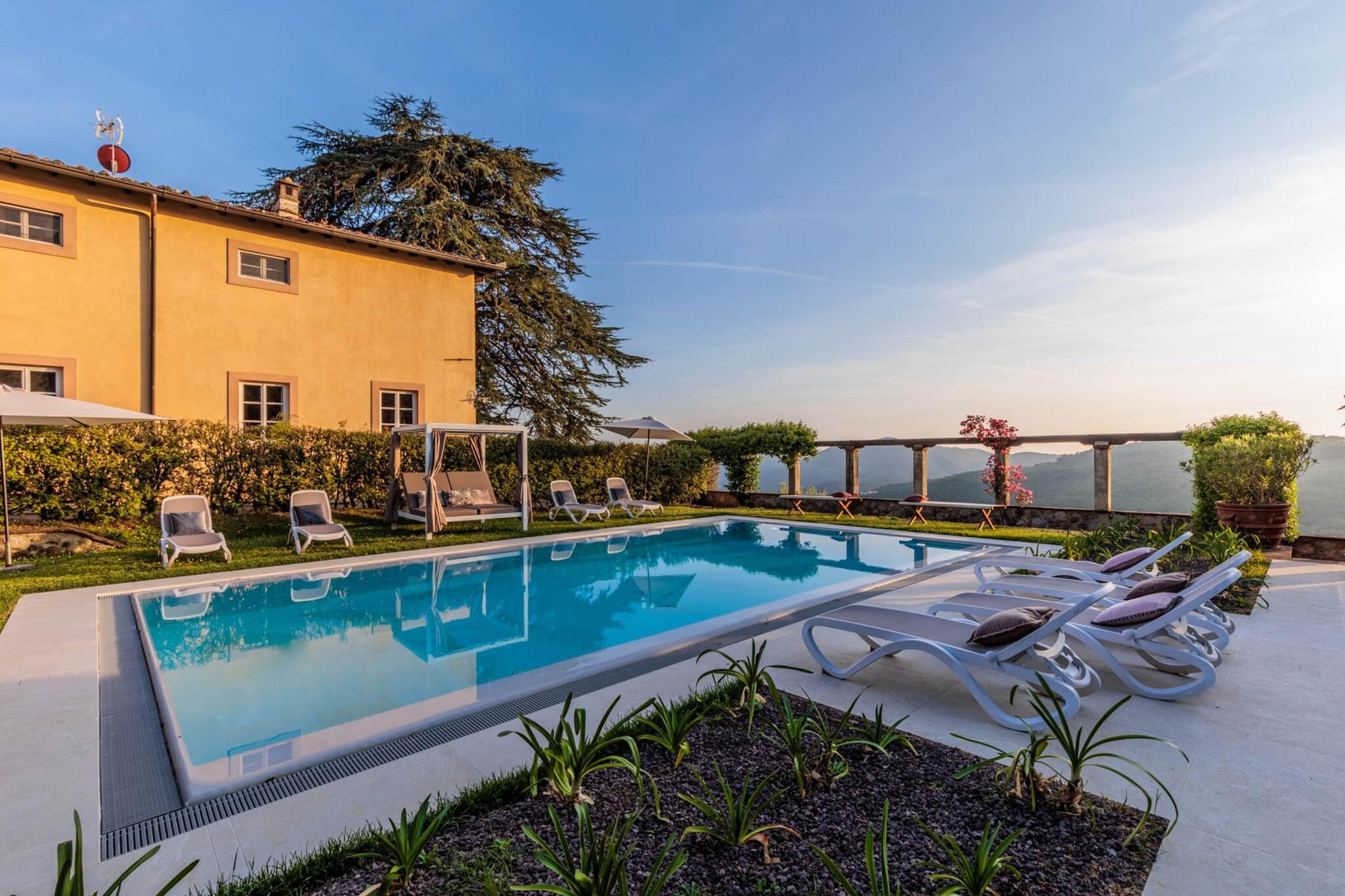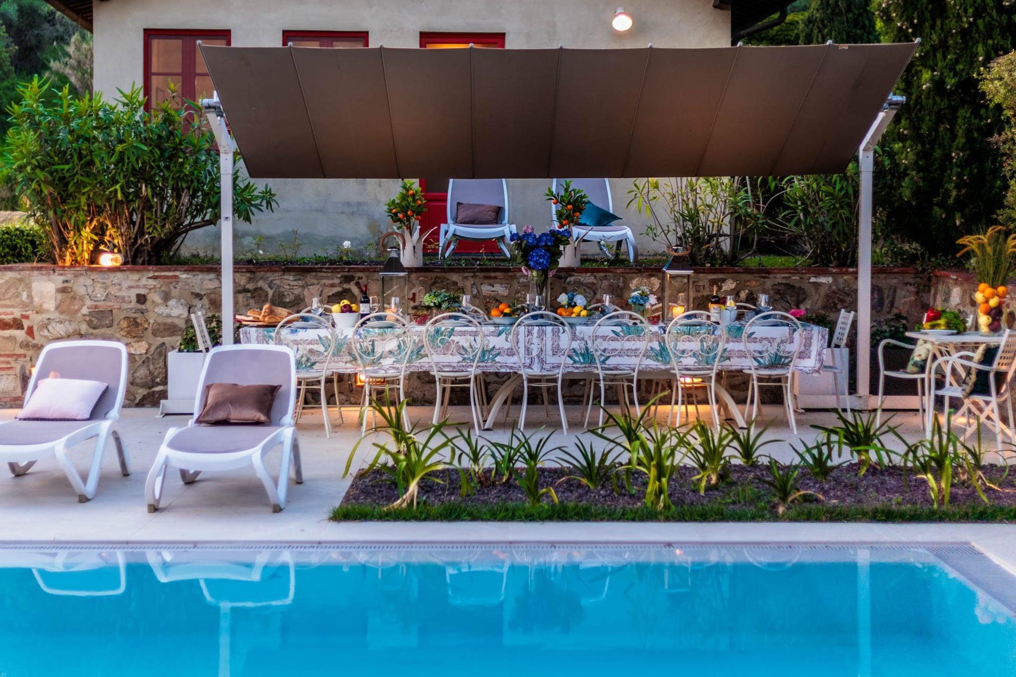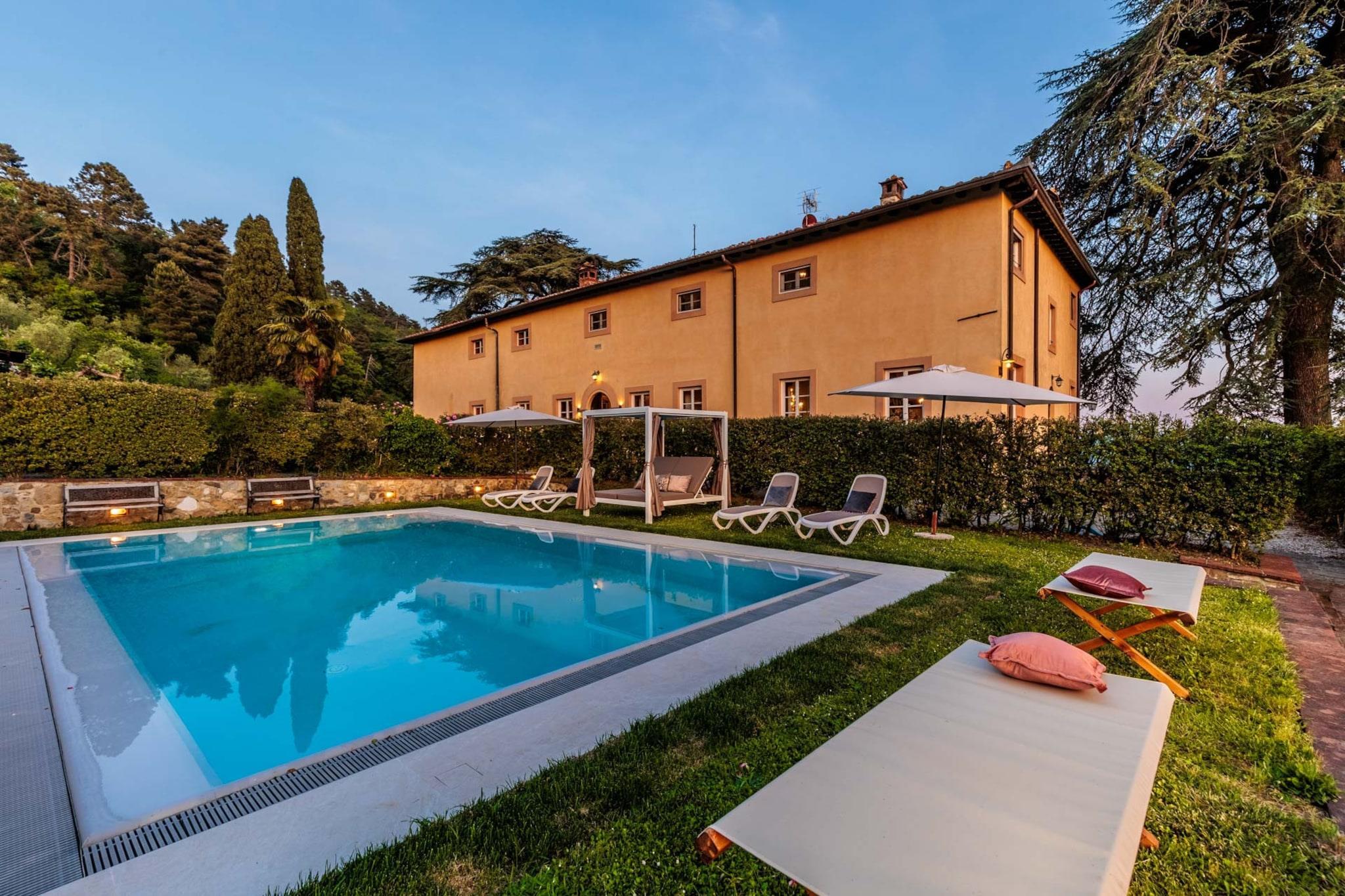 Villa Borbone ligger i de bølgende bakker over Lucca og er et roligt tilflugtssted, der blander toscansk arv med underspillet elegance. Beliggende på en hektar med velplejede haver og olivenlunde, tilbyder denne restaurerede del af en renæssancevilla fra det 15. århundrede en betagende udsigt over Luccas skyline, de omkringliggende bakker og den fjerne kystlinje. Ejendommen har tre separate bygninger - hovedhuset, poolhuset med sommerkøkken og et privat suitehus - forbundet af stenstier, der giver privatliv og charme. Nyd morgenmaden i haven, slap af ved den private pool, eller nip til en cocktail i et af de udendørs opholdsområder, mens solen går ned over dalen. Indenfor er rustikke bjælker og stendetaljer parret med moderne bekvemmeligheder, herunder airconditionerede soveværelser (bortset fra det kølige, naturligt isolerede hulelignende værelse på underetagen), to fuldt udstyrede køkkener og hyggelige opholdsområder med brændeovn. Villa Borbone ligger i den rolige landsby Pieve Santo Stefano og tilbyder direkte adgang til vandrestier gennem Tenuta di Forci og en traditionel toscansk restaurant, Vipore, kun 2 km væk. Selvom en nabobolig deler bygningen, er dit privatliv sikret med separate indgange og udendørsområder. Med privat parkering og en fredelig beliggenhed kun få minutter fra Lucca er Villa Borbone den perfekte base for en afslappende toscansk ferie. Fester er ikke tilladt. Bemærk: Turistskat skal betales på ejendommen.