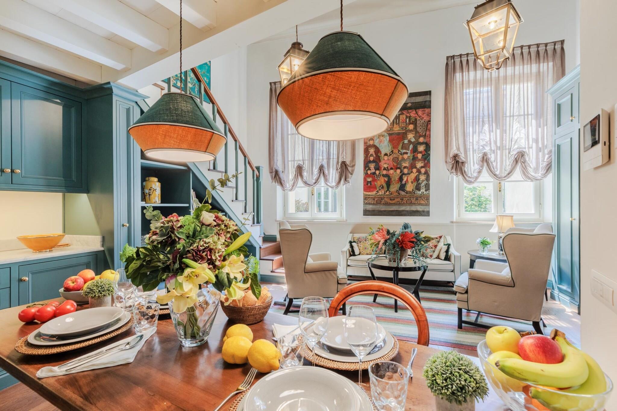 Træd ind i den tidløse elegance i denne luksuriøse bolig, der ligger på første sal i et historisk palads, der engang fungerede som den spanske ambassade i Republikken Lucca. Lejligheden er perfekt placeret inden for bymurene og har udsigt over det fantastiske Palazzo Pfanner, kun få skridt fra Piazza San Michele og den boutique-omkransede Via Fillungo. Vågn hver morgen op til charmen af middelalderkirker og barokke facader fra en privat balkon, og nyd morgenmaden med udsigt, der indfanger essensen af Luccas renæssancefortid. Dette raffinerede hjem tilbyder en ekstraordinær blanding af historisk arkitektur og moderne komfort. Det har fire soveværelser og fire komplette badeværelser, et kokkekøkken med førsteklasses apparater og to elegante stuer - hver med sit eget barkøkken, ideelt til at lave cocktails eller nyde afslappede aftener med venner og familie. Fuld aircondition, højhastigheds-WiFi og varme sikrer komfort året rundt, mens store vinduer oversvømmer rummet med naturligt lys og skaber en varm og indbydende atmosfære. Ejendommen er beliggende i en rolig zone med trafikbegrænset parkering (ZTL) med bekvem offentlig parkering kun en kort gåtur væk. Det er designet som et selvforplejningssted og giver gæsterne friheden til at opleve Lucca i deres eget tempo uden hotellignende tjenester, selvom yderligere faciliteter kan arrangeres efter anmodning. Uanset om du nipper til espresso på balkonen eller udforsker byens brostensbelagte gader, blander hvert øjeblik her historisk skønhed med moderne lethed. Bemærk: Turistskat skal betales på ejendommen.