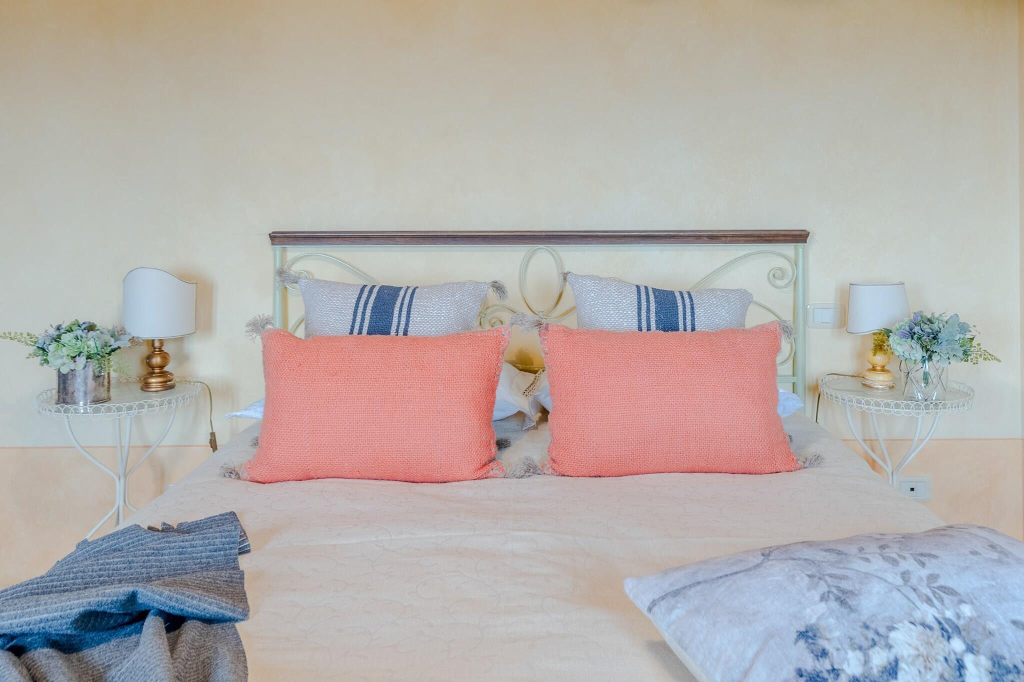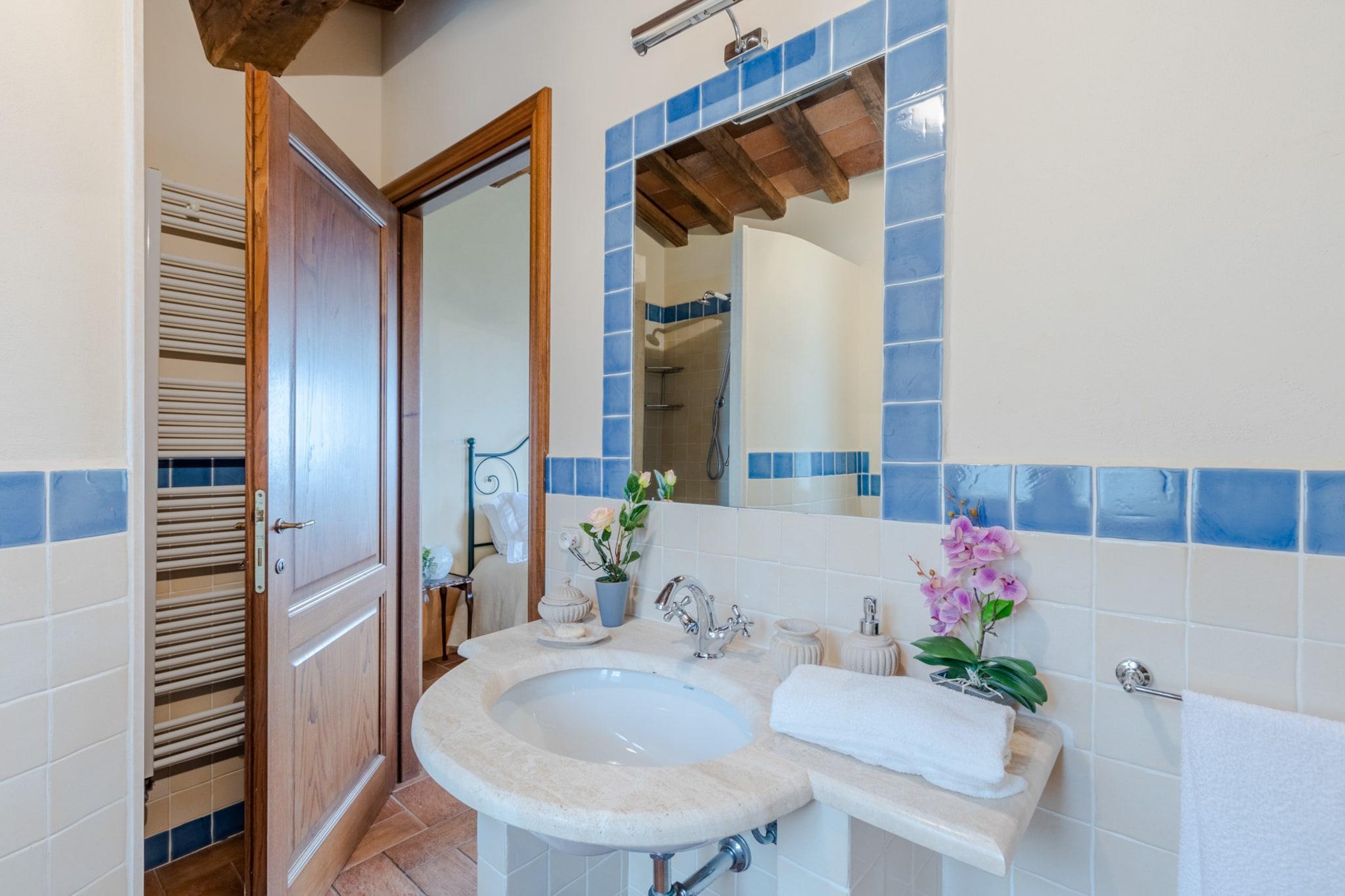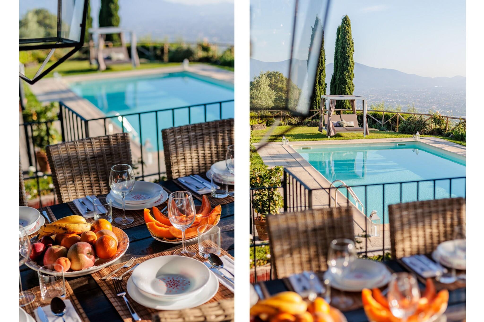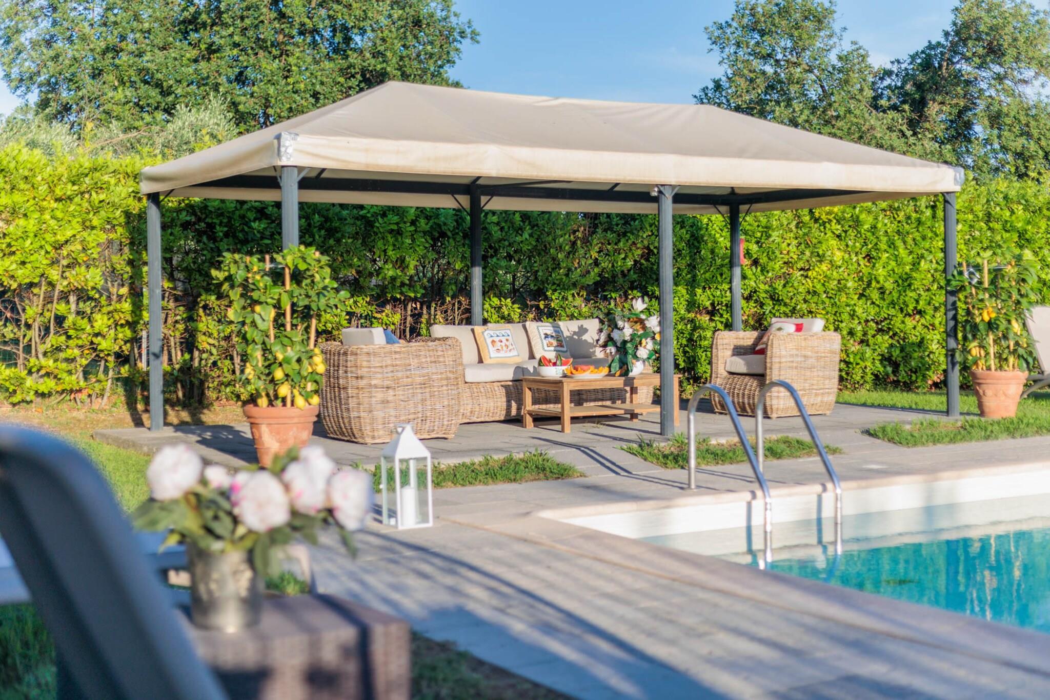 Beliggende blandt de bølgende bakker og berømte vinmarker i Valgiano, tilbyder dette smukt restaurerede stenbondehus en idyllisk flugt ind i hjertet af Toscana. Med en vidtstrakt udsigt over Luccas landskab blander dette tilflugtssted på en bakketop tidløs rustik charme med moderne komfort, hvilket gør det ideelt til en familiesammenkomst, en romantisk getaway eller en afslappende ferie med venner. Beliggende langs Toscanas berømte vinrute og omgivet af olivenlunde og lokale vingårde, er huset perfekt placeret til at udforske regionens kulturelle og naturlige skatte. Luccas historiske centrum ligger kun en kort køretur væk, mens populære dagsture som Firenze, Pisa, Cinque Terre, Volterra og sandstrandene i Viareggio og Forte dei Marmi alle er inden for rækkevidde. Både Pisa og Firenze lufthavne er bekvemt tilgængelige, hvilket gør ankomster stressfri. Villaens indbydende udendørsområder er designet til fritid og forbindelse: en glitrende swimmingpool med panoramaudsigt over dalen, liggestole til dovne eftermiddage og en overdækket spisepergola, ideel til udendørs måltider. Start dagen med en kop kaffe med udsigt over vinmarkerne, udforsk nærliggende markeder og vinmarker, og slap derefter af om aftenen med en aperitif under stjernerne. Indenfor er bondegården fordelt på tre etager og rummer komfortabelt større grupper. Fem omhyggeligt indrettede soveværelser, fire badeværelser, en hyggelig stue, et rummeligt køkken og en spisestue med rustikke bjælker og terrakottagulve bevarer charmen ved et traditionelt toscansk hjem, samtidig med at de tilbyder de faciliteter, der er nødvendige for et ubekymret ophold. Et vaskerum og højhastighedsinternet sikrer bekvemmelighed ved længere ophold. Bemærk: Turistskat skal betales på ejendommen.