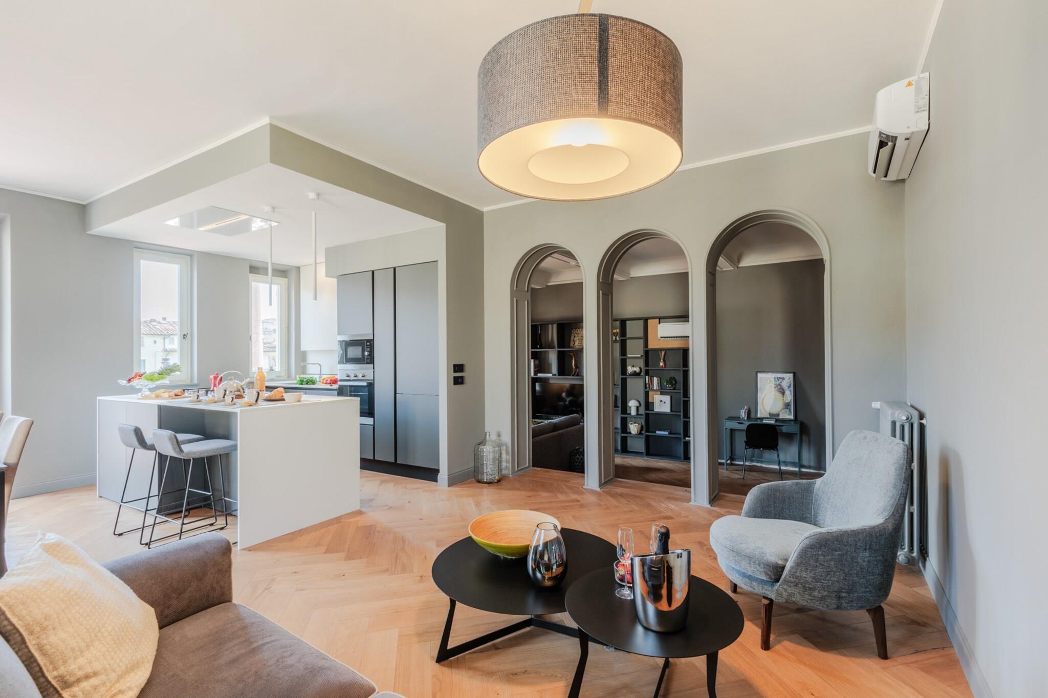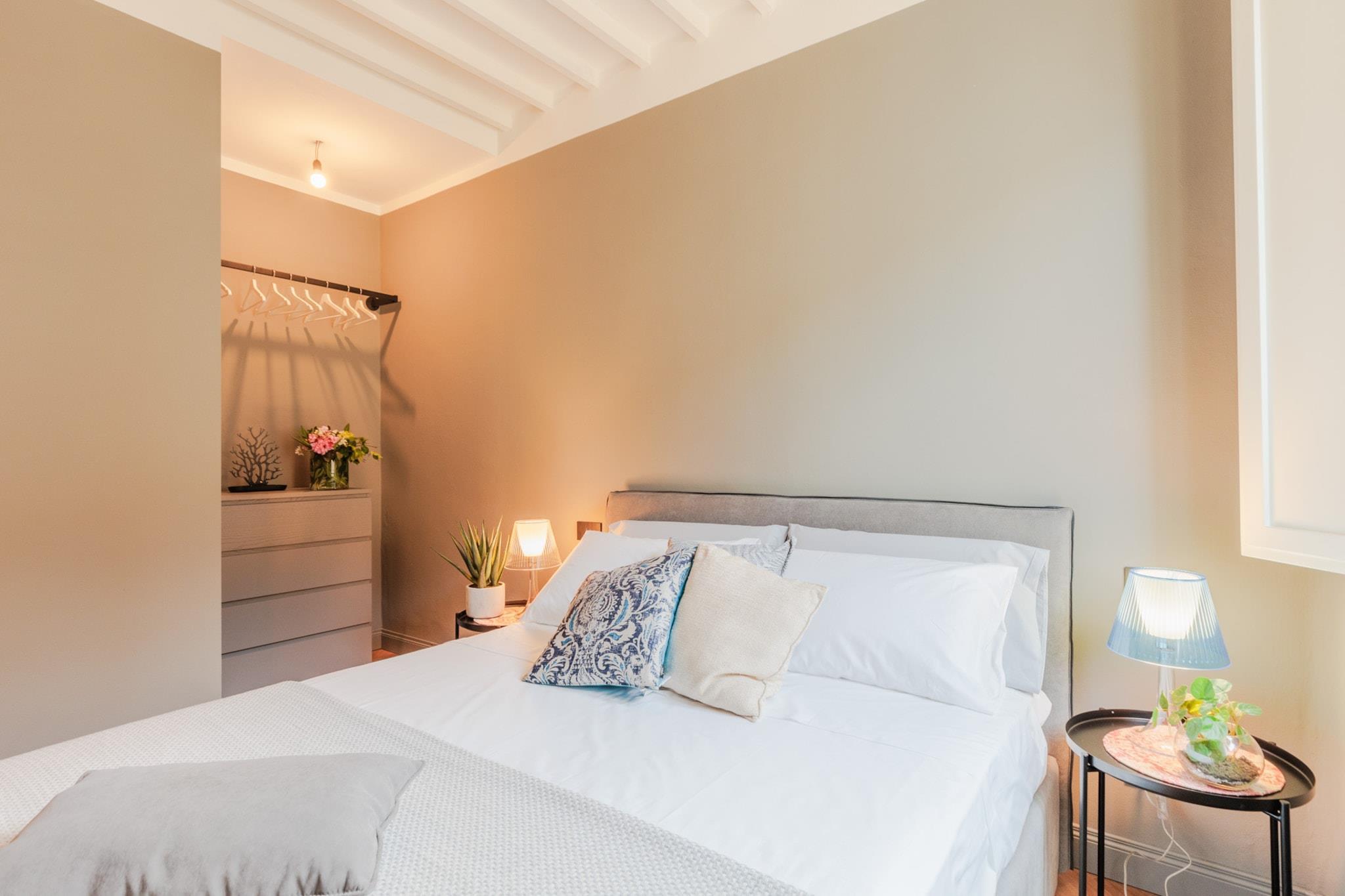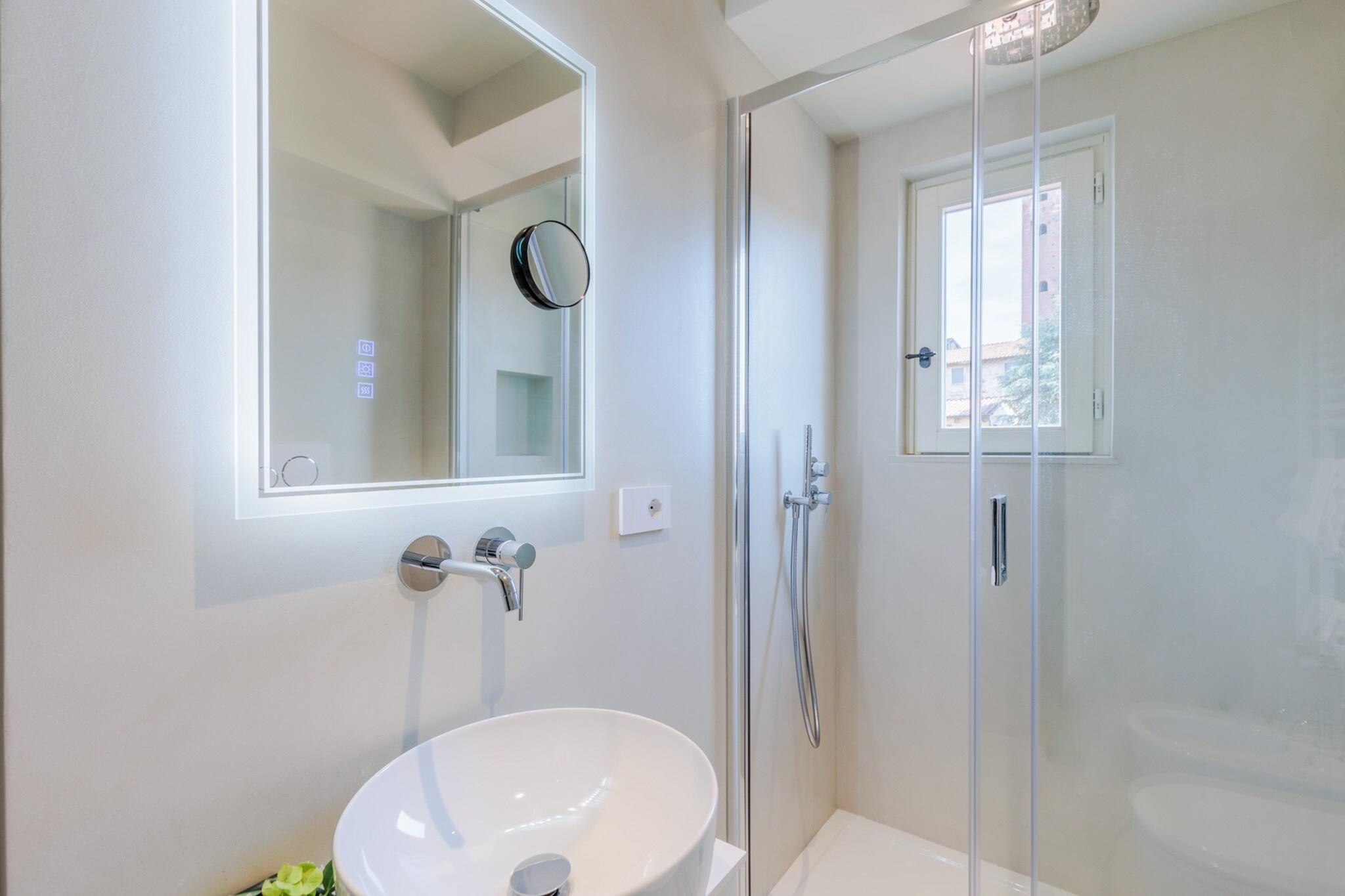 Den hvirvlende stenkrone på Guinigi-tårnet føles næsten inden for rækkevidde fra de franske vinduer i denne lejlighed på øverste etage, beliggende i en middelalderbygning inden for Luccas historiske bymure. Badet i naturligt lys og omgivet af en storslået udsigt over hustagene, blander interiøret traditionel arkitektur med moderne design. Et køkken i kokkeklasse med en central køkkenø gør det nemt at tilberede måltider, mens den tilstødende spiseplads og elegante stue tilbyder plads til at samles, slappe af og nyde landskabet. Hvert af de to dobbeltværelser tilbyder privatliv og komfort, komplet med eget badeværelse og udsigt over hustagene. Lejligheden er omhyggeligt designet til enhver sæson og forbliver kølig om sommeren og varm om vinteren, hvilket gør den til et hyggeligt tilflugtssted året rundt. Den overordnede atmosfære er rolig og tilbyder en stille flugt over den charmerende travlhed i Luccas gader. Denne lejlighed er perfekt beliggende ved krydset mellem Via Mordini og Via delle Chiavi d'Oro og placerer dig kun få skridt fra Luccas hovedattraktioner. Gå en tur til Via Fillungo eller Piazza Anfiteatro på under et minut, eller nå Piazza San Michele, Piazza Napoleone og San Martino-katedralen på blot et par minutter mere. Med shopping, restauranter, monumenter og parkering inden for rækkevidde tilbyder det en harmonisk balance mellem bekvemmelighed og fredelig livsstil. Bemærk: Turistskat skal betales på ejendommen.