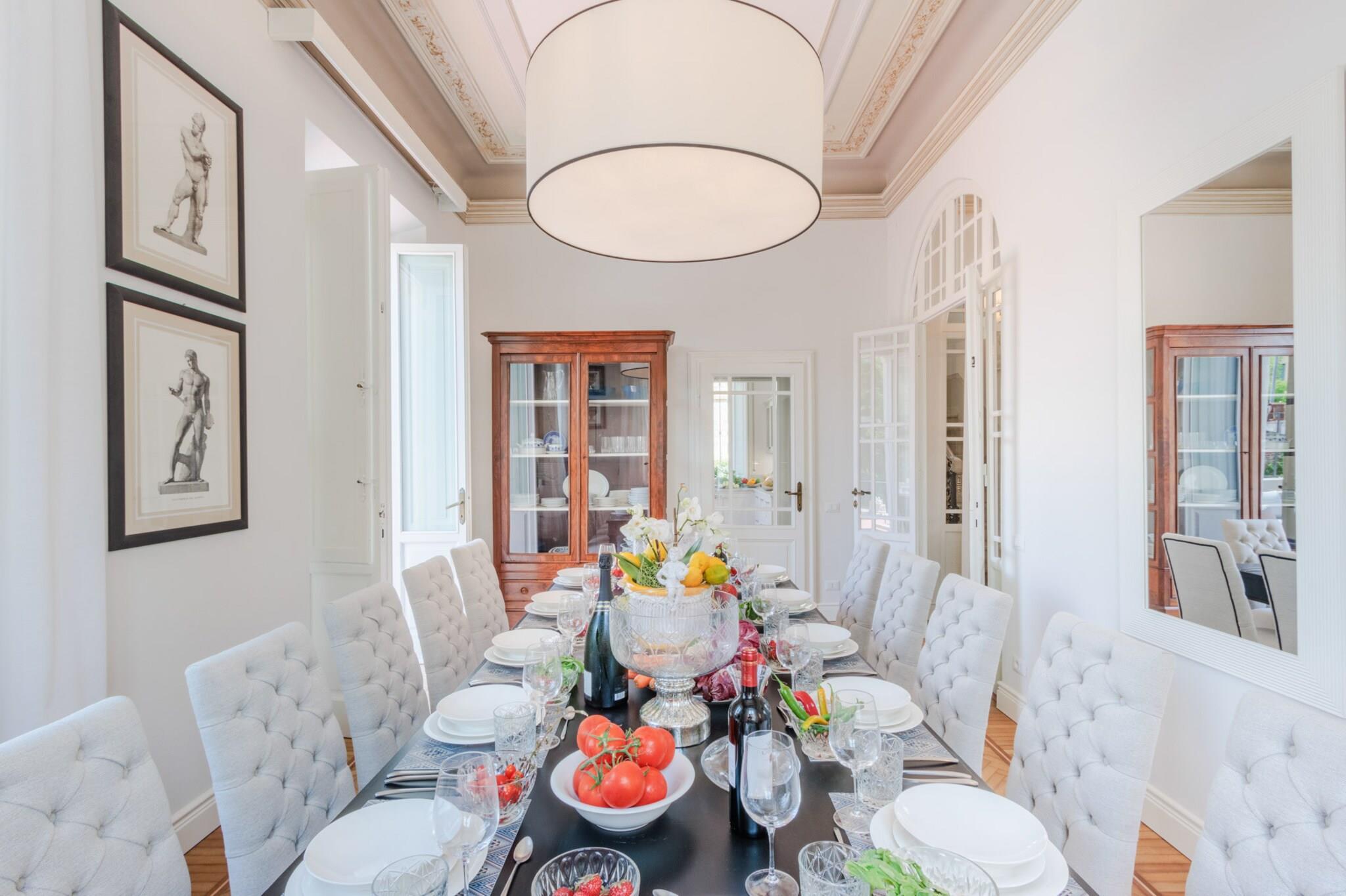 Villa Buonamici er en sjælden perle beliggende kun få skridt fra Luccas historiske bymure og tilbyder den perfekte blanding af urban komfort og fredelig tilflugtssted. Denne elegante villa på 450 m² er designet til afslapning og samvær og byder på seks rummelige soveværelser, flere opholdsområder og en privat have med swimmingpool – et enestående fund for en villa i byen. Uanset om du nyder en stille morgen på terrassen eller en livlig aften i spillelokalet, indbyder hvert hjørne af hjemmet til komfort og forbindelse. Indenfor udstråler villaen en varm, hjemlig italiensk charme med bløde møbler, et klaver til fællessang og et spillelokale komplet med billardbord og skakbræt. Det fuldt udstyrede køkken og den store spisestue er perfekte til fælles måltider, mens udendørsterrassen tilbyder en dejlig ramme til spisning under åben himmel. Med aircondition, Wi-Fi og gennemtænkte detaljer som babyfaciliteter og inkluderede forsyninger er dit ophold lige så behageligt, som det er mindeværdigt. Villa Buonamici ligger i et pulserende boligkvarter og er omgivet af lokale lækkerier - fra et bayersk bryggeri og en håndværkspastabutik til den elskede restaurant "Giulio in Pelleria" kun en kort gåtur væk. Med Luccas kulturskatte lige uden for døren og nem adgang til Toscanas største destinationer er denne villa en ideel base for at udforske, fejre eller blot slappe af med stil. Bemærk: Turistskat er inkluderet i prisen.